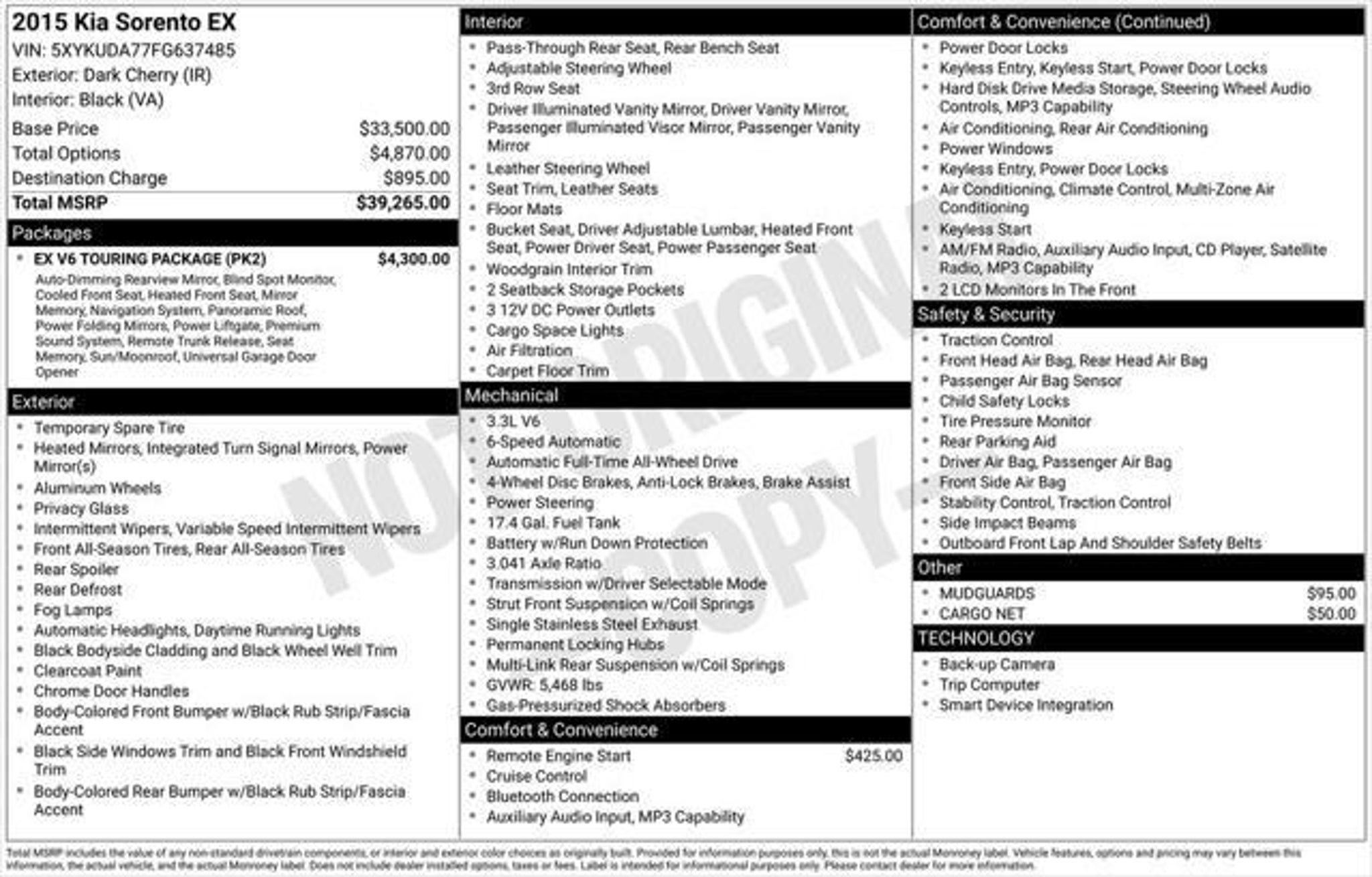 2015 Kia Sorento AWD EX 4DR SUV (V6)