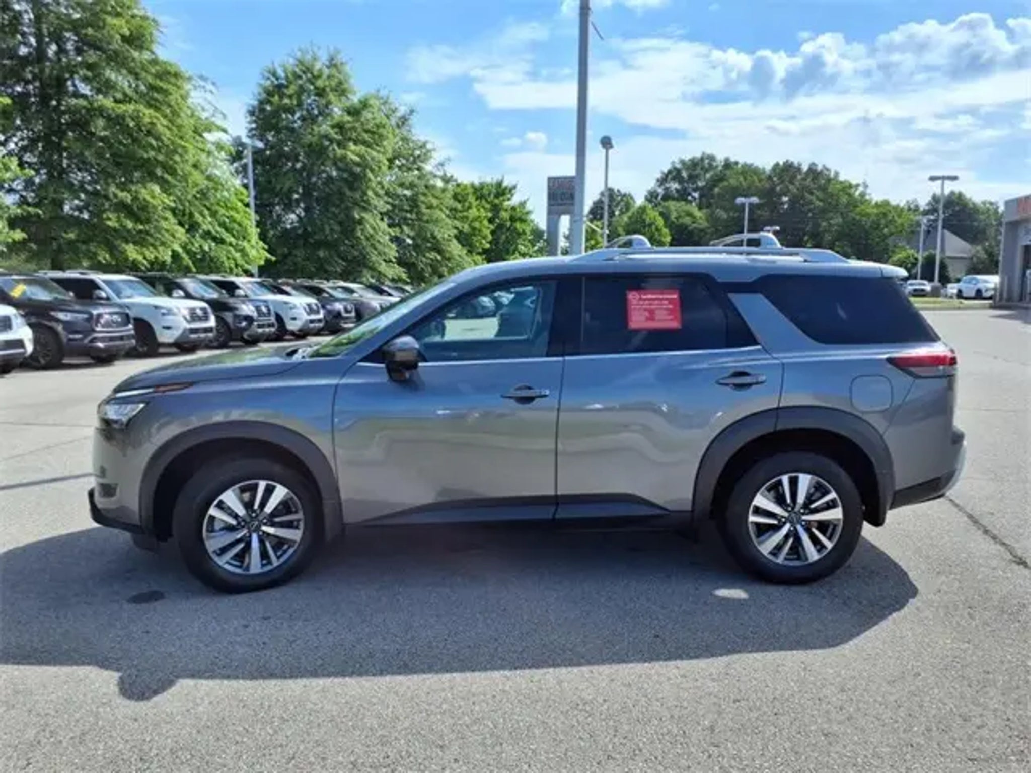 The 2024 Nissan Pathfinder comes equipped with the following Nissan Certified Certified, 4WD, Navigation system: NissanConnect with Navigation and Services, 3rd row seats: bench, 4-Wheel Disc Brakes, 6 Speakers, ABS brakes, Air Conditioning, Alloy wheels, AM/FM radio: SiriusXM, Auto High-beam Headlights, Auto-dimming Rear-View mirror, Automatic temperature control, Axle Ratio: 4.334, Bench Seat Carpeted Floor Mats (Set of 4), Black Splash Guards (Set of 4), Bose Premium Audio System, Brake assist, Bumpers: body-color, Cross Bars, Delay-off headlights, Driver door bin, Driver vanity mirror, Dual front impact airbags, Dual front side impact airbags, Electronic Stability Control, Emergency communication system, Exterior Parking Camera Rear, Four wheel independent suspension, Front anti-roll bar, Front Bucket Seats, Front Center Armrest, Front dual zone A/C, Front reading lights, Fully automatic headlights, Garage door transmitter: HomeLink, Heated door mirrors, Heated Front Bucket Seats, Heated front seats, Heated steering wheel, Illuminated entry, Knee airbag, Leather steering wheel, Leather-Appointed Seating Surfaces, Low tire pressure warning, NissanConnect featuring Apple CarPlay and Android Auto, NissanConnect w/Navigation & Services, Occupant sensing airbag, Outside temperature display, Overhead airbag, Overhead console, Panic alarm, Passenger door bin, Passenger vanity mirror, Power door mirrors, Power driver seat, Power Liftgate, Power passenger seat, Power steering, Power windows, Radio data system, Radio: AM/FM Audio System, Rear air conditioning, Rear anti-roll bar, Rear reading lights, Rear seat center armrest, Rear side impact airbag, Rear window defroster, Rear window wiper, Reclining 3rd row seat, Remote keyless entry, Security system, Speed control, Speed-sensing steering, Split folding rear seat, Spoiler, Steering wheel mounted audio controls, Tachometer, Telescoping steering wheel, Tilt steering wheel, Traction control, Trip computer, Turn signal indicator mirrors, Variably intermittent wipers, and Wheels: 18 x 8J Machined Alloy. 2024 Nissan Pathfinder Navigation, Bluetooth, Heated Seats, 3rd Row Seat, Backup Camera, Power Driver Seat, Leather Seats, 4WD, Local Trade, Serviced Here, All Maintenance Up To Date, Bought Here New, ONE OWNER, 4WD, Navigation system: NissanConnect with Navigation and Services. CARFAX One-Owner. Certified. Gun Metallic 2024 Nissan Pathfinder SL 4WD 9-Speed Automatic 3.5L V6 DOHC 21/27 City/Highway MPG Nissan Certified Details: * Vehicle History * Roadside Assistance * 7 Year/100,000 Mile Limited Warranty, 24/7 Hour Roadside Assistance, Carfax Vehicle History Report, Plus 1 Year Pre-Paid Maintenance Included. Gas Powered Nissan Models Only. * Transferable Warranty * Warranty Deductible: $100 * Limited Warranty: 84 Month/100,000 Mile (whichever occurs first) * 167 Point Inspection Call us today to schedule your VIP test drive!