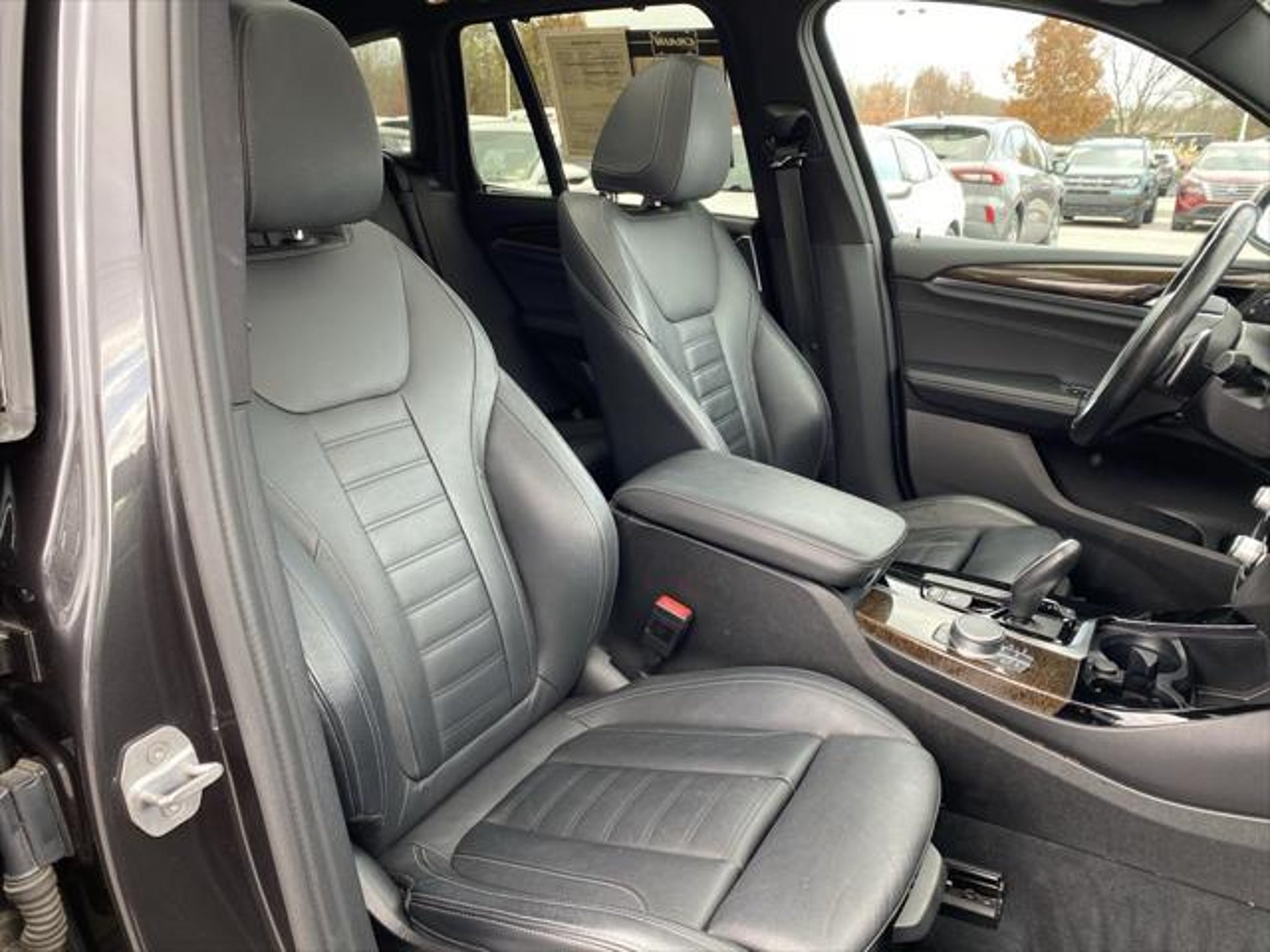 X3 xDrive30i 4D Sport Utility 2.0L I4 TwinPower Turbo 8-Speed Automatic AWD Dark Graphite Black W/Contrast Leather 12 Speakers 3.385 Axle Ratio 4-Wheel Disc Brakes ABS brakes Active Blind Spot Detection Active Driving Assistant Advanced Real-Time Traffic Information Air Conditioning Alloy wheels AM/FM radio Ambient Lighting Apple CarPlay Compatibility Auto-dimming door mirrors Auto-dimming Rear-View mirror Automatic temperature control Brake assist Bumpers: body-color Comfort Access Keyless Entry Convenience Package Delay-off headlights Driver door bin Driver vanity mirror Driving Assistance Package Dual front impact airbags Dual front side impact airbags DVD Area Coding (North America) Electronic Stability Control Emergency communication system: BMW Assist eCall Exterior Parking Camera Rear Four wheel independent suspension Front anti-roll bar Front Bucket Seats Front Center Armrest Front dual zone A/C Front fog lights Front reading lights Fully automatic headlights Garage door transmitter Genuine wood dashboard insert Genuine wood door panel insert Hands-Free Bluetooth & USB Audio Connection Head-Up Display Heated door mirrors Heated Front Seats Heated Steering Wheel Hi-Fi Sound System Illuminated entry Knee airbag Lane Departure Warning System LED Headlights w/Cornering Lights Low tire pressure warning Lumbar Support Memory seat Navigation System Occupant sensing airbag Outside temperature display Overhead airbag Panic alarm Panoramic Moonroof Passenger door bin Passenger vanity mirror Power door mirrors Power driver seat Power Front Seats Power Liftgate Power passenger seat Power steering Power windows Premium Package Radio Control US Radio: AM/FM Stereo w/HD Rain sensing wipers Rear air conditioning Rear anti-roll bar Rear Manual Side Window Shades Rear reading lights Rear seat center armrest Rear window defroster Rear window wiper Remote keyless entry Remote Services Roof rack: rails only Security system SensaTec Upholstery SiriusXM Satellite Radio Speed control Speed-sensing steering Speed-Sensitive Wipers Split folding rear seat Spoiler Sport Bucket Seats Sport steering wheel Steering wheel mounted audio controls Tachometer Telescoping steering wheel Tilt steering wheel Traction control Trip computer Turn signal indicator mirrors Variably intermittent wipers Wheels: 18 x 7.0 Y-Spoke (Style 688) Wheels: 19 x 7.5 (Style 692). Clean CARFAX. Experience the Crain Commitment: 100 Year/100000 Mile Warranty on Every New & Used vehicle We Sell and 100 Hour Love It or Leave It Exchange Policy. Please contact the dealer for more details.