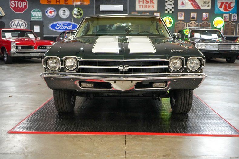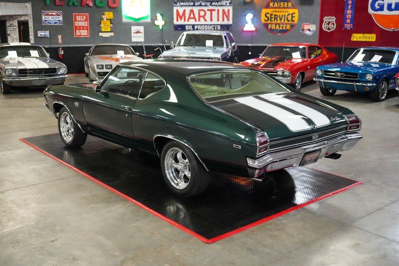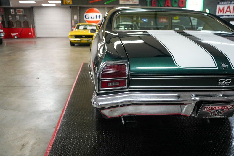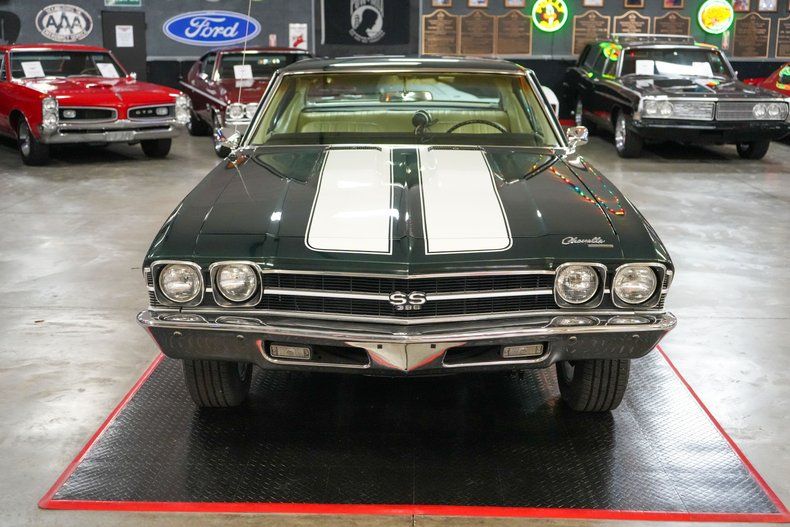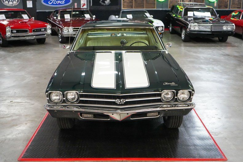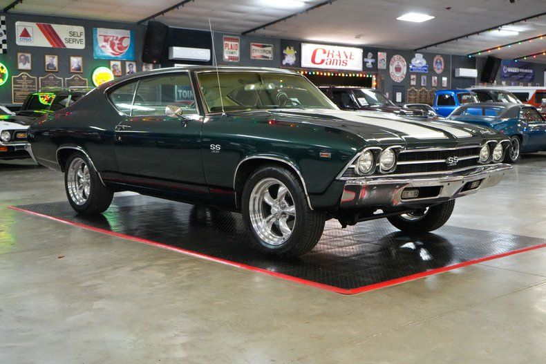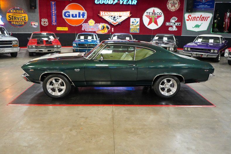 This 1969 Chevrolet Chevelle delivers classic muscle with modern driving confidence. Under the hood is a powerful 396 Big Block Chevy V8 paired with a Muncie 4-speed manual transmission and a stout GM 12-bolt rear end with 3.55 gearing. Equipped with power steering, power brakes, and front disc brakes, it's built for both performance and control. The car rides on 17" American Racing Torq Thrust wheels wrapped in BFGoodrich Advantage tires, while the Edelbrock intake, 600 CFM carb, and MSD HEI ignition boost performance. Finished in Green with White Stripes, this Chevelle combines iconic style with raw power. THIS VEHICLE QUALIFIES FOR FREE SHIPPING AND A WARRANTY!!