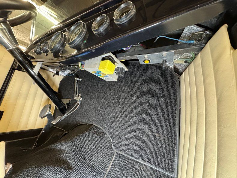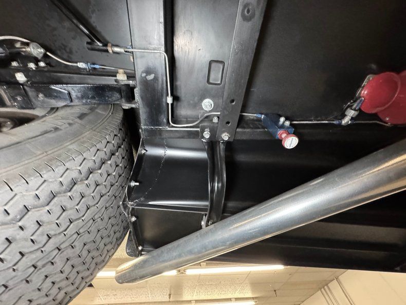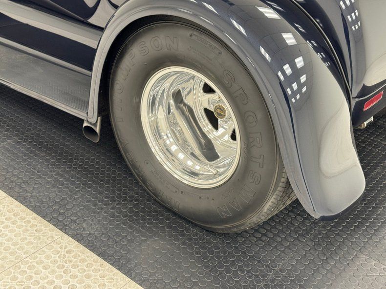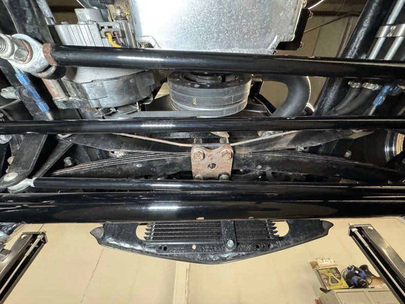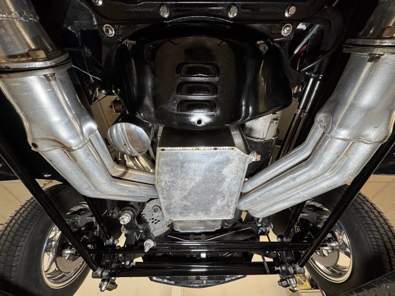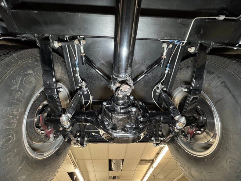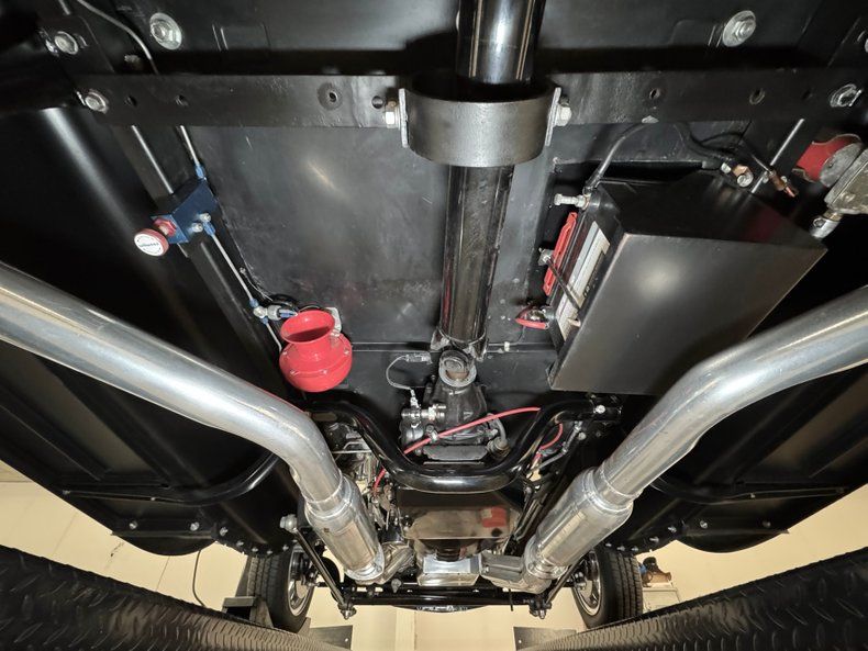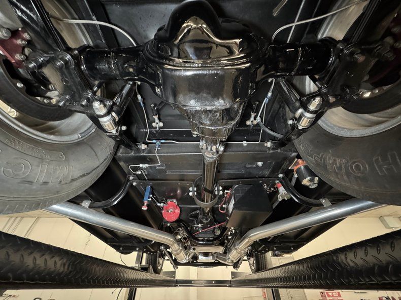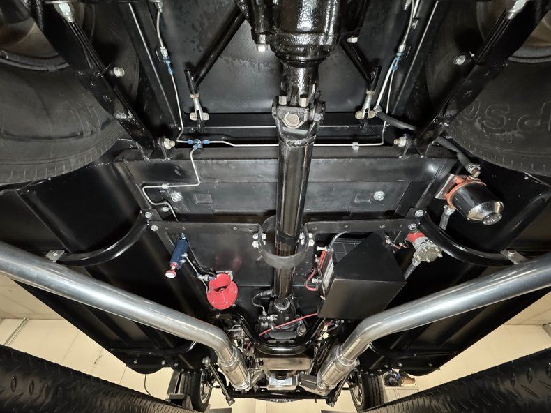 That fuel heads to the exposed 350ci ZZ1 V8 with aluminum heads, a Holley 4-barrel carburetor, GM aluminum intake, and coated headers, all ingredients of a recipe that develops 300 horsepower. It's mated to a TCI TH350 3-speed automatic transmission that sends power to the Ford 9" rear with 4.11 gears with Positraction. As an engine visible to the world, it's appropriately clean and showy! The car operates on a 12 volt system.