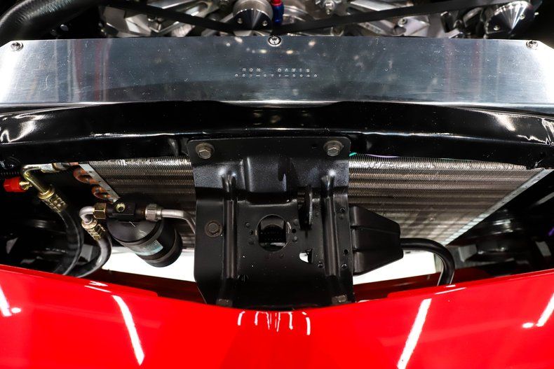 ENGINE COMPARTMENT: Here's where it really gets exciting! That's a Merlin all aluminum 540 cubic inch big block Dyno tuned with 618 HP at the rear wheels, that is almost 800 at the motor! Aluminum heads were ported, the intake is polished and on top is a fuel injection system. It was recently upgraded with a Holley Terminator X control system and distributor then given a new tune. The front of the motor has March billet serpentine pulleys, polished a/c compressor, polished alternator and a modern power steering with a remote reservoir pulleys Air conditioning gone through with new lines and compressor. It has Hydroboost power brakes with a Wilwood master cylinder. A massive Ron Davis aluminum radiator with dual electric fans and an aluminum water pump keeps it running cool. The wiper system was replaced with a modern one. Check out the billet fender supports and hinges! This is a show and go motor compartment with a little extra emphasis on the "go"!