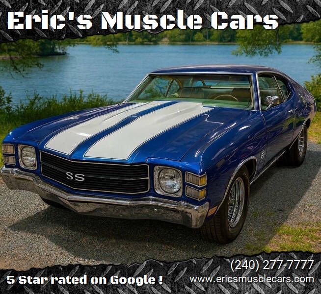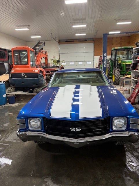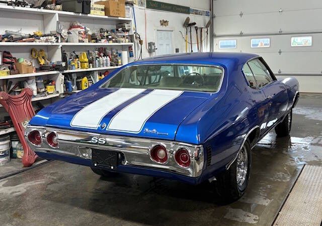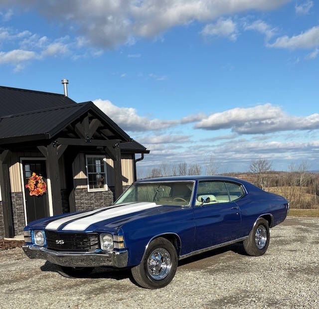 Erics Muscle Cars is proud to offer this freshly restored 1971 Chevelle SS tribute ! Powered by a new 350 engine and carburetor attached to the turbo 350 automatic transmission and factory 308 ratio posi rear. All new parts include: Headlight switch Dome lens Roof rail window guide Tail light and back up light gaskets Roof rail, chrome weatherstrip Door glass hardware kit OEM window belts Door and trunk locks and keys Door panel Gromit sets Door panel clips Wheel well moldings Chevelle arm Pre-assembled Chevelle door panel Kick panels both sides Door handle SS grill assembly Chevelle emblem (front) SS black grill Front bump Rear bumper Four Crager 15 X6 rims Edelbrock carburetor Aluminum radiator Chrome alternator Chrome fuel pump Chrome headers Steering wheel Trunk moldings (rubber) Door moldings (rubber) Rear window seals Door window seals (top) SS Chevelle rear bumper emblem Chevelle and Chevrolet emblem Chrome mold Trunk mat (foam rubber) Tail light housing retainer Bumper kit Door locks Parking light bezels Chrome water pump Chrome pulley " fan and crank Two plane intake manifold