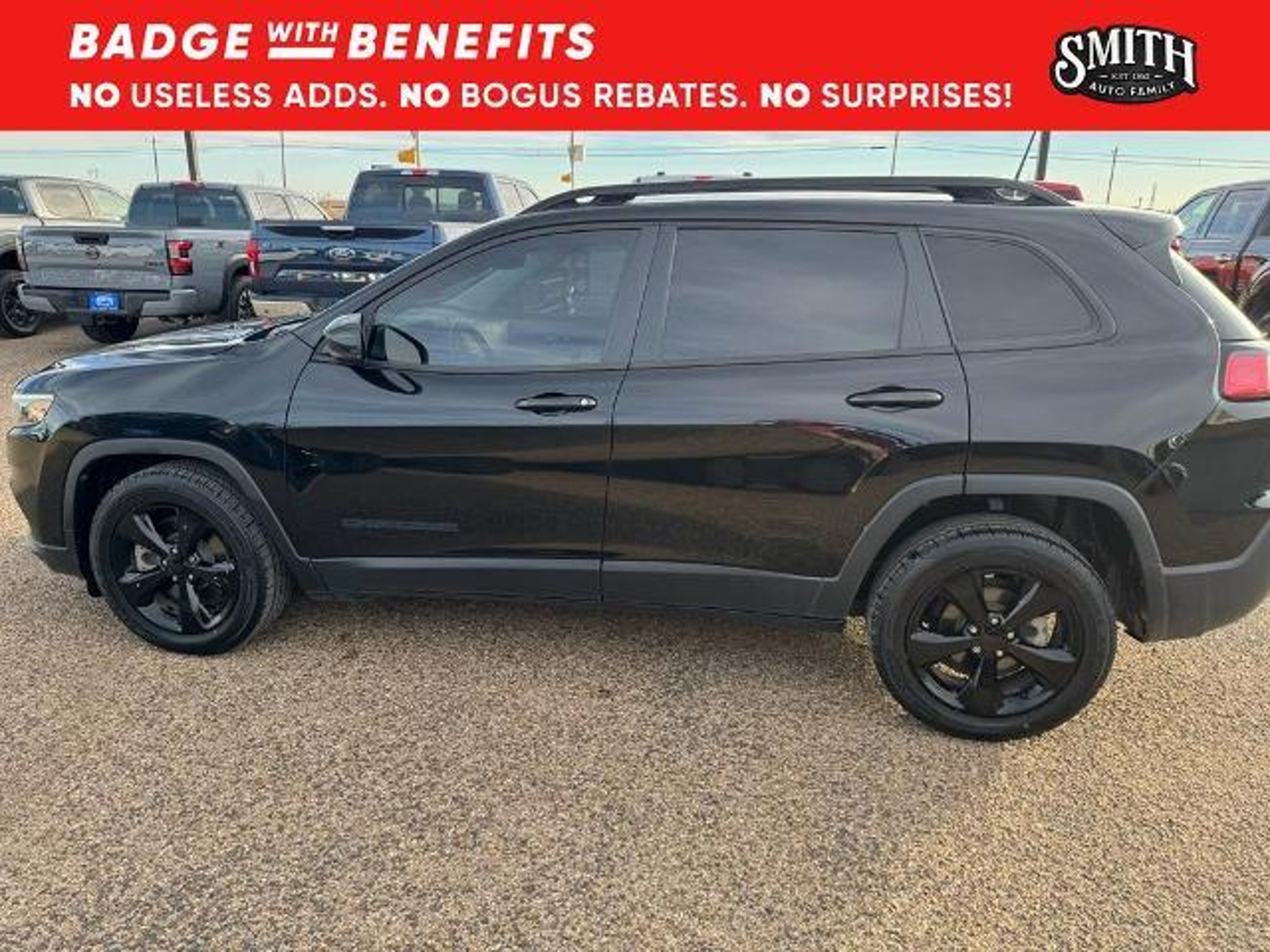 Vehicle Details Discover an exceptional 2021 Jeep Cherokee Altitude in Levelland, TX "” the perfect blend of style, comfort, and reliability at the best price. This Jeep Cherokee Altitude features a fuel-efficient 4-cylinder 2.4L gasoline engine with Front-Wheel Drive, delivering confident handling and impressive everyday performance. Designed for modern driving, this SUV includes Hands Free Bluetooth for effortless phone calls and music streaming, plus a Back-Up Camera to assist with parking and tight maneuvers. Safety is a top priority in this Jeep Cherokee. It comes equipped with Lane Departure Warning and Forward Collision Warning systems to help keep you and your passengers safe on the road. This vehicle also holds a CARFAX 1-Owner history, giving you added peace of mind about its maintenance and care. The Altitude trim brings bold exterior accents and a refined interior, making this Jeep Cherokee a stylish choice whether commuting or exploring West Texas. With responsive steering, a comfortable cabin, and smart tech features, it's a versatile SUV that meets daily needs and weekend plans alike. Located in Levelland, TX, this 2021 Jeep Cherokee Altitude is priced to sell and represents the best value in the area. Don't miss the chance to own a well-equipped, one-owner Jeep Cherokee with safety tech, convenience features, and standout style "” contact us today to schedule a test drive. Equipment This model offers Apple CarPlay for seamless connectivity. It comes equipped with Android Auto for seamless smartphone integration on the road. Bluetooth technology is built into this Jeep Cherokee, keeping your hands on the steering wheel and your focus on the road. Protect it from unwanted accidents with a cutting edge backup camera system. The rear parking assist technology on this vehicle will put you at ease when reversing. The system alerts you as you get closer to an obstruction. This model has a clean CARFAX vehicle history report. This mid-size suv's Lane Departure Warning helps keep you in your lane. This vehicle is a certified CARFAX 1-owner. It's Forward Collision Warning feature alerts drivers to potential front-end collisions. Start this mid-size suv from inside with remote start. This 2021 Jeep Cherokee is pure luxury with a heated steering wheel. This Jeep Cherokee has an elegant black exterior finish. Front wheel drive on this vehicle gives you better traction and better fuel economy. Packages Quick Order Package 2BN Altitude: Altitude Package; 18 X 7 Gloss Black 5-Spoke Aluminum Wheels; Gloss Black Exterior Accents; Black Day Light Opening Moldings; 225/55R18 All Season Tires; Piano Black Interior Accents; Gloss Black Grille Surrounds; Gloss Black Side Roof Rails; Black Accent Stitching; Gloss Black Exterior Badging. Compact Spare Tire. Diamond Black Crystal PC. **Equipment listed is based on original vehicle build and subject to change. Please confirm the accuracy of the included equipment by calling the dealer prior to purchase.**