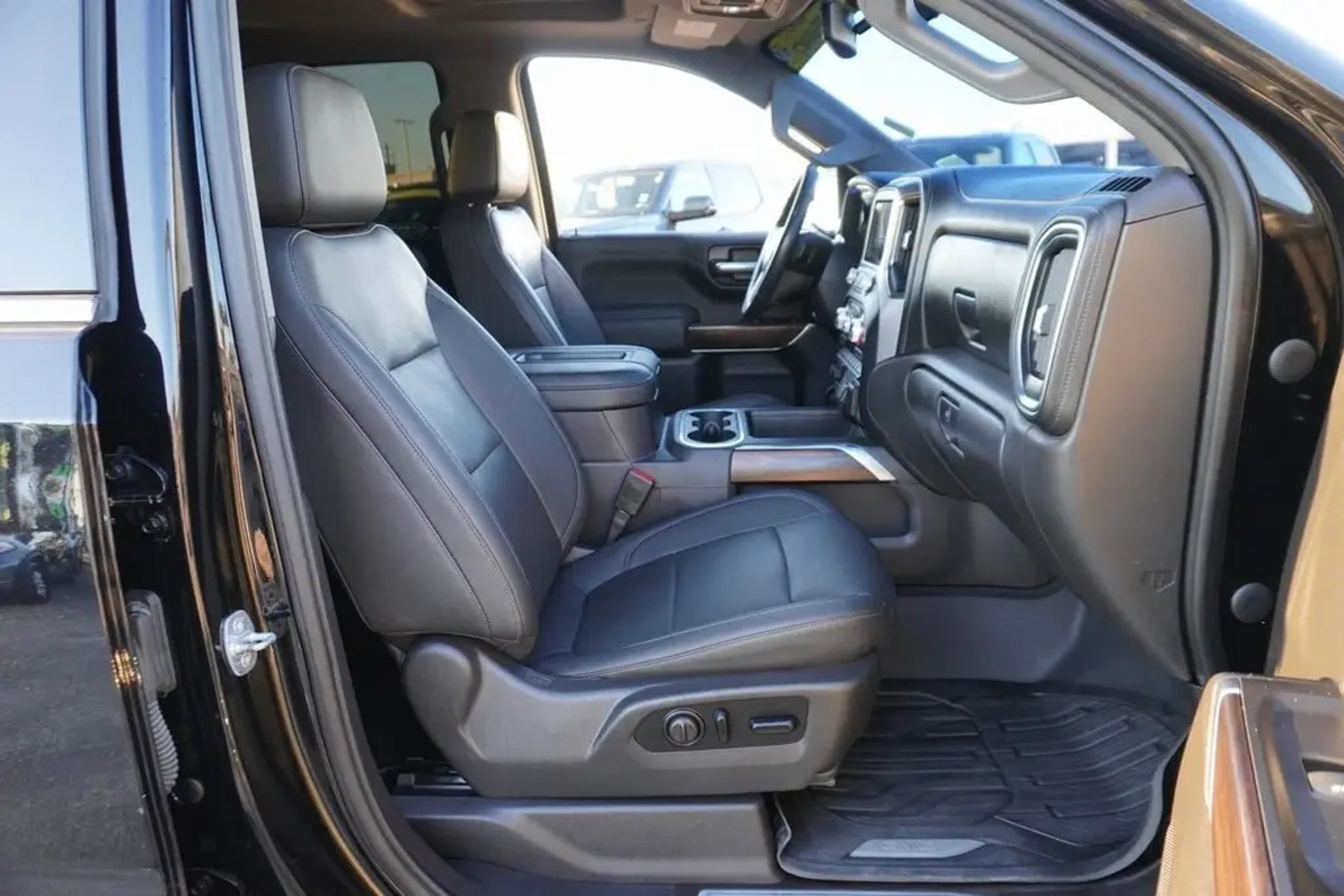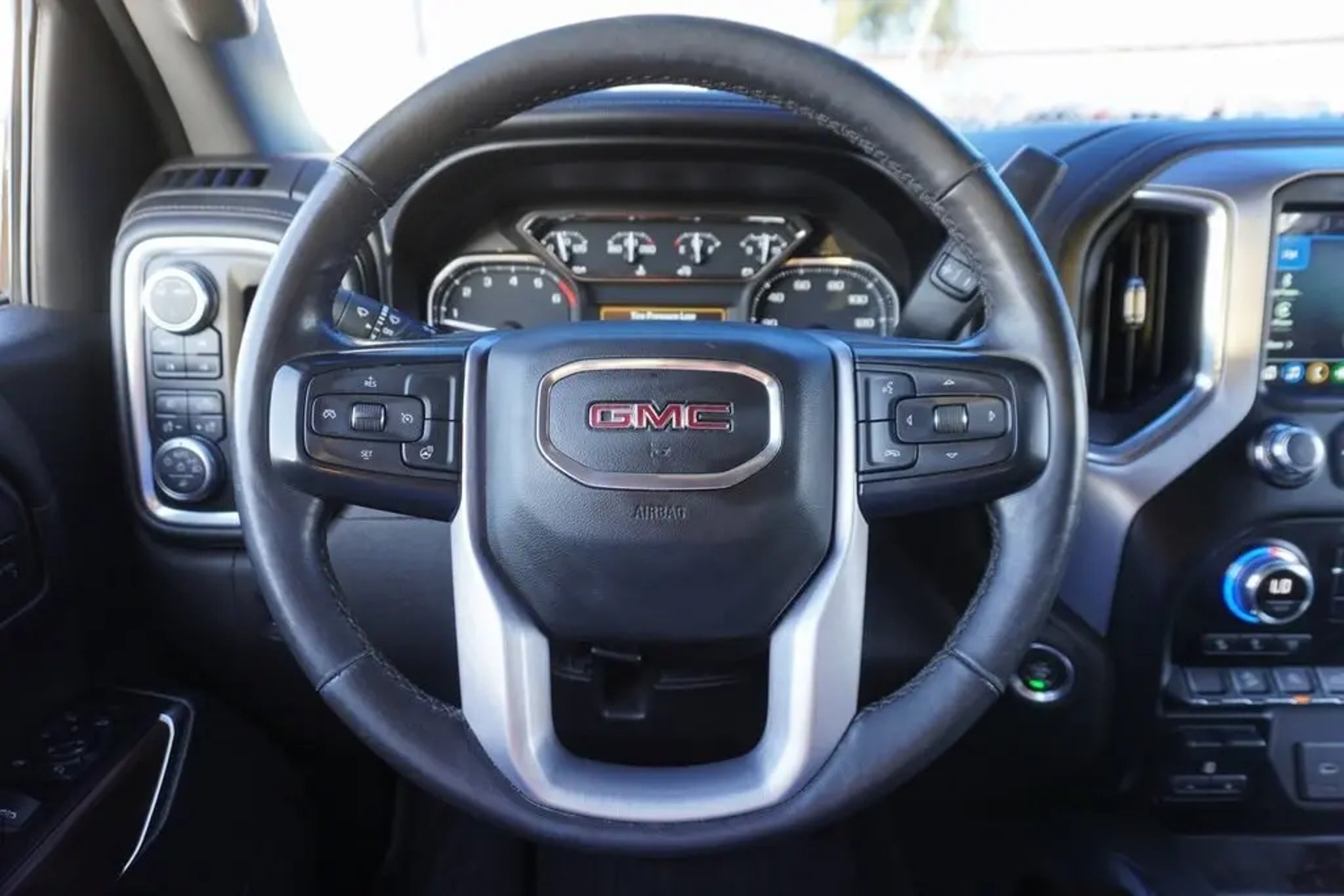 This 2021 GMC Sierra 1500 SLT in Onyx Black includes the following features: EcoTec3 5.3L V8 8-Speed Automatic 4WD Preferred Equipment Group 4SA (12-Volt Rear Auxiliary Power Outlet, 120-Volt Bed Mounted Power Outlet, 120-Volt Instrument Panel Power Outlet, 170 Amp Alternator, 4G LTE Wi-Fi Hotspot Capable, Auto-Locking Rear Differential, Auxiliary External Transmission Oil Cooler, Chrome Grille, Color-Keyed Carpeting Floor Covering, Compass, Deep-Tinted Glass, Electric Rear-Window Defogger, Electrical Lock Control Steering Column, Front Frame-Mounted Black Recovery Hooks, GMC Connected Access Capable, Heated Driver & Front Outboard Passenger Seating, Hitch Guidance w/Hitch View, In-Vehicle Trailering App, Integrated Trailer Brake Controller, Keyless Open & Start, LED Cargo Area Lighting, Manual Tilt-Wheel & Telescoping Steering Column, OnStar & GMC Connected Services Capable, Power Door Locks, Power Front Passenger Windows w/Express Up/Down, Power Front Windows w/Driver Express Up/Down, Power Rear Windows w/Express Down, ProGrade Trailering System, Rear Dual USB Charging-Only Ports, Rear Wheelhouse Liners, Remote Vehicle Starter System, Steering Wheel Audio Controls, and Theft Deterrent System (Unauthorized Entry)), SLT Convenience Package (2 USB Ports, 2 USB Ports (1st Row), Floor-Mounted Center Console, Front Bucket Seats, Heated 2nd Row Outboard Seats, Power Sliding Rear Window w/Rear Defogger, Universal Home Remote, and Ventilated Driver & Front Passenger Seats), Texas Edition SLT Premium Package (20 x 9 Polished Aluminum Wheels, Chrome Wheel To Wheel Assist Steps, and Texas Edition Badging), Trailering Package (Hitch Guidance), X31 Off-Road Package (Dual Exhaust w/Premium Tips, Heavy-Duty Air Filter, Hill Descent Control, Off-Road Suspension, and X31 Hard Badge), 8-Speed Automatic, 4WD, Jet Black Leather, 10-Way Power Driver Seat Adjuster w/Lumbar, 10-Way Power Passenger Seat Adjuster w/Lumbar, 3.23 Rear Axle Ratio, 4-Wheel Disc Brakes, 6 Speakers, 6-Speaker Audio System Feature, ABS brakes, Air Conditioning, Alloy wheels, AM/FM radio: SiriusXM with 360L, Apple CarPlay/Android Auto, Auto-dimming door mirrors, Auto-dimming Rear-View mirror, Automatic temperature control, Brake assist, Bumpers: chrome, Delay-off headlights, Driver door bin, Driver Memory, Driver vanity mirror, Dual front impact airbags, Dual front side impact airbags, Electronic Stability Control, Front 40/20/40 Split-Bench Seat, Front anti-roll bar, Front Center Armrest w/Storage, Front dual zone A/C, Front fog lights, Front License P