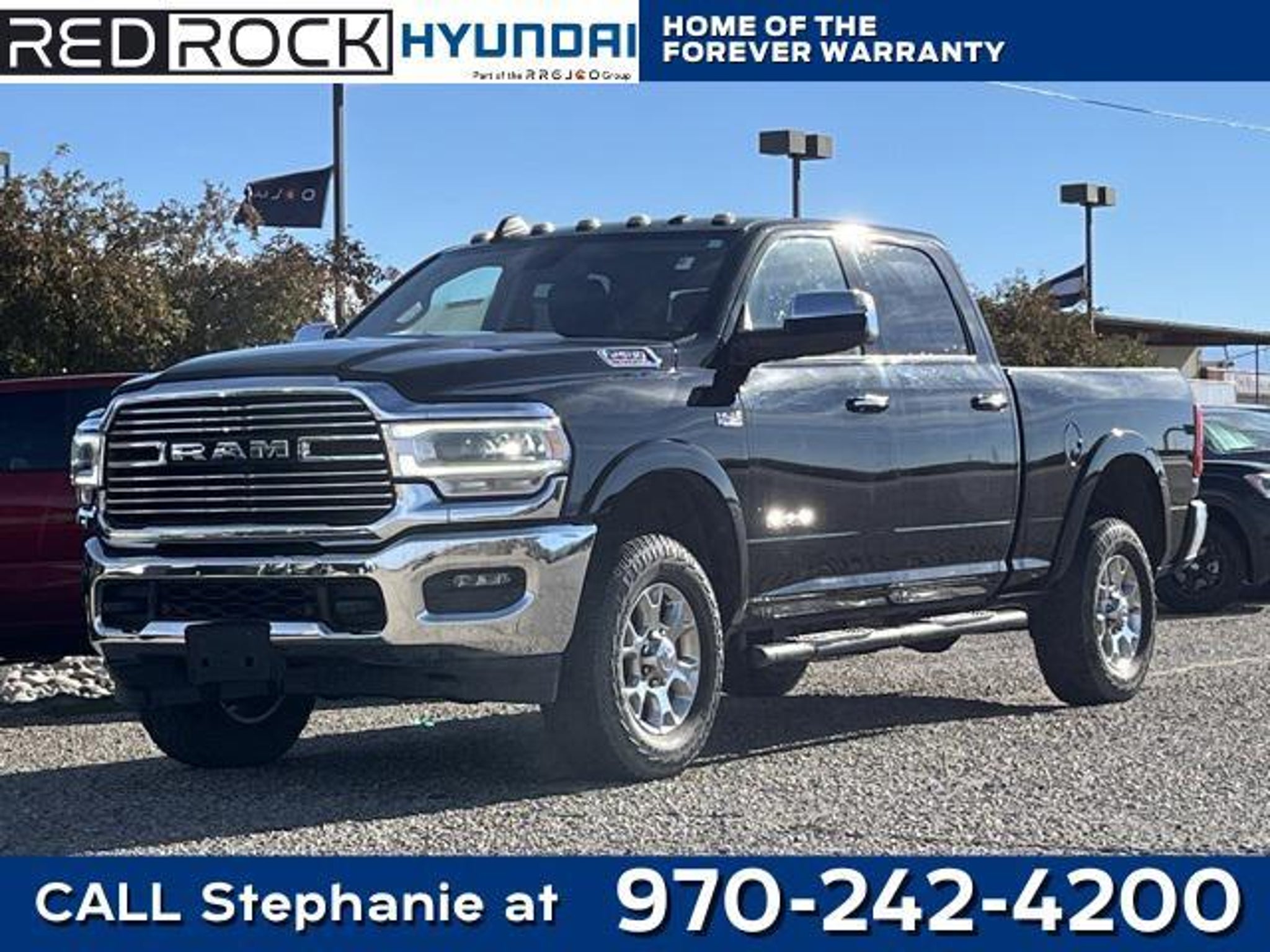 RED ROCK FOREVER WARRANTY. NO CHARGE 100% LIFETIME POWER TRAIN WARRANTY RED ROCK vehicles with less than 60,000 miles, 6 years and newer, non luxury or altered vehicles, come with a Lifetime Power train Warranty. This warranty is valid in all fifty states. ALL At No Charge just for doing business with RED ROCK Auto Group. While we make every effort to ensure the data listed here is correct, there may be instances where some of the options or vehicle features may be listed incorrectly as we get data from multiple data sources. PLEASE MAKE SURE to confirm the details of this vehicle with the dealer to ensure its accuracy. Dealer cannot be held liable for data that is listed incorrectly. See Dealer for details. CARFAX One-Owner. Odometer is 3550 miles below market average! Red Rock Hyundai proudly offers this 2022 Ram 2500 Laramie 4WD in Diamond Black Crystal Pearlcoat it comes well equipped with these standard and optional features, Laramie Level C Equipment Group (DISC) (2nd Row In Floor Storage Bins, Auto High Beam Headlamp Control, Exterior Mirrors w/Memory, Foam Bottle Insert (Door Trim Panel), Mirror-Mounted Aux Reverse Lamps, Power Adjustable Pedals w/Memory, Power Multi-Function Manual Folding Mirrors, Radio/Driver Seat/Mirrors/Pedals Memory, Rain Sensitive Windshield Wipers, Remote Tailgate Release, and Ventilated Front Seats), Protection Group, Quick Order Package 2GH Laramie, 10 Speakers, 115V Auxiliary Rear Power Outlet, 2 Way Rear Headrest Seat, 3.73 Axle Ratio, 4 Way Front Headrests, 4-Wheel Disc Brakes, 4G LTE Wi-Fi Hot Spot, 8.4 Touchscreen Display, ABS brakes, Active Noise Control System, Adjustable pedals, Air Conditioning, Alloy wheels, AM/FM radio: SiriusXM, Anti-Spin Differential Rear Axle, Apple CarPlay, Apple CarPlay/Android Auto, Auto-dimming Rear-View mirror, Automatic temperature control, Bluetooth Handsfree Phone & Audio, Brake assist, Bumpers: chrome, Chrome Exterior Mirrors, Clearance Lamps, Compass, Connectivity - US/Canada, Delay-off headlights, Driver door bin, Driver vanity mirror, Dual front impact airbags, Dual front side impact airbags, Electronic Stability Control, Electronically Controlled Throttle, Exterior Mirrors Courtesy Lamps, Exterior Mirrors w/Heating Element, Exterior Mirrors w/Supplemental Signals, Front anti-roll bar, Front Center Armrest w/Storage, Front dual zone A/C, Front fog lights, Front License Plate Bracket, Front reading lights, Front Seat Back Map Pockets, Fully automatic headlights, Garage door transmitter, Global Telematics Box Module (TBM), Google Android Auto, GPS Antenna Input, Heated door mirrors, Heated Front Seats, Heated front seats, Heated Steering Wheel, Heated steering wheel, Illuminated entry, Integrated Center Stack Radio, Integrated Voice Command w/Bluetooth, Leather steering wheel, Leather Trim 40/20/40 Bench Seat, Low tire pressure warning, Mirror Running Lights, Occupant sensing airbag, Outside temperature display, Overhead airbag, Overhead console, Panic alarm, ParkView Rear Back-Up Camera, Passenger door bin, Passenger vanity mirror, Power 2-Way Driver Lumbar Adjust, Power 2-Way Passenger Lumbar Adjust, Power Adjust 8-Way Driver Seat, Power Adjust 8-Way Front Passenger Seat, Power door mirrors, Power driver seat, Power Folding Mirrors, Power passenger seat, Power steering, Power windows, Radio data system, Radio: Uconnect 5 W w/8.4 Display, Rear 60/40 Folding Seat, Rear anti-roll bar, Rear reading lights, Rear seat center armrest, Rear step bumper, Rear window defroster, Remote keyless entry, Security system, Selectable Tire Fill Alert, SiriusXM Radio Service, SiriusXM Satellite Radio, Speed control, Split folding rear seat, Steering wheel mounted audio controls, Tachometer, Tilt steering wheel, Tip Start, Tow Hooks, Traction control, Trailer Tow Mirrors, Trip computer, Turn signal indicator mirrors, Variably intermittent wipers, Vendor Painted Cargo Box, Vendor Painted Cargo Box Tracking, Voltmeter, and Wheels: 18 x 8.0 Polished Aluminum.