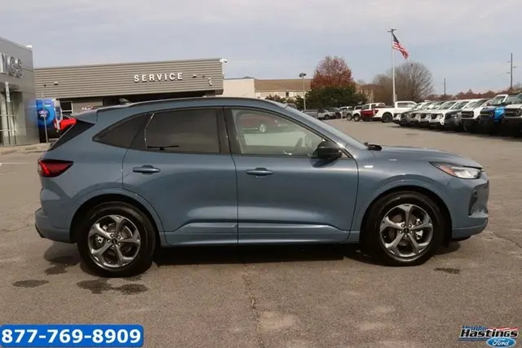 Vapor Blue 2024 Ford Escape ST-Line FWD 8-Speed Automatic 1.5L EcoBoost Escape ST-Line, 4D Sport Utility, 1.5L EcoBoost, 8-Speed Automatic, FWD, Vapor Blue, Ebony w/Vinyl/Cloth Front Sport Contour Bucket Seats, Adaptive Cruise Control w/Stop-and-Go, Connected Navigation, Equipment Group 300A, Ford Co-Pilot360 Assist, Rear Parking Sensor, Rear-View Camera, Speed Sign Recognition, SYNC 4 w/Enhanced Voice Recognition, Tech Pack #1, 3.81 Axle Ratio, 4-Wheel Disc Brakes, 6 Speakers, ABS brakes, Air Conditioning, Alloy wheels, AM/FM radio: SiriusXM, AM/FM Stereo, Auto High-beam Headlights, Automatic temperature control, Brake assist, Bumpers: body-color, Compass, Delay-off headlights, Driver door bin, Driver vanity mirror, Dual front impact airbags, Dual front side impact airbags, Electronic Stability Control, Emergency communication system: SYNC 4 911 Assist, Exterior Parking Camera Rear, FordPass Connect, Four wheel independent suspension, Front anti-roll bar, Front Bucket Seats, Front Center Armrest, Front dual zone A/C, Front reading lights, Fully automatic headlights, Illuminated entry, Knee airbag, Low tire pressure warning, Occupant sensing airbag, Outside temperature display, Overhead airbag, Overhead console, Panic alarm, Passenger door bin, Passenger vanity mirror, Power door mirrors, Power driver seat, Power Liftgate, Power steering, Power windows, Radio data system, Rear anti-roll bar, Rear reading lights, Rear seat center armrest, Rear window defroster, Rear window wiper, Remote keyless entry, Roof rack: rails only, Speed control, Speed-sensing steering, Speed-Sensitive Wipers, Split folding rear seat, Spoiler, Sport steering wheel, Steering wheel mounted audio controls, SYNC 4, Tachometer, Telescoping steering wheel, Tilt steering wheel, Traction control, Trip computer, Variably intermittent wipers, Vinyl/Cloth Front Sport Contour Bucket Seats, Wheels: 18 Rock Metallic Painted Aluminum, Escape ST-Line, 4D Sport Utility, 1.5L EcoBoost, 8-Speed Automatic, FWD, Vapor Blue, Ebony w/Vinyl/Cloth Front Sport Contour Bucket Seats, Adaptive Cruise Control w/Stop-and-Go, Connected Navigation, Equipment Group 300A, Ford Co-Pilot360 Assist, Rear Parking Sensor, Rear-View Camera, Speed Sign Recognition, SYNC 4 w/Enhanced Voice Recognition, Tech Pack #1. 27/34 City/Highway MPG