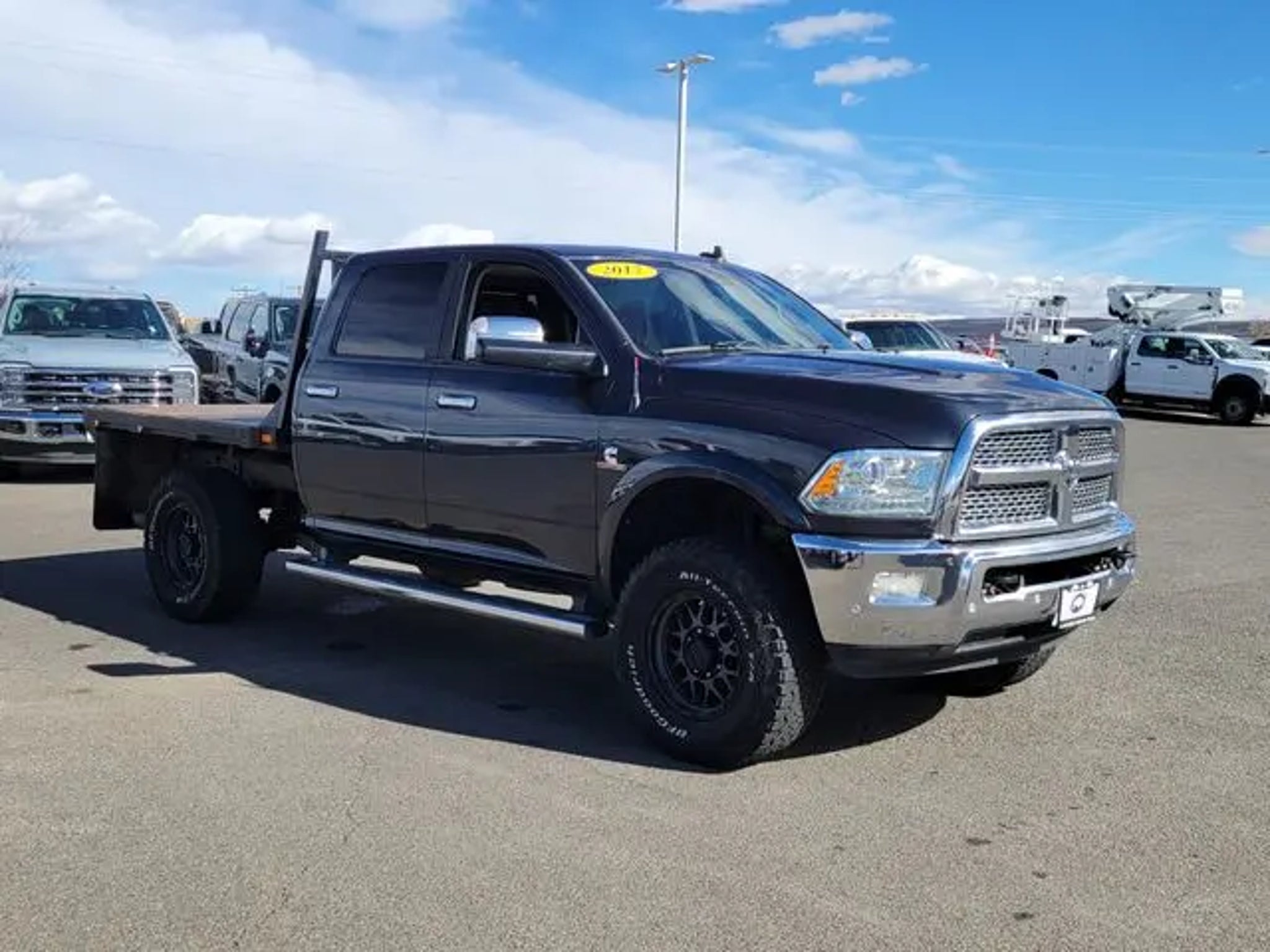 This 2017 Ram 2500 come equipped with, 1 Year Trial (Registration Required), 10 Speakers, 115V Auxiliary Power Outlet, 220 Amp Alternator, 4-Wheel Disc Brakes, 5-Year SiriusXM Traffic Service, 5-Year SiriusXM Travel Link Service, 8.4 Touchscreen Display, ABS brakes, Air Conditioning, Air Conditioning ATC w/Dual Zone Control, Alloy wheels, AM/FM radio: SiriusXM, Anti-Spin Differential Rear Axle, Audio memory, Auto-dimming door mirrors, Auto-dimming Rear-View mirror, Automatic temperature control, Brake assist, Bumpers: chrome, Center Hub, Chrome Exterior Mirrors, Chrome Tubular Side Steps, Cold Weather Group, Compass, Delay-off headlights, Driver door bin, Driver vanity mirror, Dual front impact airbags, Dual front side impact airbags, Electronic Stability Control, Emergency communication system: Uconnect Access, Engine Block Heater, Exterior Mirrors Courtesy Lamps, Exterior Mirrors w/Heating Element, Exterior Mirrors w/Memory, Exterior Mirrors w/Supplemental Signals, For Details Visit DriveUconnect.com, Front anti-roll bar, Front Armrest w/Cupholders, Front Center Armrest w/Storage, Front dual zone A/C, Front fog lights, Front reading lights, Fully automatic headlights, Garage door transmitter, GPS Antenna Input, GPS Navigation, HD Radio, Heated door mirrors, Heated Front Seats, Heated front seats, Heated steering wheel, Illuminated entry, Integrated Voice Command w/Bluetooth, Keyless Enter-N-Go, Leather steering wheel, Leather Trim 40/20/40 Bench Seat, LED Bed Lighting, Low tire pressure warning, Media Hub (2 USB, AUX), Media Hub (USB, AUX), Memory seat, Occupant sensing airbag, Outside temperature display, Overhead airbag, Overhead console, Panic alarm, ParkView Rear Back-Up Camera, Passenger door bin, Passenger vanity mirror, Power door mirrors, Power driver seat, Power Folding Chrome Trailer Tow Mirrors, Power Folding Mirrors, Power passenger seat, Power steering, Power Sunroof, Power windows, Protection Group, Quick Order Package 2FH Laramie, Radio data system, Radio: Uconnect 3C Nav w/8.4 Display, Radio: Uconnect 3C w/8.4 Display, Rear seat center armrest, Rear step bumper, Rear Window Defroster, Remote keyless entry, Remote Proximity Keyless Entry, Remote Start System, Security system, SiriusXM Satellite Radio, SiriusXM Traffic, SiriusXM Travel Link, Speed control, Split folding rear seat, Steering wheel mounted audio controls, Tachometer, Tilt steering wheel, Traction control, Trailer Tow Mirrors, Trip computer, Turn signal indicator mirrors, Uconnect Access, Variably intermittent wipers, Vendor Painted Cargo Box Tracking, Ventilated front seats, Voltmeter, Wheels: 18 x 8.0 Polished Aluminum, Wheels: 20 x 8.0 Painted Aluminum w/Chrome Inserts, Winter Front Grille Cover. Maximum Steel Metallic Clearcoat 2017 Ram 2500 Laramie 4WD Cummins 6.7L I6 Turbodiesel 6-Speed Automatic