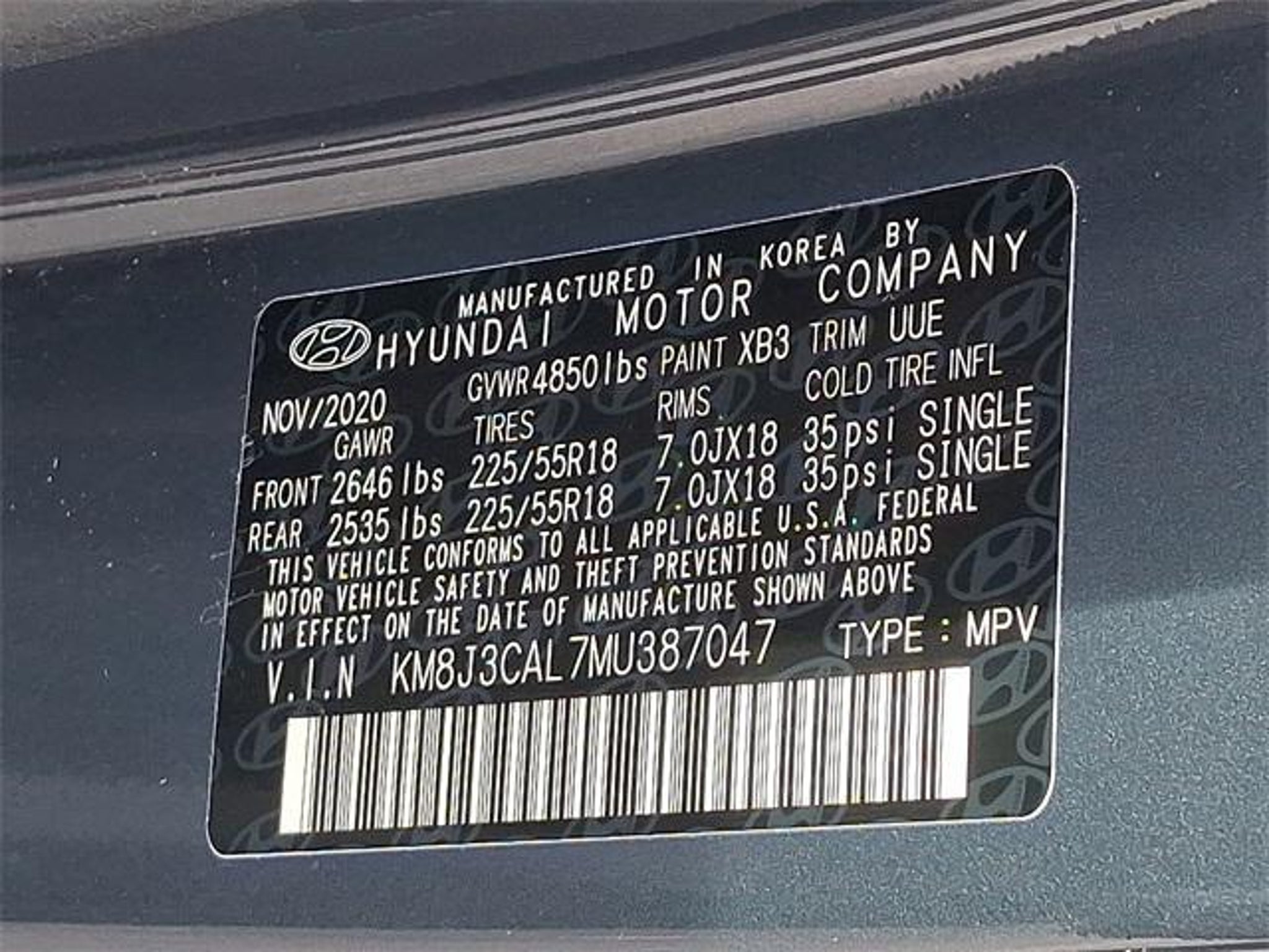 VIN KM8J3CAL7MU387047