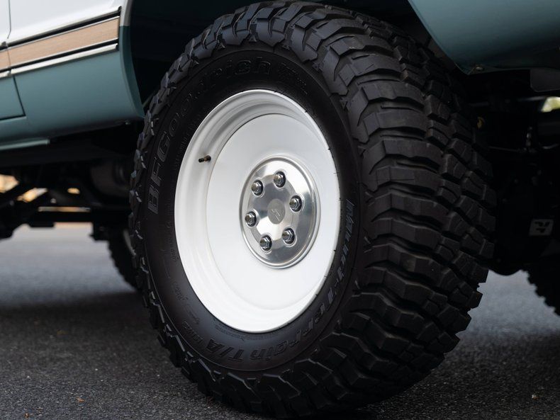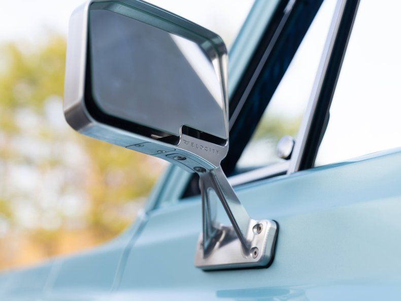 Exterior: SPARC Paint: Seafoam Green w/ Satin White Stripe Package Restored K5 Blazer Body Panels New OEM-Style Chrome Front/Rear Bumpers Velocity Chrome Mirrors Velocity Handles Brightwork Trim Velocity Restorations Heritage LED Headlights/Tail Lights Restored Removable Color Matched Hardtop New Weatherstripping & Window Felts Velocity Heritage Series Wheels 18" All-Terrain BFGoodrich Tires 35" Billet Fuel Door / Billet Exterior Accent Components Premium Velocity Badging Power Steps