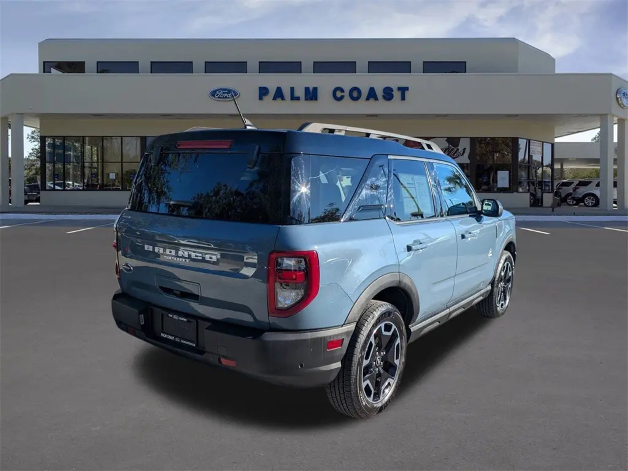 2024 Ford Bronco Sport Outer Banks 4WD 1.5L EcoBoost 8-Speed Automatic Azure Gray Metallic Tri-Coat Clean CARFAX. CARFAX One-Owner. 25/29 City/Highway MPG Equipped with Equipment Group 300A, Ford Co-Pilot360 Assist (Evasive Steering Assist, Intelligent Adaptive Cruise Control w/Stop & Go, and Voice-Activated Touchscreen Navigation System), Tech Package (HD Radio, Universal Garage Door Opener (UGDO), and Wireless Charging Pad), 3.80 Axle Ratio, 4-Wheel Disc Brakes, 6 Speakers, ABS brakes, Air Conditioning, Alloy wheels, AM/FM radio: SiriusXM, AM/FM Stereo, Auto High-beam Headlights, Auto-dimming Rear-View mirror, Automatic temperature control, Brake assist, Cargo Management System, Cargo Mat, Compass, Delay-off headlights, Driver door bin, Driver vanity mirror, Dual front impact airbags, Dual front side impact airbags, Electronic Stability Control, Emergency communication system: SYNC 3 911 Assist, Four wheel independent suspension, Front & Rear Floor Liners w/Carpet Mats, Front anti-roll bar, Front Bucket Seats, Front Center Armrest, Front dual zone A/C, Front fog lights, Front License Plate Bracket, Front reading lights, Fully automatic headlights, Heated door mirrors, Heated front seats, Heated steering wheel, Illuminated entry, Knee airbag, Low tire pressure warning, Memory seat, Occupant sensing airbag, Outside temperature display, Overhead airbag, Overhead console, Panic alarm, Passenger door bin, Passenger vanity mirror, Power door mirrors, Power driver seat, Power Moonroof, Power passenger seat, Power steering, Power windows, Premium-Trimmed Heated Sport Contour Bucket Seats, Radio data system, Rain sensing wipers, Rear anti-roll bar, Rear Parking Sensors, Rear reading lights, Rear seat center armrest, Rear window defroster, Rear window wiper, Remote keyless entry, Security system, SiriusXM, Speed control, Speed-sensing steering, Speed-Sensitive Wipers, Split folding rear seat, Steering wheel mounted audio controls, SYNC 3 Communications & Entertainment System, Tachometer, Telescoping steering wheel, Tilt steering wheel, Traction control, Trip computer, Variably intermittent wipers, and Wheels: 18 Ebony Black-Painted Aluminum. Palm Coast Ford, We're Not That Far! Free deliveries within 200 miles. Call us today to experience the difference, (386) 447-3380.
