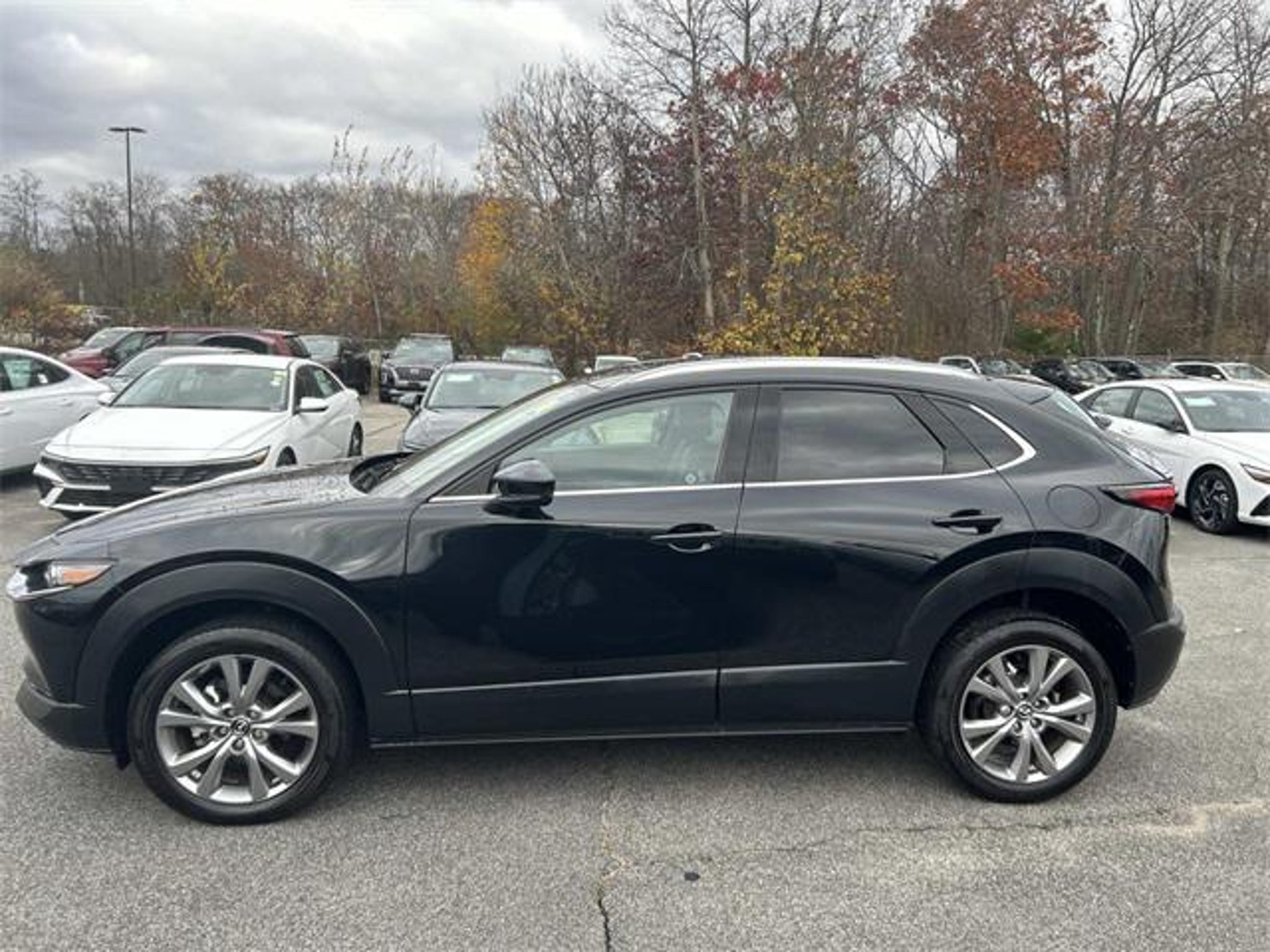 Certified. CARFAX One-Owner. This 2023 Jet Black Mica Mazda CX-30 2.5 S Premium Package AWD is well equipped and includes these features and benefits: Clean CARFAX. 4-Wheel Disc Brakes 4.095 Axle Ratio 8 Speakers ABS brakes Air Conditioning Alloy wheels AppLink/Apple CarPlay and Android Auto Auto High-beam Headlights Automatic temperature control Bose Audio Credit Brake assist Bumpers: body-color Cargo Net Compass Delay-off headlights Driver door bin Driver vanity mirror Dual front impact airbags Dual front side impact airbags Electronic Stability Control Emergency communication system: Mazda Connected Services (3-year complimentary trial included) Exterior Parking Camera Rear Front anti-roll bar Front Bucket Seats Front Center Armrest Front dual zone A/C Front reading lights Front wheel independent suspension Fully automatic headlights Heads-Up Display Heated Front Bucket Seats Heated front seats High Wall All-Weather Floor Mats Illuminated entry Knee airbag Leather Seat Trim Leather Shift Knob Leather steering wheel Low tire pressure warning MAZDA CONNECT Infotainment System Memory seat Navigation system: MAZDA CONNECT Occupant sensing airbag Outside temperature display Overhead airbag Overhead console Panic alarm Passenger door bin Passenger vanity mirror Power door mirrors Power driver seat Power Liftgate Power moonroof Power steering Power windows Radio data system Radio: AM/FM/HD Audio System w/Mazda Navigation Rain sensing wipers Rear seat center armrest Rear side impact airbag Rear window defroster Rear window wiper Remote keyless entry Speed control Speed-sensing steering Split folding rear seat Spoiler Steering wheel mounted audio controls Tachometer Telescoping steering wheel Tilt steering wheel Traction control Trip computer Turn signal indicator mirrors Variably intermittent wipers Wheels: 18 x 7J Aluminum Alloy. Odometer is 24416 miles below market average! 26/33 City/Highway MPG Certification Program Details: Gold Check Certification