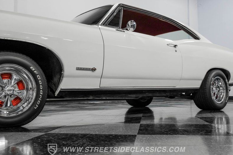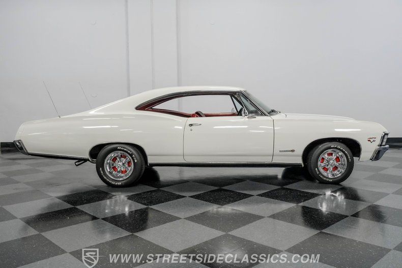 Highlights Real Super Sport Factory Correct Repaint in Ermine White 427 V8 Engine with Weber Carburetor Edelbrock Intake Manifold TH400 3-Speed Automatic Transmission Aluminum Radiator Chrome Valve Covers and Air Cleaner Factory Correct Red Vinyl Interior Leather Wrapped SS Steering Wheel Aftermarket Gauge Cluster JVC 12-Disc CD Changer Controller 15" Cragar Rally Wheels Power Steering and Power Brakes Air Shocks in Rear Suspension Dual Aerials and Half-Chrome Headlights Financing Available Vehicle Protection Plans Available Worldwide Shipping