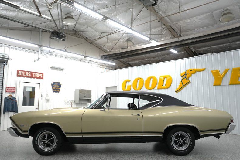 THIS VEHICLE IS LOCATED IN OUR PA. SHOWROOM, FREE SHIPPING AND WARRANTY !!!!! 396cid Big Block Chevrolet Engine. Turbo 400 Automatic Transmission. Power Steering. Power Brakes. Front Disc Brakes. Rear Drum Brakes. 14 Inch Wheels. Front Tires: 235/60/14. Rear Tires: 245/60/14. BFGoodrich Radial TA Tires. GM 12 Bolt Rear End. POSI Rear End. 3.23 Gear Ratio. Holley 4 Barrel Carburetor. Electric Choke. Mechanical Fuel Pump. HEI Distributor. Stock Ignition. Steel Radiator. 4 Blade Cooling Fan. Ash Gold Exterior. Black Lower Body Stripe. Black Vinyl Top. Chrome Front & Rear Bumpers. Driver & Passenger Side Mirrors. Bright Window Trim. Bright Rocker Trim. Bright Wheel Lip Molding. Black Vinyl Interior. Front Bucket Seats. Front Seat Belts. Factory Gauges. AutoMeter Oil Pressure Gauge. AutoMeter Water Temperature Gauge. Factory Radio. Center Console. Black Carpeting. Black Headliner. Black Door Panels. Long Tube Headers. 3" Dual Exhaust. Flowmaster Mufflers. Chrome Valve Covers. 8mm ACDelco Plug Wires.