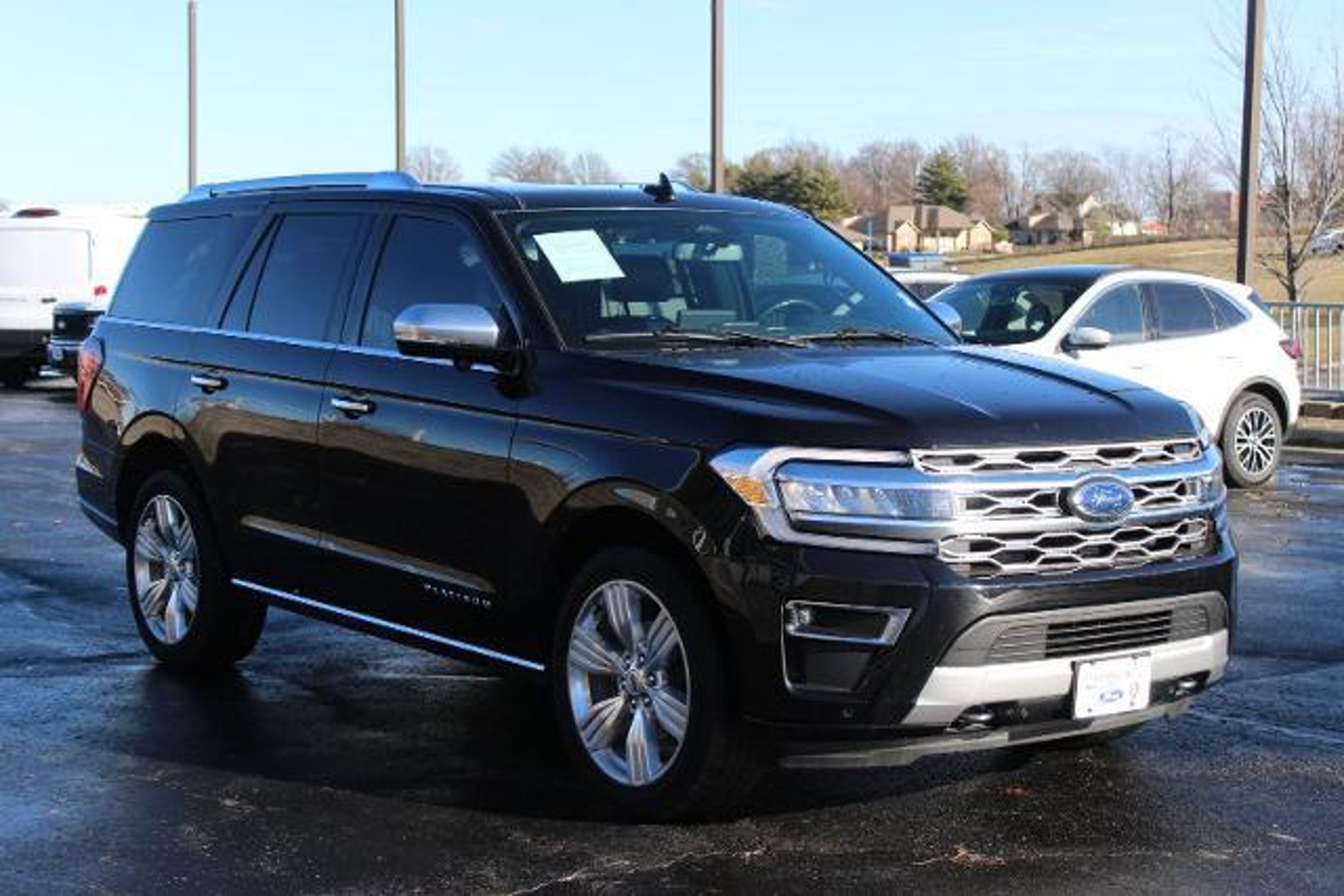 New Price! **CARFAX ONE OWNER** **4WD/AWD** **BLUETOOTH** **FORD PASS** **KEYLESS ENTRY** **LEATHER** **LOTS OF SPACE** **NEW CAR TRADE** **POWER SUNROOF/MOONROOF** **REAR BACKUP CAMERA** **REAR BACKUP SENSORS** **REMOTE START** **SIRIUS/XM SATELLITE RADIO** **SYNC 4** **ECOBOOST** **WINDOW TINT** **PUSH BUTTON START** **BACKUP CAMERA** **CHROME WHEELS** **CLIMATE CONTROL** 4WD Navigation System Navigation system: Connected Navigation SYNC 4 w/Enhanced Voice Recognition 1st & 2nd Row Floor Liners w/Carpet Mats 22 Speakers 26mm Engine Radiator 360-Degree Camera w/Trailer Reverse Guidance 3rd row seats: split-bench 4-Wheel Disc Brakes ABS brakes Active Park Assist 2.0 Removal Adaptive suspension Adjustable pedals Air Conditioning Alloy wheels AM/FM radio: SiriusXM with 360L Auto High-beam Headlights Auto-dimming door mirrors Auto-dimming Rear-View mirror Automatic temperature control Brake assist Bumpers: body-color Compass Delay-off headlights Driver door bin Driver vanity mirror Dual front impact airbags Dual front side impact airbags Electronic Stability Control Emergency communication system: SYNC 4 911 Assist Equipment Group 600A Standard Package Exterior Parking Camera Rear Four wheel independent suspension Front anti-roll bar Front Bucket Seats Front Center Armrest Front dual zone A/C Front fog lights Front reading lights Fully automatic headlights Garage door transmitter Genuine wood console insert Genuine wood dashboard insert Genuine wood door panel insert Hands-Free Foot-Activated Liftgate Removal (DISC) Heated door mirrors Heated front seats Heated rear seats Heated steering wheel Heavy-Duty Trailer Tow Package Htd/Ventilated Prem Lthr Front Captains Chairs (DISC) Illuminated entry Integrated Trailer Brake Controller Leather steering wheel Low tire pressure warning Memory seat Occupant sensing airbag Outside temperature display Overhead airbag Overhead console Panic alarm Passenger door bin Passenger vanity mirror Pedal memory Power door mirrors Power driver seat Power Liftgate Power moonroof Power passenger seat Power steering Power windows Pro Trailer Backup Assist Radio data system Radio: B&O Unleashed Sound System by Bang & Olufsen Rain sensing wipers Rear air conditioning Rear anti-roll bar Rear audio controls Rear reading lights Rear window defroster Rear window wiper Reclining 3rd row seat Remote keyless entry Second Row Power Windows Removal Security system SiriusXM w/360L Speed control Speed-sensing steering Speed-Sensitive Wipers Split folding rear seat Spoiler Steering wheel memory Steering wheel mounted audio controls Tachometer Telescoping steering wheel Tilt steering wheel Traction control Trip computer Turn signal indicator mirrors Variably intermittent wipers Ventilated front seats Voltmeter Wheels: 22 12-Spoke Polished Aluminum Wheels: 22 6-Spoke Polished Aluminum 4WD Navigation System Navigation system: Connected Navigation SYNC 4 w/Enhanced Voice Recognition. 2023 Ford Expedition Platinum CARFAX One-Owner. Agate Black Metallic Ford Expedition Odometer is 10812 miles below market average! We carry all makes and models in Blue Springs Oak Grove Liberty Odessa Warrensburg Kansas City Independence and Lee s Summit Missouri. Also have vehicles in all different colors Black Red White Brown Blue tan Green Yellow Gold Burgundy Silver Charcoal. We also carry Acura Audi BMW Buick Cadillac Chevrolet Chrysler Dodge Fiat Ford GMC Honda Hummer Hyundai INFINITI Jaguar Jeep Kia Land Rover Lexus Lincoln Mazda Mercedes-Benz Mini Porsche RAM Scion Subaru Tesla Toyota Volkswagen and Volvo s.