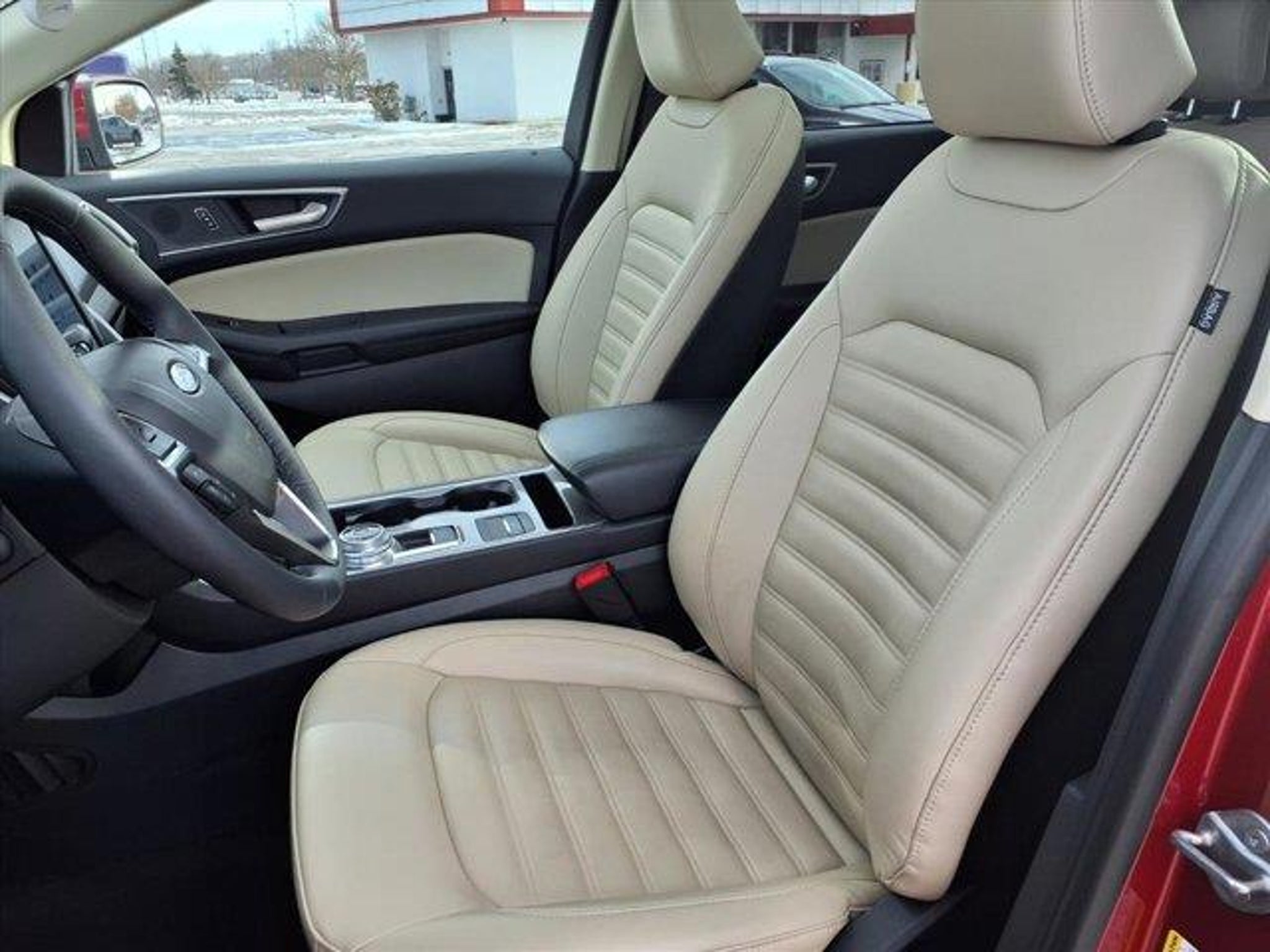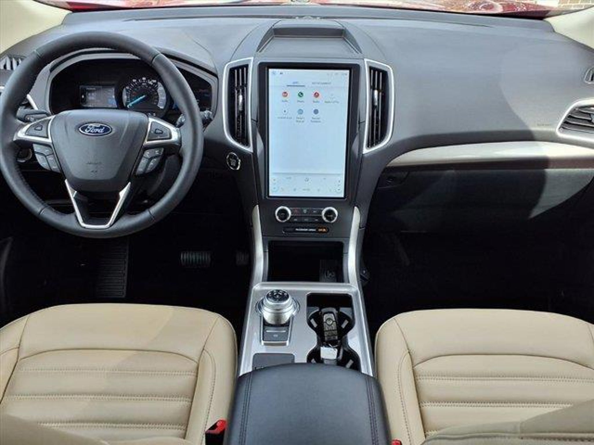 RAPID RED TINTED CC $495.00 PANORAMIC VISTA ROOF $1,595.00 HEATED STEERING WHEEL $350.00 CONVENIENCE PACKAGE $1,250.00 18 BRIGHT WHEELS $895.00 .PERIMETER ALARM .POWER LIFTGATE .REMOTE START SYSTEM .UNIVERSAL GARAGE DOOR OPENER .WIRELESS CHARGING PAD MINI SPARE WHL/TIRE $100.00 This vehicle is a 2024 Ford Edge SEL with an all wheel drive, 2.0 liter EcoBoost Turbo I4 250hp 275 lb-ft engine, direct injection. It has a rapid red metallic tinted clearcoat (d4) exterior and a dune interior. It has a fuel economy of 21 mpg in the city and 28 mpg on the highway, making it an efficient choice for drivers. It also has a crash test rating of 5 out of 5 stars, making it safe and secure on the road. This vehicle also comes with many features such as touch screen display, Bluetooth audio connection, blind spot sensor, hill start assist, on demand four wheel drive, Bluetooth phone connectivity, and leather seats. All in all, this car is a great choice for anyone looking for a reliable and safe ride in the future. Call Bill Brown Ford Pre-owned at (734) 522-0030 to confirm availability and schedule a no-obligation test drive!