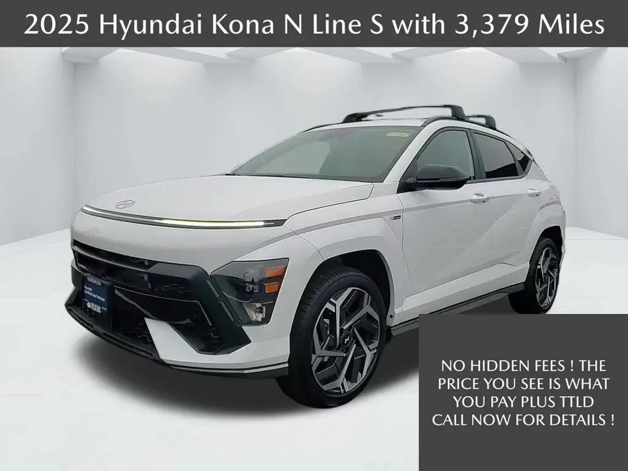 Certified. 2025 Hyundai Kona Atlas White N Line S CPO AWD 8-Speed Automatic I4 NO HIDDEN FEES ! THE PRICE YOU SEE IS WHAT YOU PAY PLUS TTLD, FRESH HYUNDAI USED CAR, ACCIDENT FREE, SERVICED AT WILKINS, ALL SERVICE RECORDS AVALIABLE, CERTIFIED PRE-OWNED, AMERICAS BEST WARRANTY, LOW MILES, NON-SMOKER VEHICLE, EXTRA CLEAN, ONE OWNER, BACKUP CAMERA, KEYLESS ENTRY, HEATED SEATS, POWER DRIVERS SEAT, BLUETOOTH, ADAPTIVE CRUISE CONTROL, CRUISE CONTROL, APPLE CAR PLAY, REMOTE START, SIRIUS XM SATELLITE RADIO, ALL WHEEL DRIVE, BRAKE ASSIST, LANE KEEP ASSIST, BLUE LINK, REAR PARKING SENSORS, BLIND SPOT WARNING, BLIND SPOT DETECTION with REAR CROSS-traffic Alert and Lane Change Alert, SURROUND VIEW MONITOR, FORWARD COLLISION -ALERT, Option Group 01. No out of town delivery available through the dealership. Customer arranged only. Recent Arrival! Odometer is 1766 miles below market average! 24/29 City/Highway MPG Hyundai Certified Used Vehicles Details: * Vehicle History * Roadside Assistance * Includes 10-year/Unlimited Mileage Roadside Assistance with Rental Car and Trip Interruption Reimbursement; Please See Dealers for Specific Vehicle Eligibility Requirements. 10-Year/100,000 Mile Hybrid/EV Battery Warranty. 3-Months SiriusXM Trial Subscription. Complimentary 1 Year (Connected Care & Remote Pkgs). * Powertrain Limited Warranty: 120 Month/100,000 Mile (whichever comes first) from original in-service date * Limited Warranty: 60 Month/60,000 Mile (whichever comes first) from original in-service date * 173 Point Inspection * Warranty Deductible: $50 No need to negotiate !! Our vehicles are MARKET PRICED DAILY.