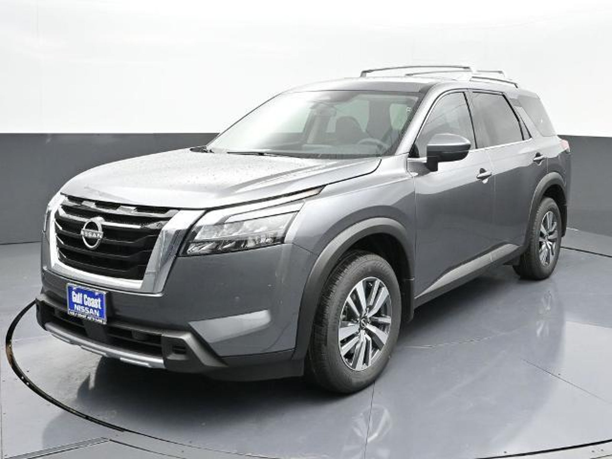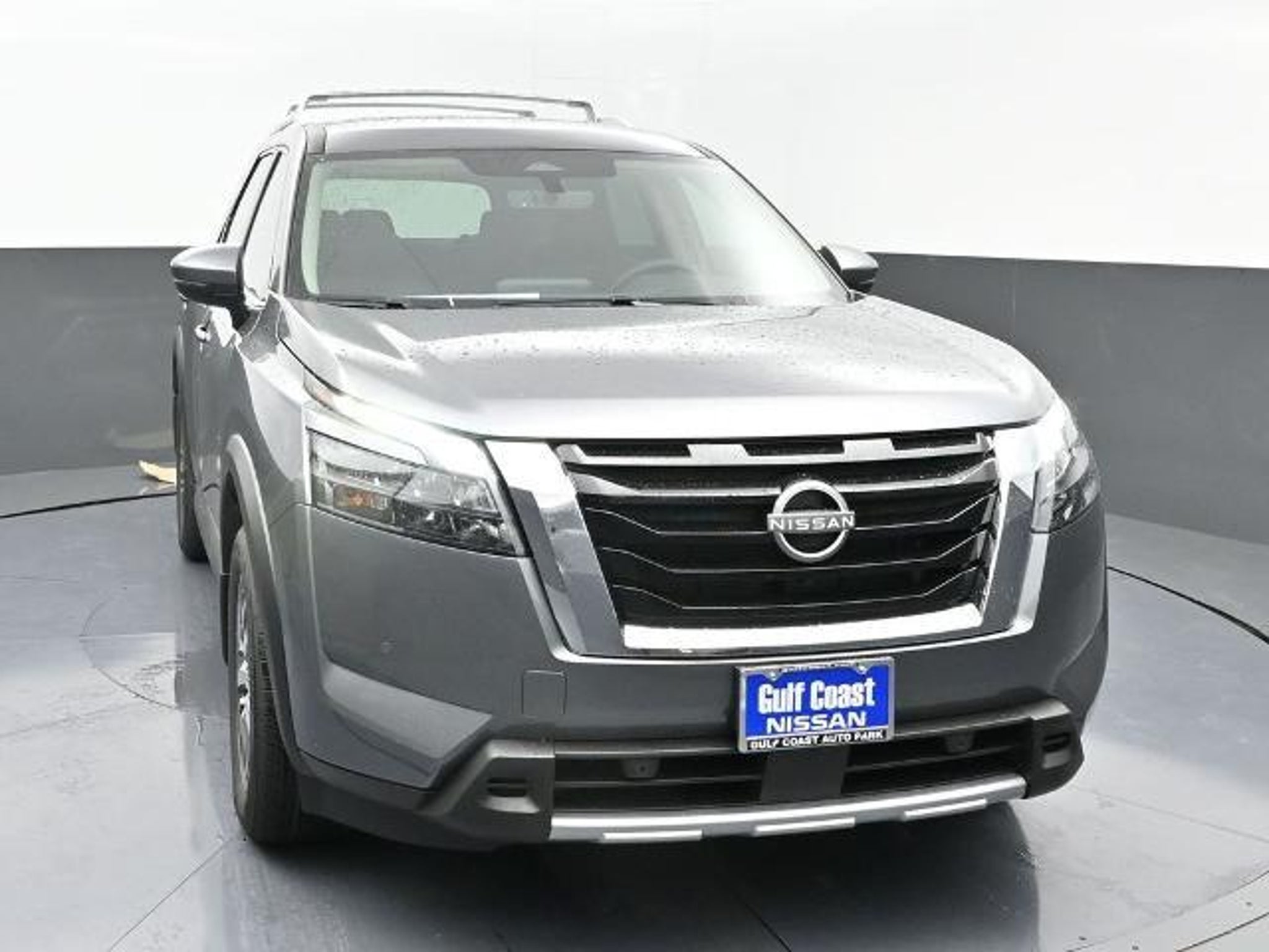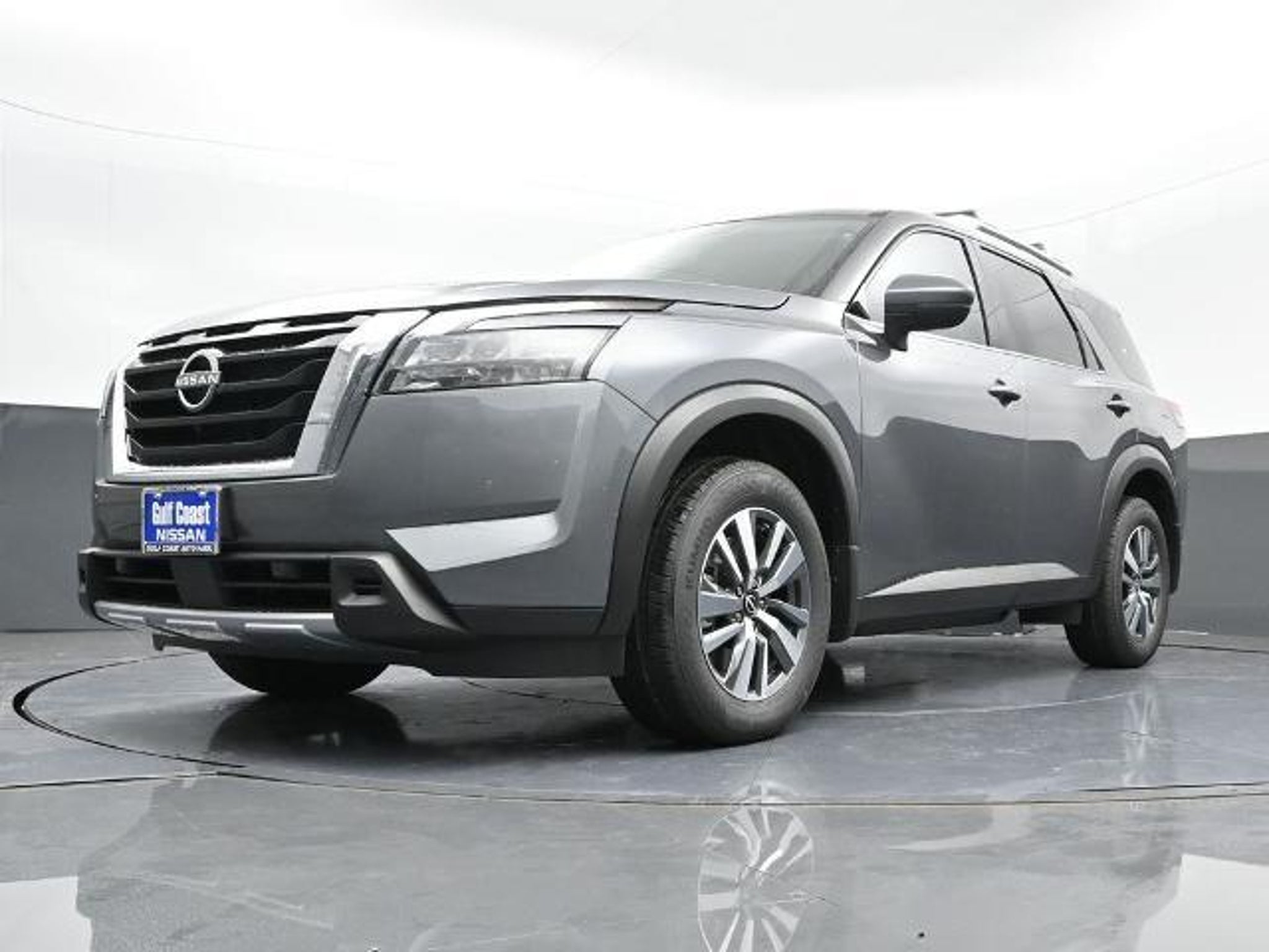 CARFAX One-Owner. Clean CARFAX. ABS brakes, Air Conditioning, Alloy wheels, Auto High-beam Headlights, Automatic temperature control, Brake assist, Delay-off headlights, Front dual zone A/C, Fully automatic headlights, Garage door transmitter: HomeLink, Leather steering wheel, Navigation system: NissanConnect with Navigation and Services, NissanConnect featuring Apple CarPlay and Android Auto, Power driver seat, Power steering, Power windows, Rear air conditioning, Remote keyless entry, Security system, Speed control. Odometer is 13236 miles below market average! 20/27 City/Highway MPG You always get the most from Gulf Coast. Gulf Coast Ford Nissan Toyota is pleased to offer this stunning 2025 Nissan Pathfinder SL in Gun Metallic with Charcoal interior. We are located at 523 and 288 in Angleton, TX or visit us online 24/7/365 at www.gulfcoast.com.