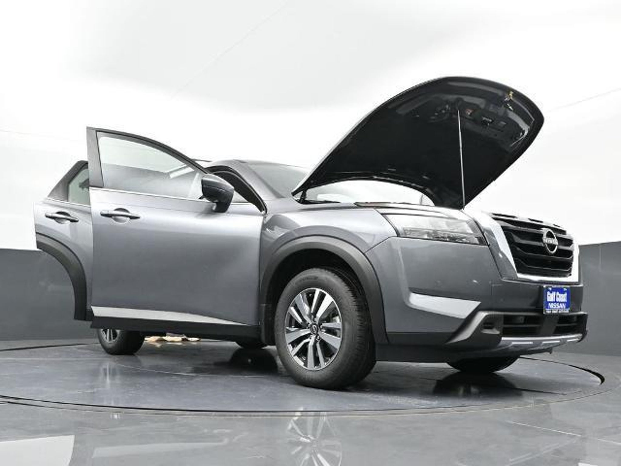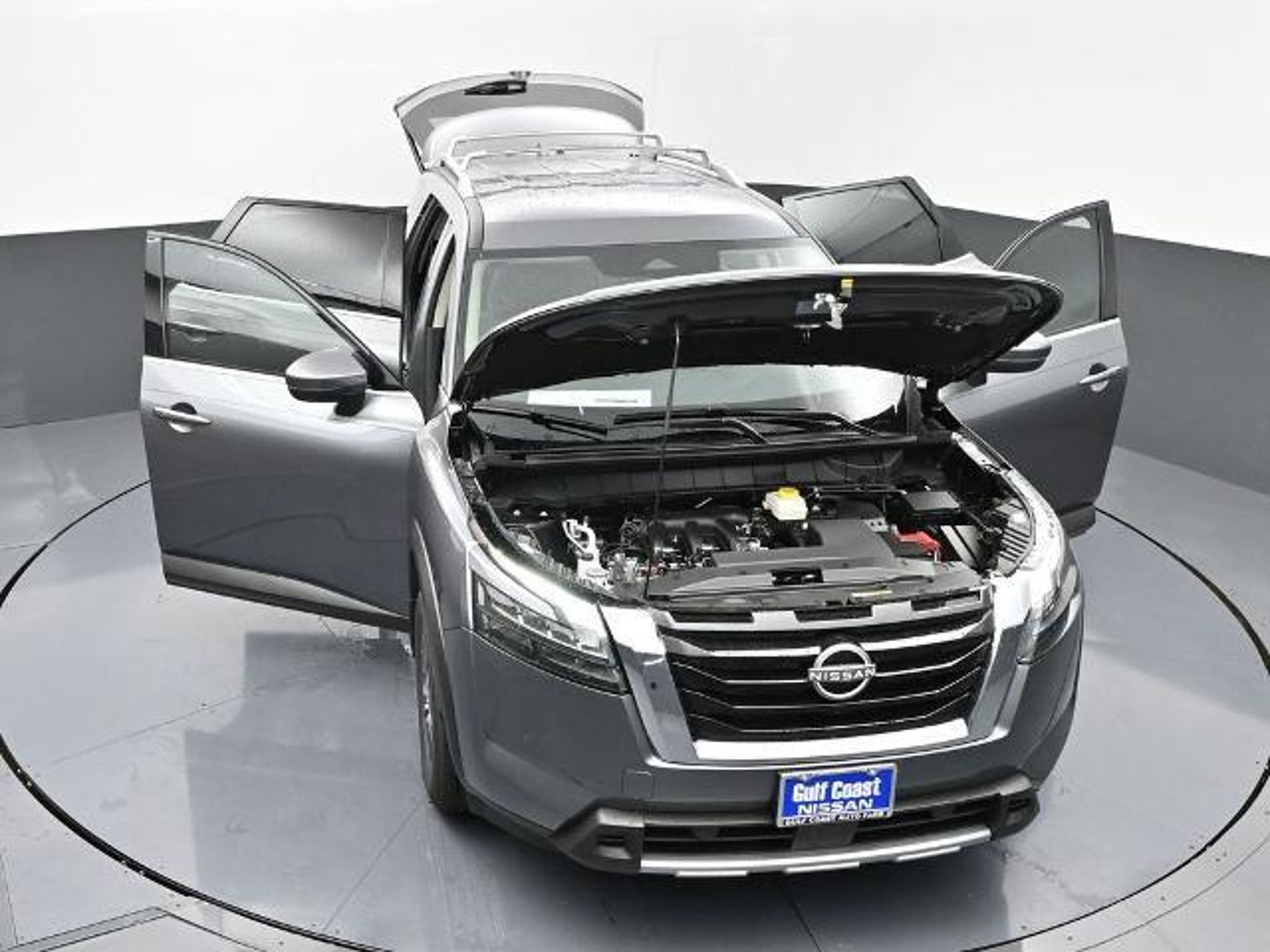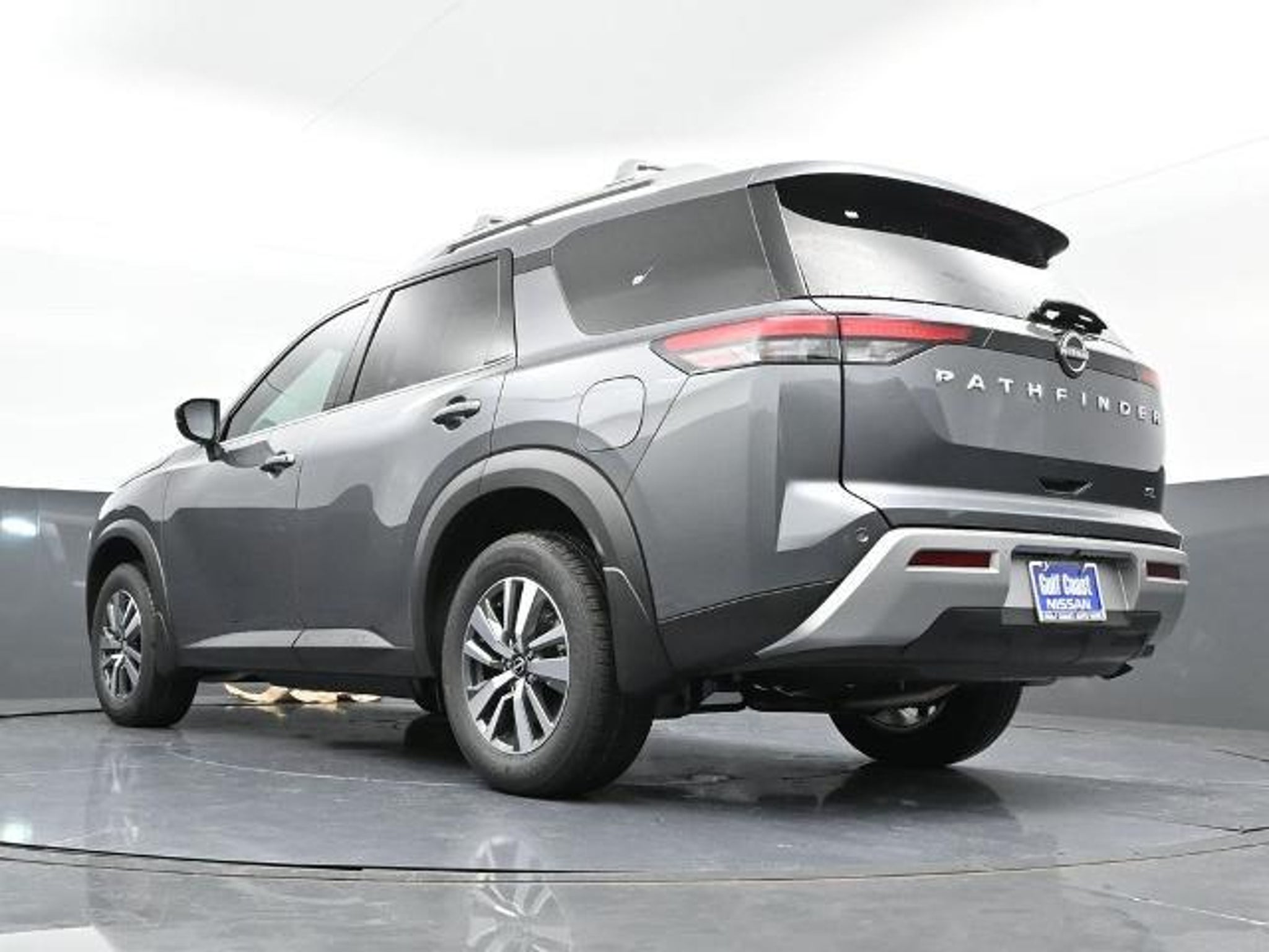 CARFAX One-Owner. Clean CARFAX. ABS brakes, Air Conditioning, Alloy wheels, Auto High-beam Headlights, Automatic temperature control, Brake assist, Delay-off headlights, Front dual zone A/C, Fully automatic headlights, Garage door transmitter: HomeLink, Leather steering wheel, Navigation system: NissanConnect with Navigation and Services, NissanConnect featuring Apple CarPlay and Android Auto, Power driver seat, Power steering, Power windows, Rear air conditioning, Remote keyless entry, Security system, Speed control. Odometer is 13236 miles below market average! 20/27 City/Highway MPG You always get the most from Gulf Coast. Gulf Coast Ford Nissan Toyota is pleased to offer this stunning 2025 Nissan Pathfinder SL in Gun Metallic with Charcoal interior. We are located at 523 and 288 in Angleton, TX or visit us online 24/7/365 at www.gulfcoast.com.
