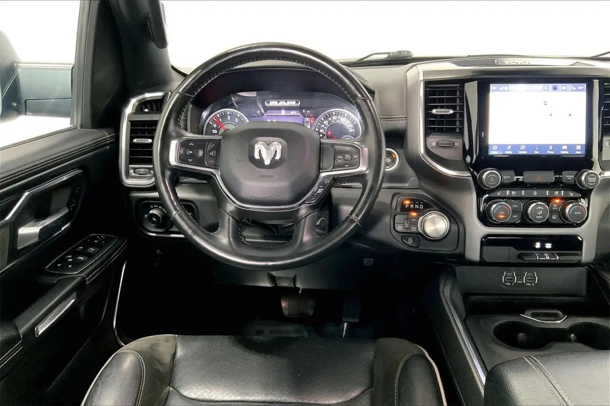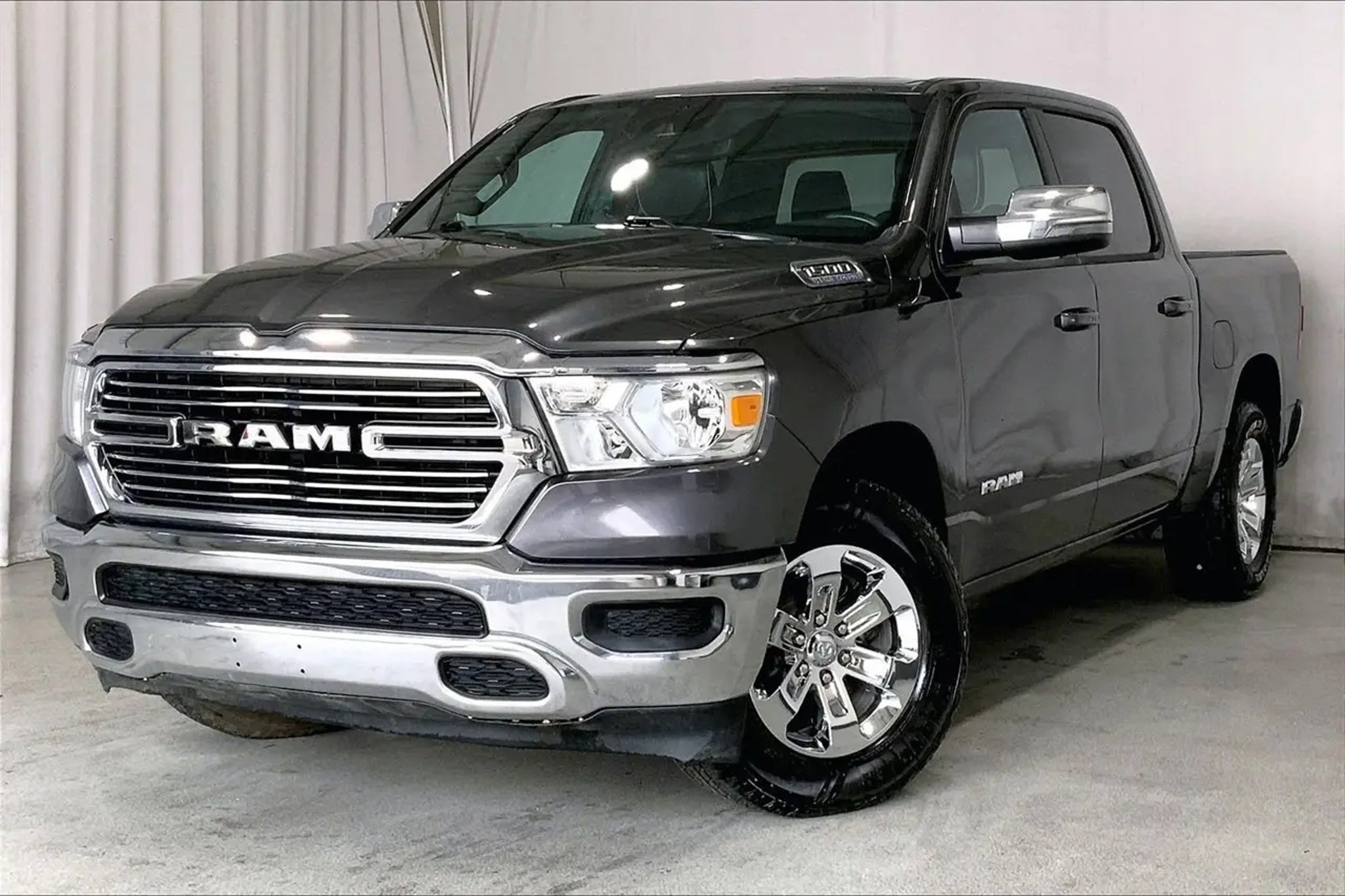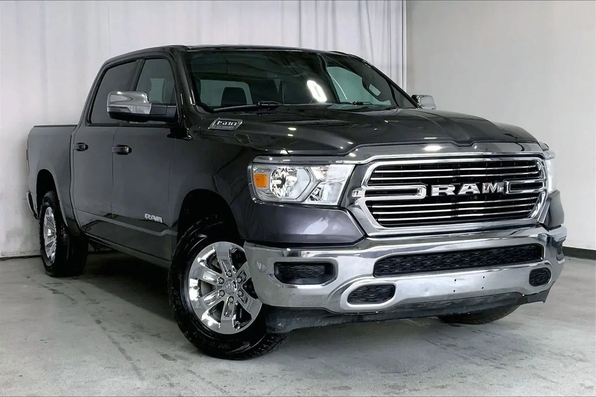 Clean Carfax, Non-Smoker, Local Trade, LEATHER, ONE OWNER, Apple CarPlay/Android Auto, Auto-dimming door mirrors, Auto-Dimming Exterior Driver Mirror, Auto-dimming Rear-View mirror, Brake assist, Compass, Front dual zone A/C, Fully automatic headlights, Garage door transmitter, Heated Front Seats, Navigation System, ParkView Rear Back-Up Camera, Steering wheel mounted audio controls, Telescoping steering wheel, USB Host Flip. CARFAX One-Owner. Granite Crystal Metallic Clearcoat 2024 Ram 1500 Laramie 4WD 8-Speed Automatic HEMI 5.7L V8 Multi Displacement VVT eTorque