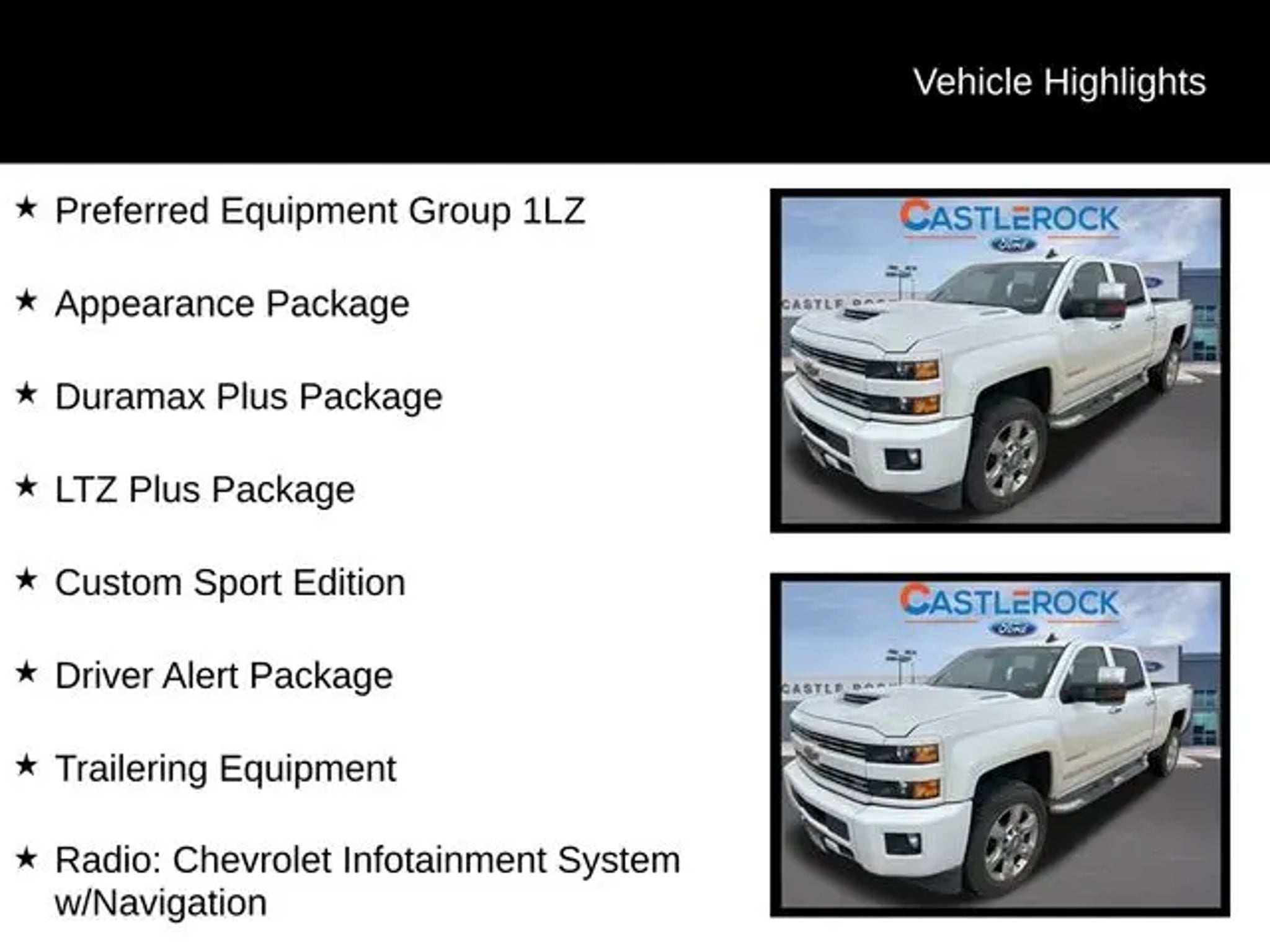 Experience the ultimate in power, capability, and comfort with this stunning 2019 Chevrolet Silverado 2500HD LTZ. This impressive heavy-duty truck is more than just a workhorse - it's a true masterpiece of engineering, designed to tackle any challenge with unparalleled strength and refinement. Boasting an impressive array of premium features, this Silverado stands out from the crowd. Key highlights include: "¢ Duramax 6.6L V8 Turbodiesel engine and Allison 1000 6-speed automatic transmission for unrivaled towing and hauling capabilities "¢ Custom Sport Edition with body-color grille, bumpers, and 20 polished aluminum wheels for a bold, distinctive look "¢ Driver Alert Package with Lane Departure Warning, Forward Collision Alert, and Front and Rear Park Assist for enhanced safety and peace of mind "¢ Heated and vented perforated leather-appointed front bucket seats for unmatched comfort and luxury "¢ Gooseneck/5th Wheel Prep Package to accommodate a wide range of towing needs This Silverado 2500HD is more than just a truck - it's a statement of power, capability, and refined sophistication. With its impressive performance, advanced technology, and premium amenities, it's the perfect choice for those who demand the very best. Whether you're tackling tough jobs on the job site, hauling heavy loads, or simply enjoying the open road, this Silverado 2500HD LTZ is up for the challenge. Its rugged construction, advanced safety features, and luxurious interior make it the ultimate companion for any adventure. Don't miss your chance to experience the unparalleled capabilities and refined comfort of this exceptional 2019 Chevrolet Silverado 2500HD LTZ. Visit our showroom today and let us demonstrate how this remarkable truck can transform the way you work, play, and explore.