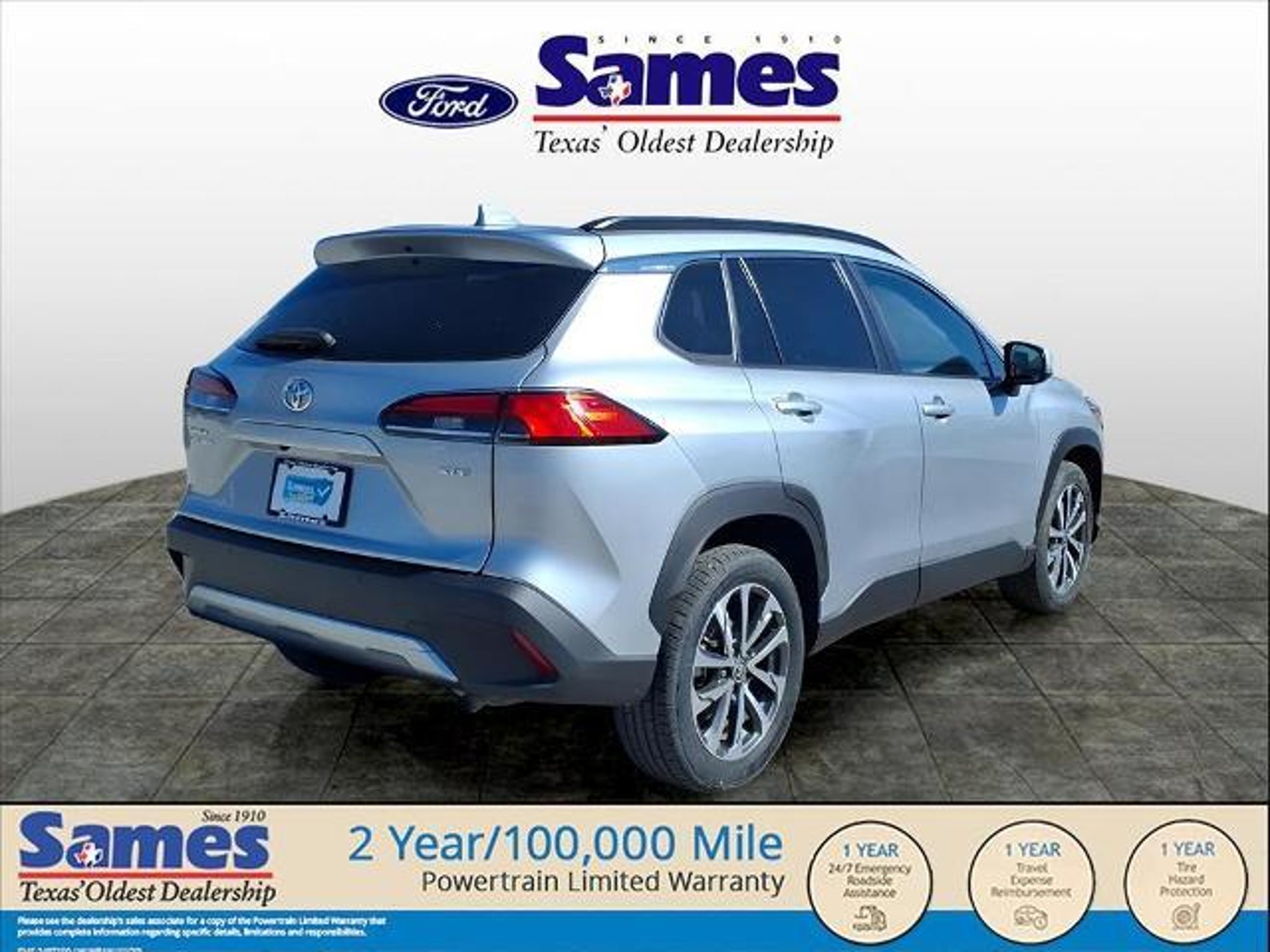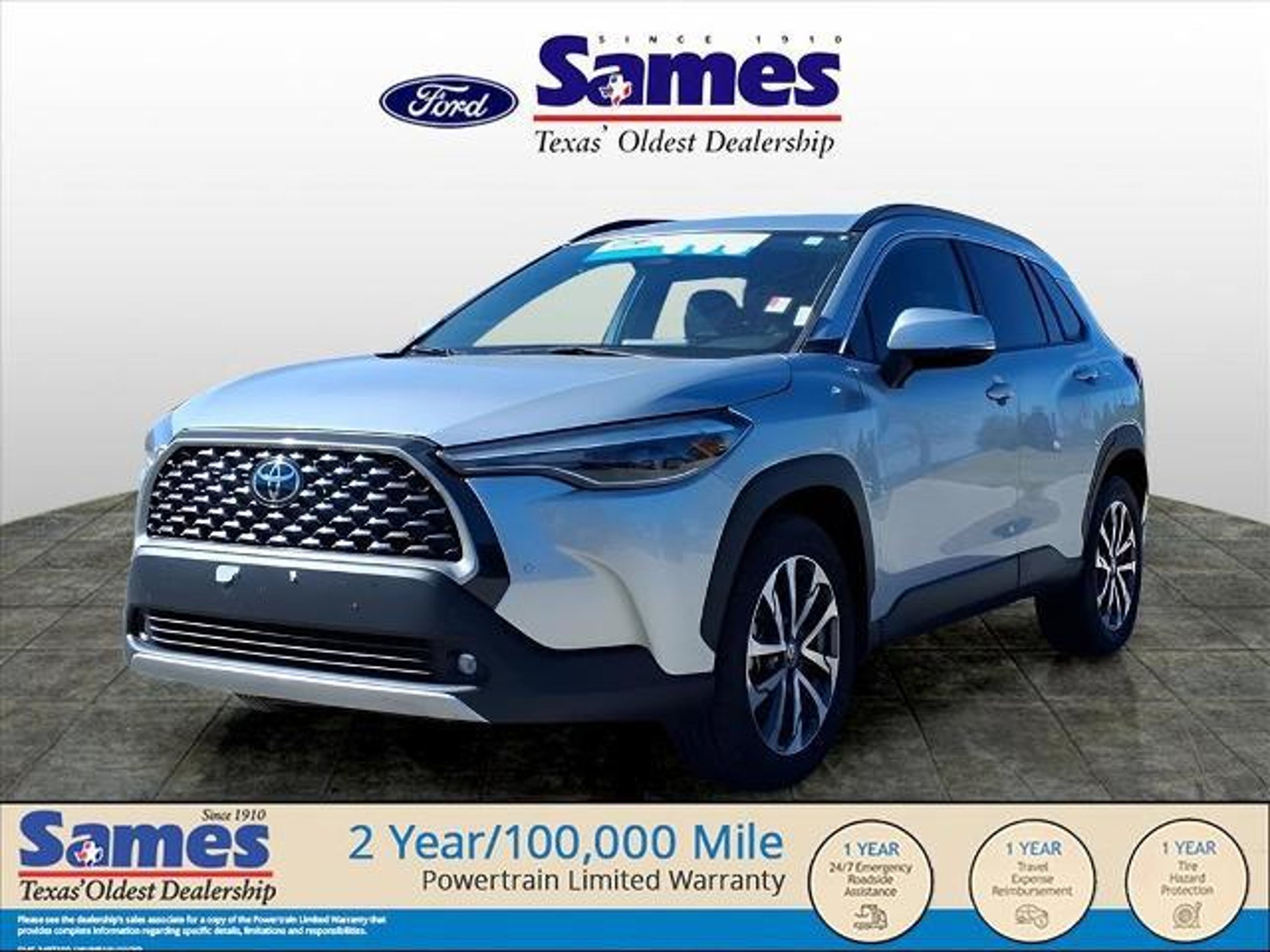 This 2023 Toyota Corolla Cross XLE in Silver Ice comes with the following features: 2.0L I4 PDI DOHC 16V LEV3-SULEV30 169hp CVT FWD 4-Wheel Disc Brakes, 4.014 Axle Ratio, 6 Speakers, ABS brakes, Air Conditioning, Alloy wheels, AM/FM radio: SiriusXM, Auto High-beam Headlights, Auto-dimming Rear-View mirror, Automatic temperature control, Brake assist, Bumpers: body-color, Delay-off headlights, Driver door bin, Driver vanity mirror, Dual front impact airbags, Dual front side impact airbags, Electronic Stability Control, Emergency communication system: Safety Connect (10-year trial), Exterior Parking Camera Rear, Front anti-roll bar, Front Bucket Seats, Front Center Armrest, Front dual zone A/C, Front fog lights, Front reading lights, Front wheel independent suspension, Fully automatic headlights, Heated door mirrors, Heated Front Bucket Seats, Heated front seats, Illuminated entry, Knee airbag, Leather Shift Knob, Leather steering wheel, Low tire pressure warning, Occupant sensing airbag, Outside temperature display, Overhead airbag, Panic alarm, Passenger door bin, Passenger vanity mirror, Power door mirrors, Power driver seat, Power steering, Power windows, Radio data system, Radio: 8 Toyota Multimedia, Rear anti-roll bar, Rear seat center armrest, Rear side impact airbag, Rear window defroster, Rear window wiper, Remote keyless entry, Roof rack: rails only, Softex Synthetic Leather Seat Trim, Speed control, Split folding rear seat, Spoiler, Steering wheel mounted audio controls, Tachometer, Telescoping steering wheel, Tilt steering wheel, Traction control, Trip computer, Turn signal indicator mirrors, Variably intermittent wipers, and Wheels: 18 Alloy w/Black-Painted Machine-Finish. Sames Auto Group stores have been in business for over 115 years, as part of the Oldest Auto Group in Texas we're committed to providing exceptional service before, during, and after your purchase. Our expert team at Sames Ford of Bastrop will ensure you drive away completely satisfied. Schedule your virtual consultation or test drive today. No hassle remote delivery to Houston, Austin and San Antonio and the rest of Texas available upon request.