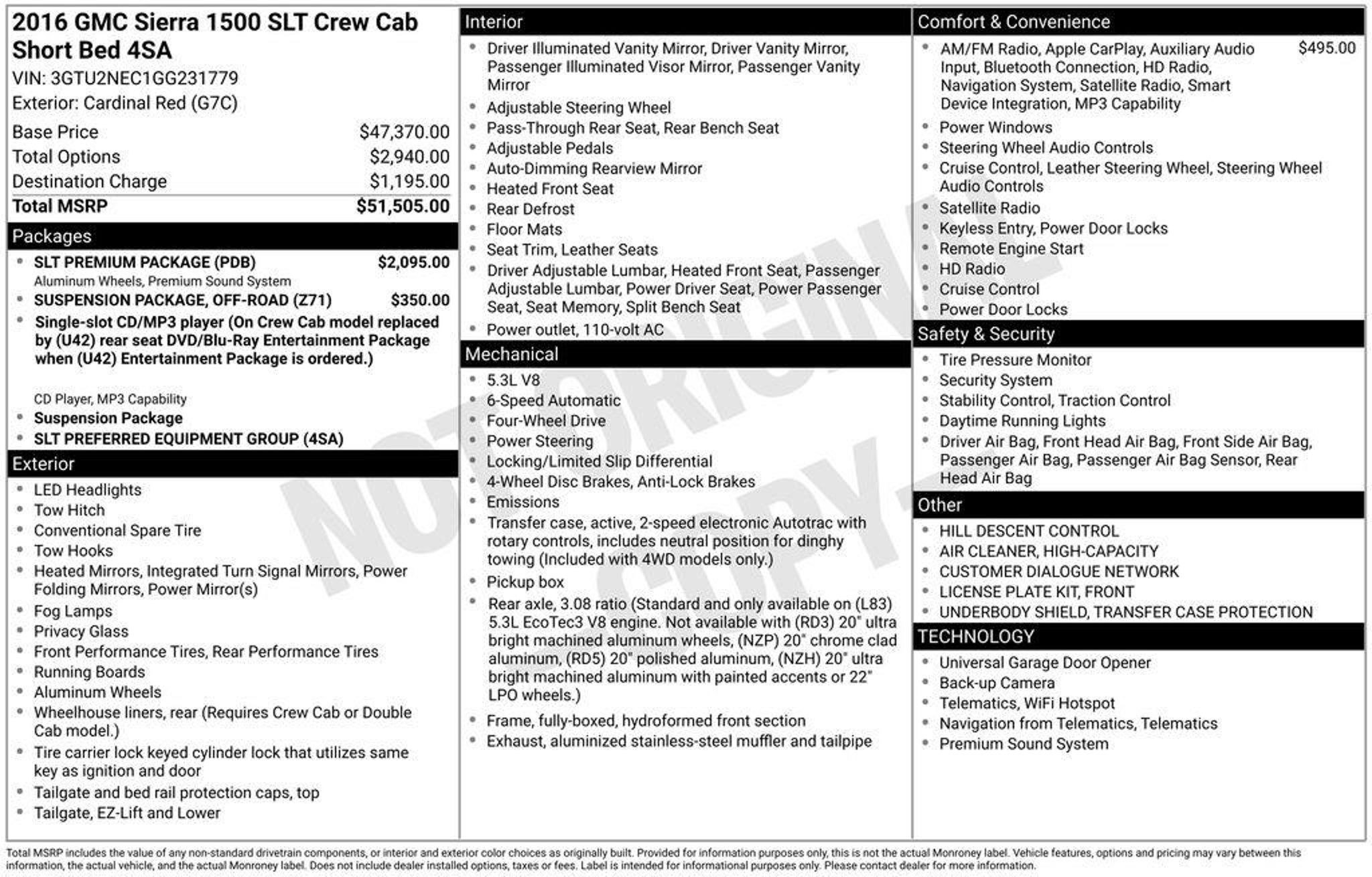 Now Available: Affordable Pre-Owned Cardinal Red 2016 GMC Sierra 1500 SLT with 85392 miles at Rapids Honda! This well-equipped used 2016 GMC Sierra 1500 SLT offers 4WD traction, an EcoTec3 5.3L V8 engine with 6-Speed Automatic Electronic with Overdrive, and fuel efficiency rated at 16 MPG city / 22 MPG highway / 18 MPG combined. Standout features include 6-Speed Automatic Electronic with Overdrive, 4WD, and Black Leather making it ready for its next adventure. Vehicles are inspected, detailed, and come with a vehicle history report. Available on select pre-owned vehicles at Rapids Honda (see salesperson for details and eligibility requirements), The Rapids Advantage includes a 6-month/6,000-mile Powertrain Warranty covering the engine, EV battery, transmission, and drivetrain, plus $200 deductible protection. You'll also receive Lifetime Car Washes, Lifetime Windshield Repellency, Lifetime Shuttle Service, and Auto Butler Environmental Protection, giving you lasting value beyond your purchase. Visit us at 1950 Gateway Dr NW off Hwy 10 & Hanson Blvd in Coon Rapids, MN, or call us at . Open Monday-Saturday.