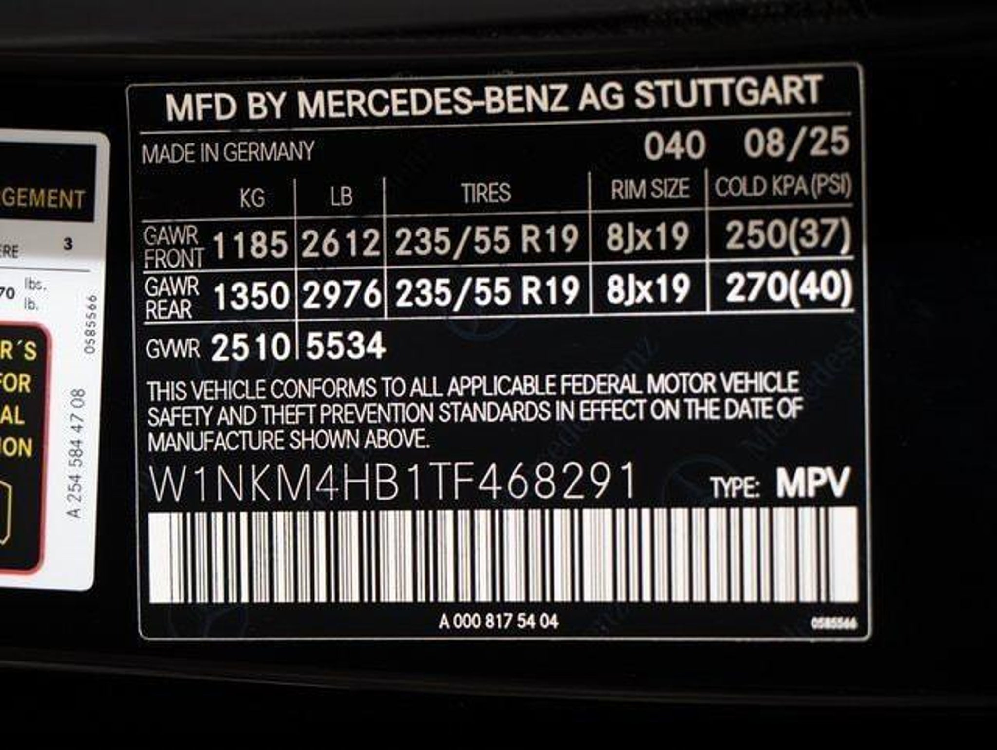 VIN W1NKM4HB1TF468291