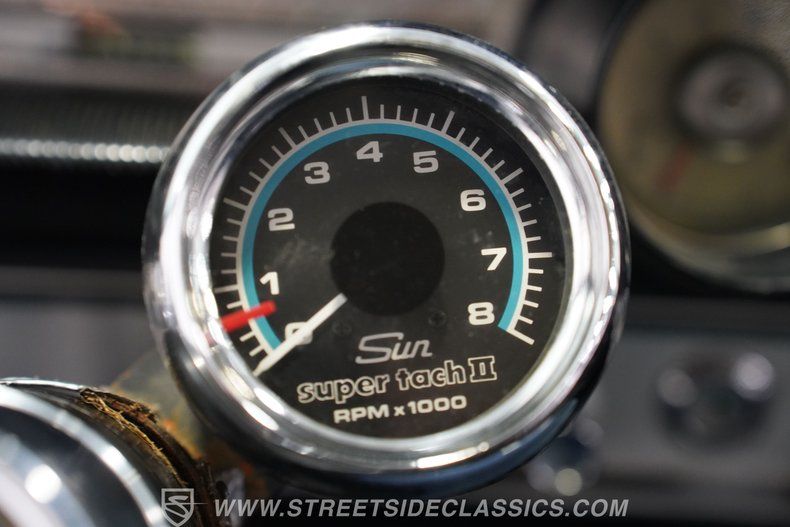 Step inside to find a clean, black vinyl interior that stays true to its original style. The bench seat offers a spacious and comfortable ride, complemented by a column-mounted tachometer with clear gauges for that authentic vintage feel. The dash features newer pads, maintaining a fresh look, while the classic AM radio adds a nostalgic touch. Despite some light wear on touchpoints, the interior presents well and invites you to enjoy every mile behind the wheel.
