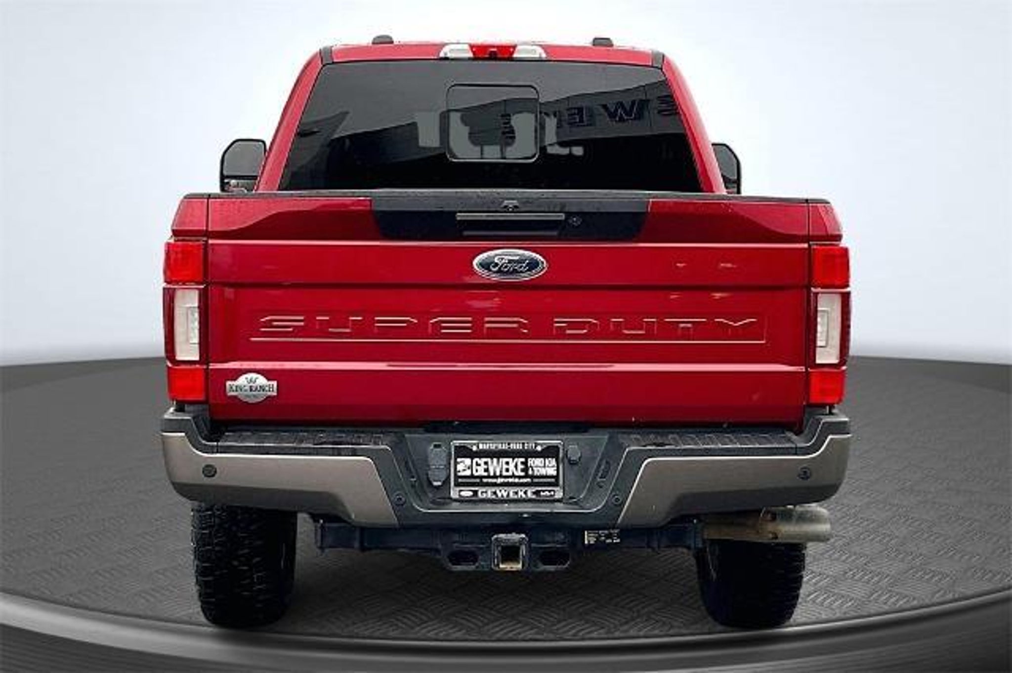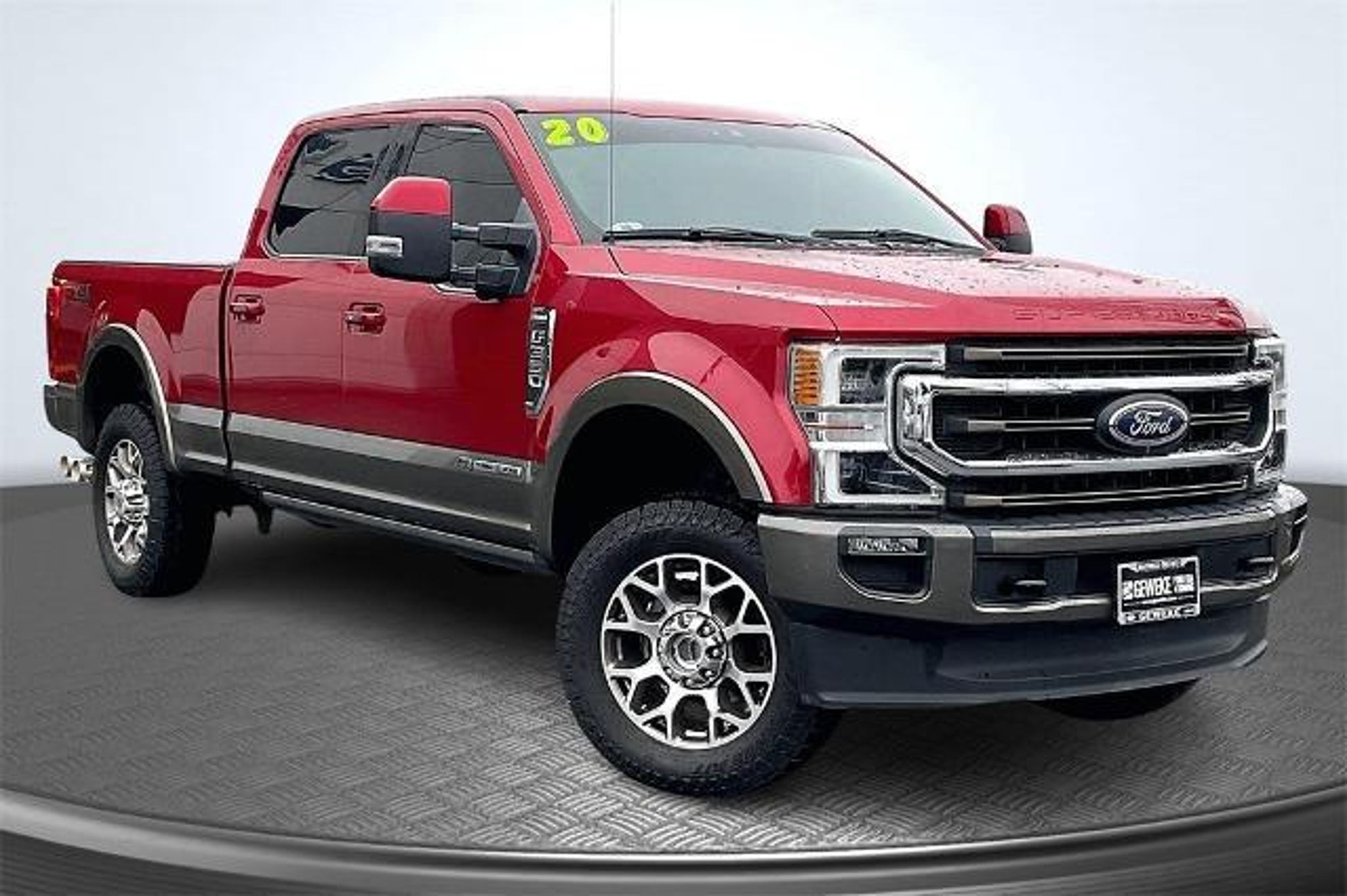 Geweke Ford Kia is pleased to offer this. 2020 Ford F-350SD King Ranch Rapid Red Metallic Tinted Clearcoat 4WD Power Stroke 6.7L V8 DI 32V OHV Turbodiesel 10-Speed Automatic Certified. Ford Blue Certified Details: * and 11,000 FordPass Rewards Points to use toward first maintenance visit * Limited Warranty: 3 Month/4,000 Mile (whichever comes first) after new car warranty expires or from certified purchase date * Vehicle History * 139 Point Inspection * Warranty Deductible: $100 * Transferable Warranty * Roadside Assistance Text us at 530-232-5950, Previous Minor Damage Reported on Carfax, Power Stroke 6.7L V8 DI 32V OHV Turbodiesel, 4WD, Twin Panel Power Moonroof. See us today at Larry Geweke Ford Kia! www.geweke.com Excellent selection of Used Vehicles, Financing Options, Serving Lodi, Sacramento, Chico, Oroville, Gridley, Colusa, Yuba City, Marysville, Sutter County, Yuba County, Butte County, Colusa County, Placer County, Shasta County, Tehama County, Sacramento County.Prices do not include government fees and taxes, any finance charges, any dealer document processing charge, any electronic filing charge and any emission testing charge.