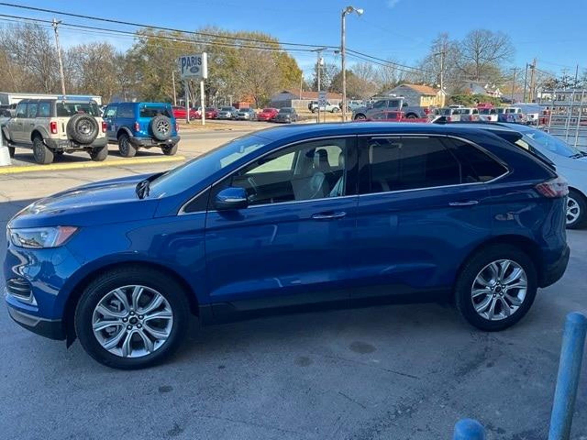 Blue Metallic 2024 Ford Edge Titanium AWD 8-Speed Automatic EcoBoost 2.0L I4 GTDi DOHC Turbocharged VCT AWD. Recent Arrival! 21/28 City/Highway MPG Internet pricing is subject to change. It is a buy outright price. Prices may vary at dealership location. Pricing goes through a 3rd party vendor, therefore we are not responsible for errors.