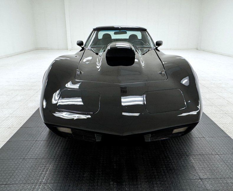 For consignment, a 1976 Chevrolet Corvette coupe showing 6,294 miles, but the true miles are unknown. This one has some engine modification and with a snorkel hood intake and giant rear wing, it's not hiding its intent!