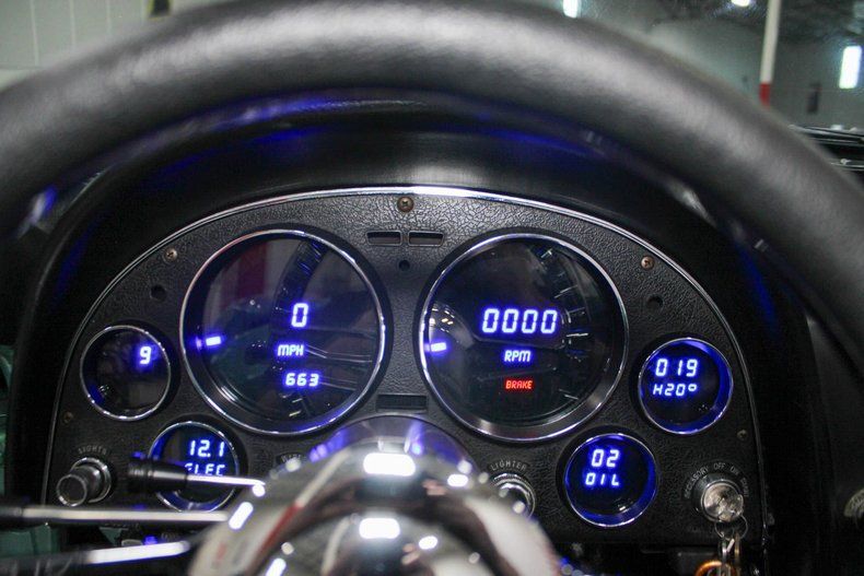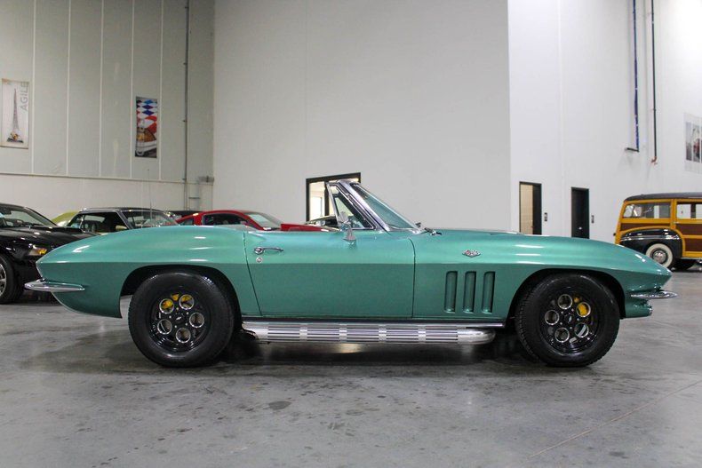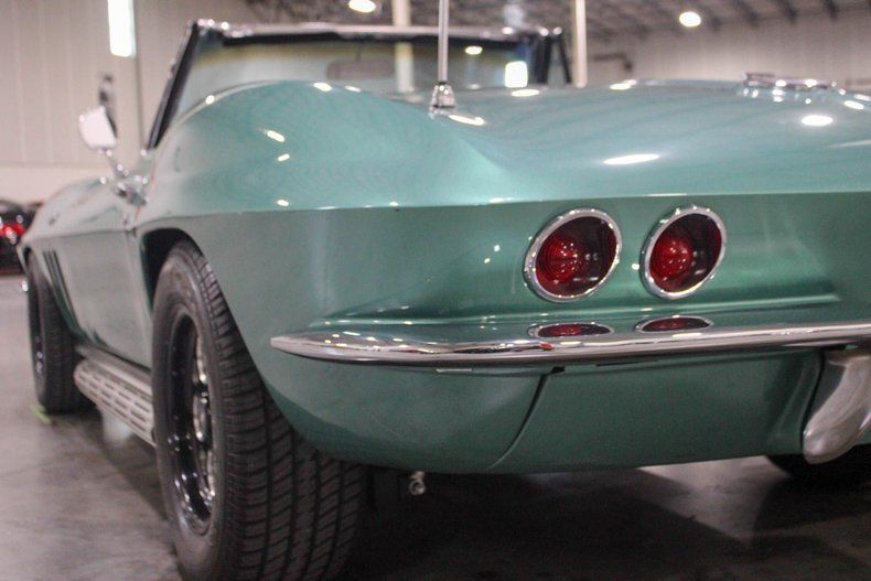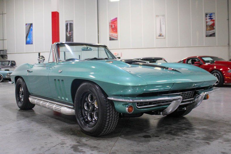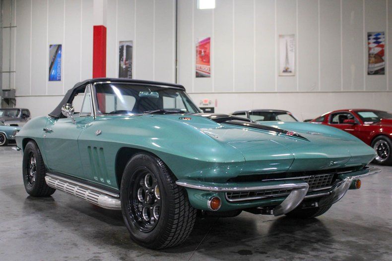 Turn heads wherever you go with this striking 1966 Chevrolet Corvette Convertible, a true Resto-Mod masterpiece. Draped in a bold metallic mint green finish with a contrasting black hood stripe, this Corvette blends classic 1960s styling with modern performance and precision. Every angle of this car exudes attitude, from the aggressive stance to the polished American Racing Vision 561 Sport Mag wheels wrapped in Cooper Cobra Radial GT tires.