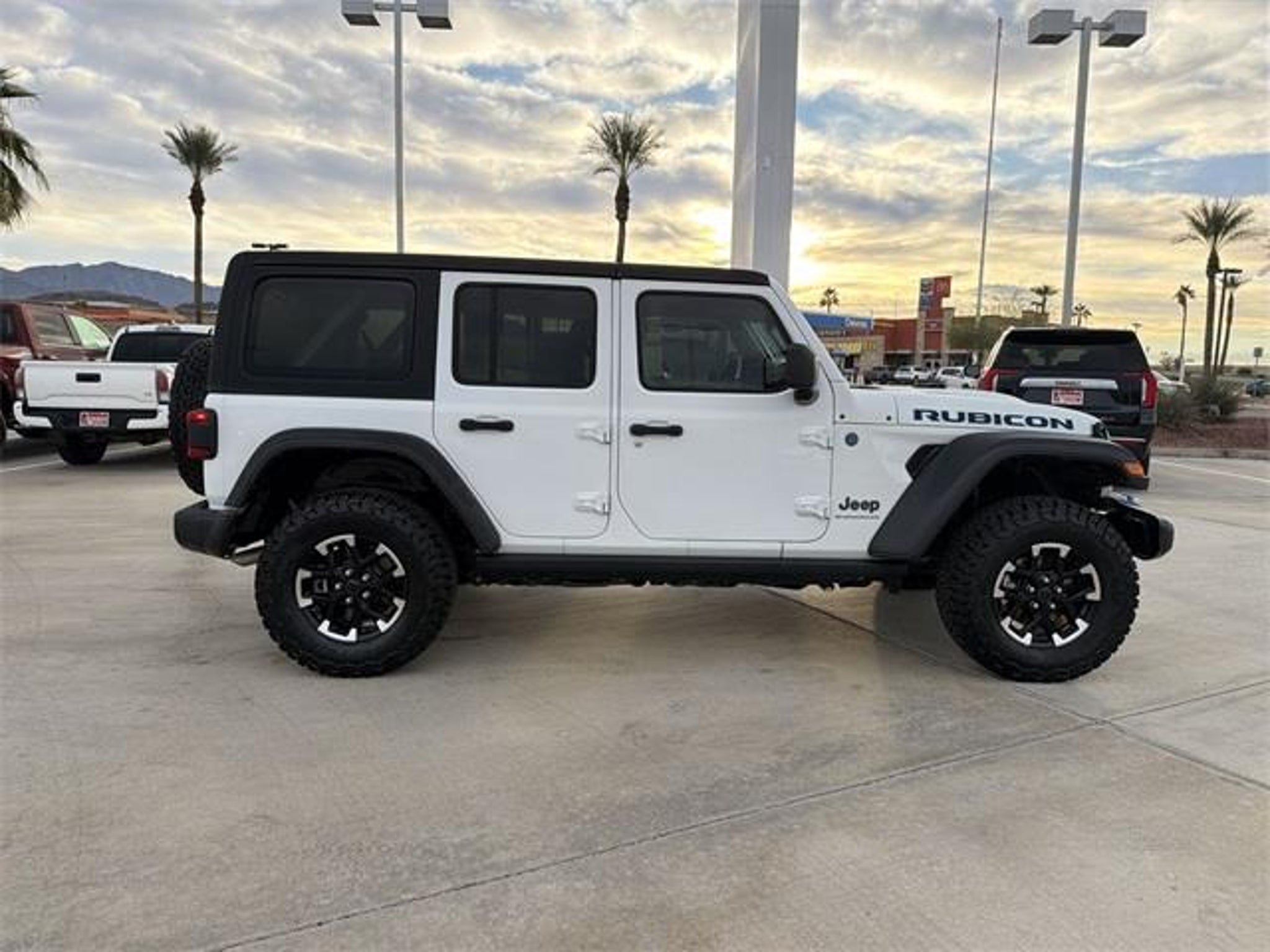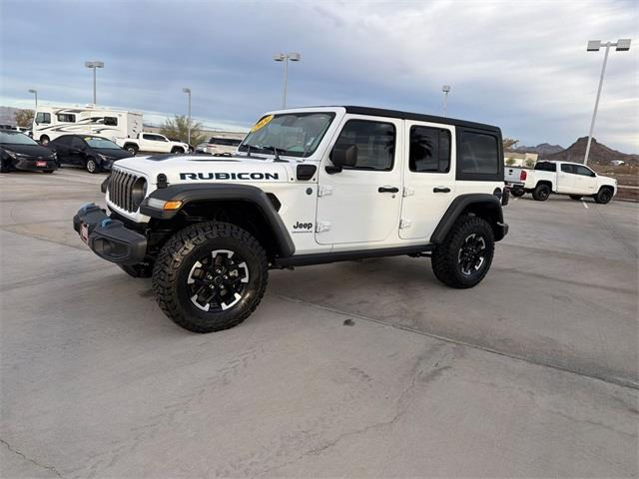 FRESH TRADE!! JUST ARRIVED!! RUBICON 4xe!! BRIGHT WHITE!! 4x4!! TURBO!! TRAIL READY!! HARD TOP!! 4G LTE Wi-Fi HOTSPOT!! UCONNECT 5!! APPLE CARPLAY!! ANDROID AUTO!! CLEAN CARFAX!! This 2024 Jeep Wrangler Rubicon 4xe brings forward the electrified capability that has reshaped the model's identity while preserving the rugged character that has defined the Wrangler lineage for decades. Its Bright White Clearcoat exterior creates a sharp contrast against the signature Rubicon accents, from the functional hood vents to the blue-tinted tow hooks and badging that distinguish the 4xe powertrain. The squared-off silhouette, high-clearance fenders, and aggressive stance clearly communicate purpose, while the plug-in hybrid configuration adds a modern layer of efficiency to its long-standing off-road heritage. Inside, the cabin features black premium cloth seats designed to balance durability with everyday comfort. The seating surfaces, dash layout, and switchgear maintain the Wrangler's purposeful design language, yet the environment feels more polished due to thoughtful textures and refined ergonomics. The elevated driving position, exposed fasteners, and open-air capability through the removable top and doors reinforce the experience long associated with the Wrangler, giving the driver both commanding visibility and a sense of connection to the surroundings. Its 2.0L turbocharged plug-in hybrid system provides immediate torque that pairs seamlessly with the Rubicon's specialized hardware, including locking differentials, an advanced 4WD system, and the dedicated off-road suspension engineered for challenging terrain. The electric assist enhances low-speed control during technical maneuvers, adding precision without compromising the authenticity of the Wrangler's trail performance. Combined with its ability to travel short distances on electric power alone, the 4xe demonstrates a thoughtful integration of power and efficiency. Technology aligns with the modernized powertrain through intuitive infotainment controls, clear digital displays, and driver-focused systems that support navigation, connectivity, and vehicle diagnostics. Safety and structural engineering further reinforce confidence during both daily driving and back-country exploration. Altogether, this 2024 Wrangler Rubicon 4xe creates a compelling balance of tradition and innovation, blending open-air adventure, electric capability, and unmistakable Jeep design in a well-executed configuration finished in a timeless Bright White aesthetic with a clean, purposeful interior. Visit Anderson Toyota today or give our friendly sales staff a call to schedule your test drive, . WHY BUY FROM ANDERSON: All Anderson pre-owned vehicles include a 3-month or 3,000 mile powertrain limited warranty and one-year/15,000 mile (whichever occurs first) vehicle maintenance plan when the vehicle is serviced at an Anderson Auto Group dealership. Out of town customers will be accommodated with free shuttle service from Las Vegas and Phoenix airports and if an overnight stay is needed, discounted nightly rates are available from local hotels. We welcome you to come in and enjoy a positive buying experience and look forward to you joining the Anderson family of customers. DISCLAIMER: Prices, options, specifications and images shown are subject to certain qualifications and availability. Pricing information is not final and may not include taxes, registration, finance and purchase fees. Please confirm vehicle availability and pricing information by calling us at or emailing our internet sales department at . Some exclusions apply, see store for details.