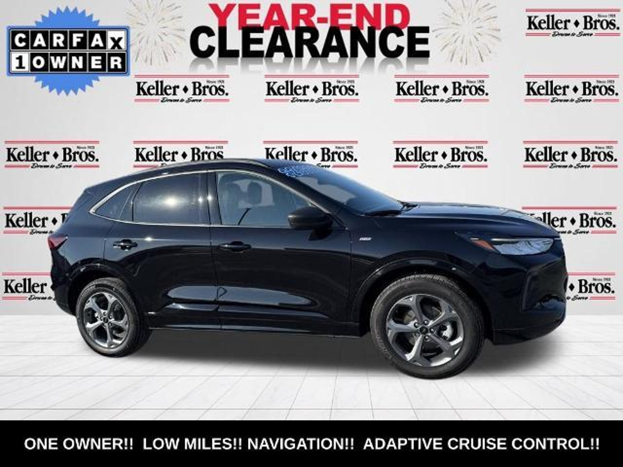 Discover the ultimate driving experience with the 2023 Ford Escape ST-Line. This exceptional SUV is more than just a mode of transportation - it's a testament to Ford's commitment to innovation and performance. ? ONE OWNER!! LOW MILES!! NAVIGATION!! ADAPTIVE CRUISE CONTROL!! ? SYNC 4 w/Enhanced Voice Recognition ? Rear-View Camera ? Ford Co-Pilot360 Assist ? Intelligent Adaptive Cruise Control w/Stop-and-Go ? Connected Built-In Navigation ? Rear Parking Sensor ? Speed Sign Recognition Equipped with a powerful 1.5L EcoBoost engine and an 8-speed automatic transmission, the Escape ST-Line delivers an exhilarating driving experience. With its sleek black exterior and all-wheel-drive capability, this SUV is ready to conquer any road, from the bustling city streets to the winding country roads. The interior of the Escape ST-Line is a true sanctuary, with premium features that elevate your driving experience. The SYNC 4 infotainment system with enhanced voice recognition and wireless connectivity keeps you connected and entertained, while the Ford Co-Pilot360 Assist suite of advanced driver-assistance technologies ensures your safety and peace of mind. Imagine the convenience of the Connected Built-In Navigation system, guiding you effortlessly to your destination, and the Intelligent Adaptive Cruise Control with Stop-and-Go, which adapts to the flow of traffic, reducing fatigue on long drives. The Rear Parking Sensor and Speed Sign Recognition further enhance your driving confidence, making every journey a pleasure. With an impressive fuel economy of 26 city and 32 highway MPG, the Escape ST-Line strikes the perfect balance between performance and efficiency. Whether you're navigating the daily commute or embarking on a weekend adventure, this SUV is ready to exceed your expectations. Come see why Keller Bros has been in business since 1921. All of our vehicles have been fully serviced, through a complete interior and exterior detail and are priced competitively. If you are coming from a distance or are local but having a hard time fitting a visit into your schedule, contact us for additional photos or a personal video walk around. Don't delay our vehicles sell quickly!