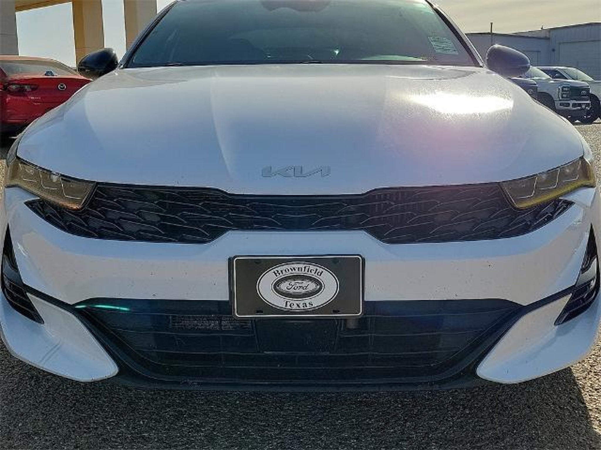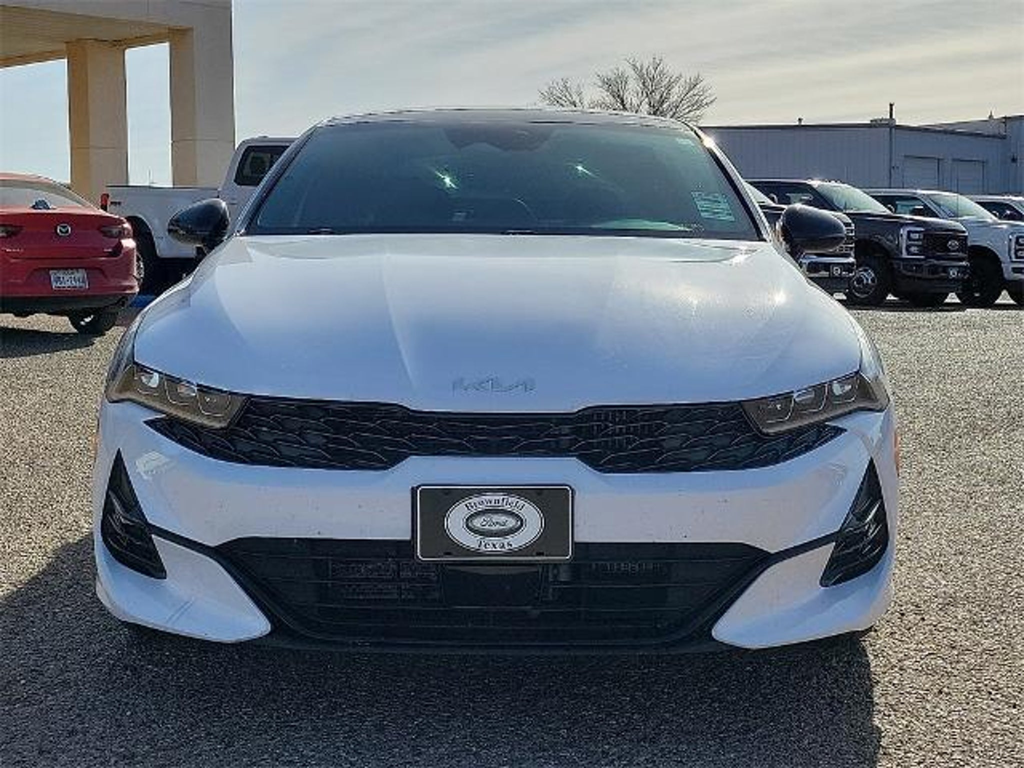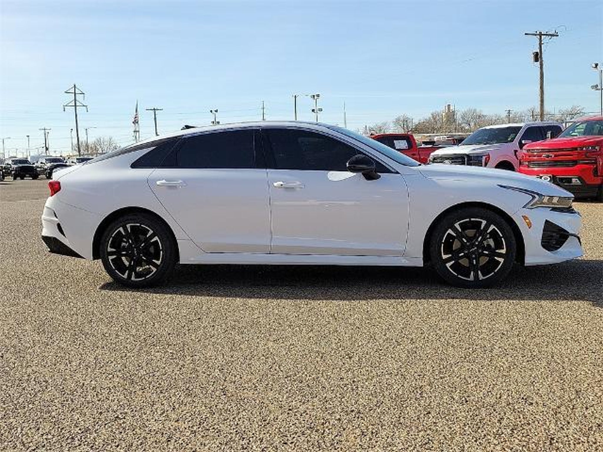 This 2024 Kia K5 GT-Line 1.6L I4 DGI Turbocharged DOHC 16V LEV3-ULEV70 180hp 8-Speed Automatic FWD in Glacial White Pearl comes with the following features: GT-Line Panoramic Sunroof Package (Gloss Black Trim, LED Interior Lighting, and Panoramic Sunroof), GT-Line Premium Package (Forward Collision Avoidance-Assist, Highway Driving Assist, LED Projection Headlamps, and Smart Cruise Control w/Stop & Go), GT-Line Red Interior Package, 4-Wheel Disc Brakes, 6 Speakers, ABS brakes, Air Conditioning, Alloy wheels, AM/FM radio: SiriusXM, Apple CarPlay & Android Auto, Auto High-beam Headlights, Automatic temperature control, Brake assist, Bumpers: body-color, Carpeted Floor Mats, Cloth/SynTex Seat Trim, Delay-off headlights, Driver door bin, Driver vanity mirror, Dual front impact airbags, Dual front side impact airbags, EC Mirror w/Homelink, Electronic Stability Control, Four wheel independent suspension, Front anti-roll bar, Front Bucket Seats, Front Center Armrest, Front dual zone A/C, Front fog lights, Front reading lights, Fully automatic headlights, Heated door mirrors, Heated Front Bucket Seats, Heated front seats, Illuminated entry, Knee airbag, Leather steering wheel, LED Trunk Light, Low tire pressure warning, Navigation System, Occupant sensing airbag, Outside temperature display, Overhead airbag, Overhead console, Panic alarm, Passenger door bin, Passenger vanity mirror, Power door mirrors, Power driver seat, Power steering, Power windows, Radio data system, Radio: AM/FM/MP3 Audio System, Rear anti-roll bar, Rear Bumper Applique, Rear seat center armrest, Rear side impact airbag, Rear window defroster, Remote keyless entry, Security system, Speed control, Speed-sensing steering, Split folding rear seat, Spoiler, Sport steering wheel, Steering wheel mounted audio controls, Tachometer, Telescoping steering wheel, Tilt steering wheel, Traction control, Trip computer, Turn signal indicator mirrors, Variably intermittent wipers, and Wheels: 18 Gloss Black Machined Finish Alloy. Odometer is 7667 miles below market average! 27/37 City/Highway MPG