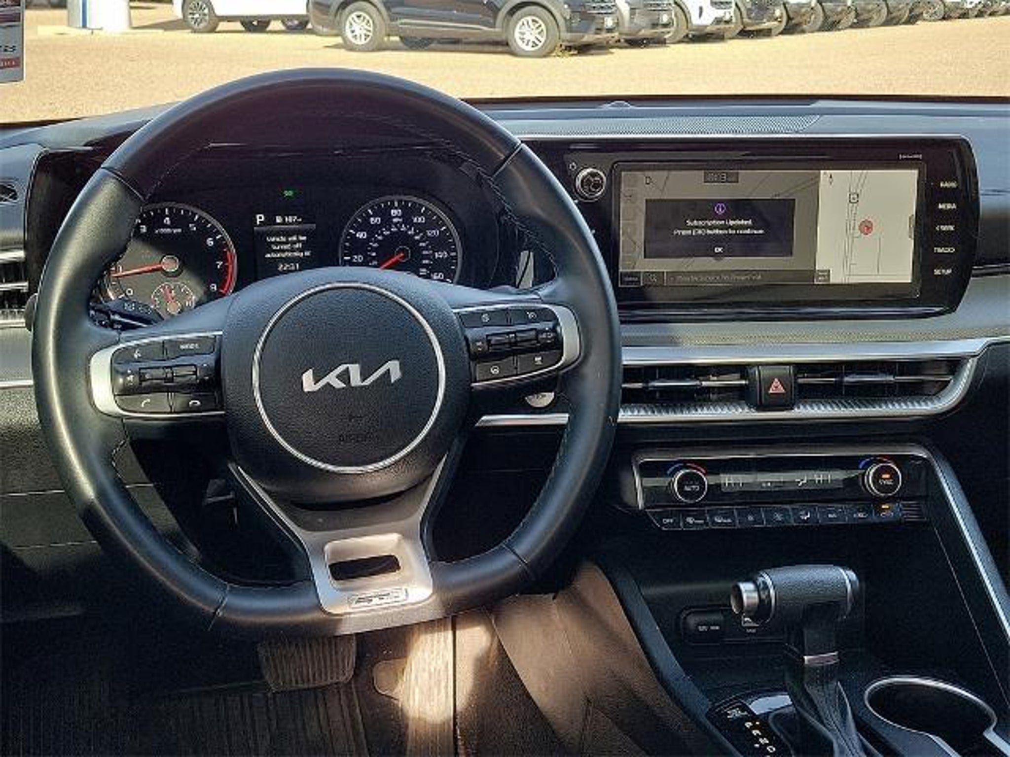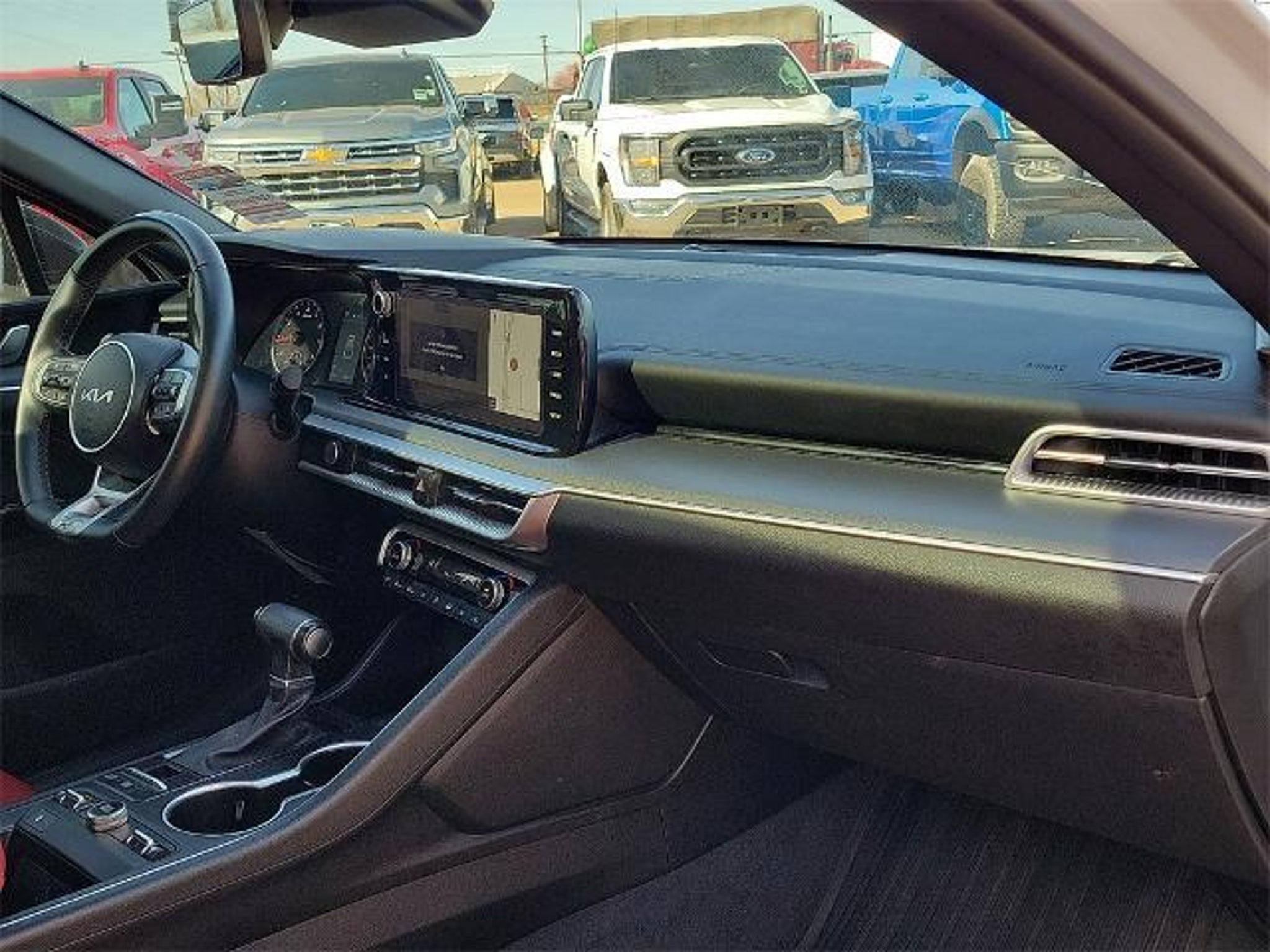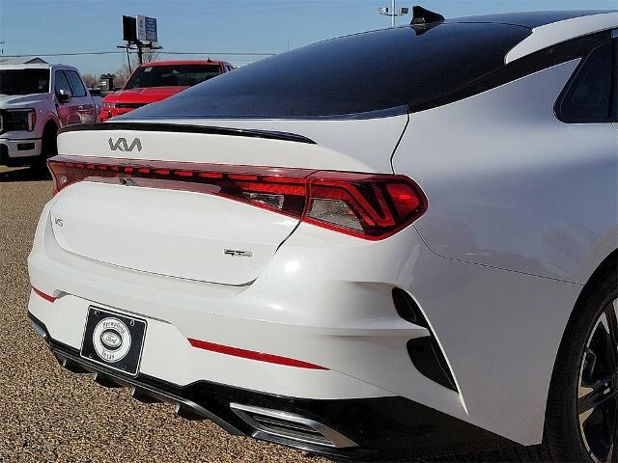 This 2024 Kia K5 GT-Line 1.6L I4 DGI Turbocharged DOHC 16V LEV3-ULEV70 180hp 8-Speed Automatic FWD in Glacial White Pearl comes with the following features: GT-Line Panoramic Sunroof Package (Gloss Black Trim, LED Interior Lighting, and Panoramic Sunroof), GT-Line Premium Package (Forward Collision Avoidance-Assist, Highway Driving Assist, LED Projection Headlamps, and Smart Cruise Control w/Stop & Go), GT-Line Red Interior Package, 4-Wheel Disc Brakes, 6 Speakers, ABS brakes, Air Conditioning, Alloy wheels, AM/FM radio: SiriusXM, Apple CarPlay & Android Auto, Auto High-beam Headlights, Automatic temperature control, Brake assist, Bumpers: body-color, Carpeted Floor Mats, Cloth/SynTex Seat Trim, Delay-off headlights, Driver door bin, Driver vanity mirror, Dual front impact airbags, Dual front side impact airbags, EC Mirror w/Homelink, Electronic Stability Control, Four wheel independent suspension, Front anti-roll bar, Front Bucket Seats, Front Center Armrest, Front dual zone A/C, Front fog lights, Front reading lights, Fully automatic headlights, Heated door mirrors, Heated Front Bucket Seats, Heated front seats, Illuminated entry, Knee airbag, Leather steering wheel, LED Trunk Light, Low tire pressure warning, Navigation System, Occupant sensing airbag, Outside temperature display, Overhead airbag, Overhead console, Panic alarm, Passenger door bin, Passenger vanity mirror, Power door mirrors, Power driver seat, Power steering, Power windows, Radio data system, Radio: AM/FM/MP3 Audio System, Rear anti-roll bar, Rear Bumper Applique, Rear seat center armrest, Rear side impact airbag, Rear window defroster, Remote keyless entry, Security system, Speed control, Speed-sensing steering, Split folding rear seat, Spoiler, Sport steering wheel, Steering wheel mounted audio controls, Tachometer, Telescoping steering wheel, Tilt steering wheel, Traction control, Trip computer, Turn signal indicator mirrors, Variably intermittent wipers, and Wheels: 18 Gloss Black Machined Finish Alloy. Odometer is 7667 miles below market average! 27/37 City/Highway MPG