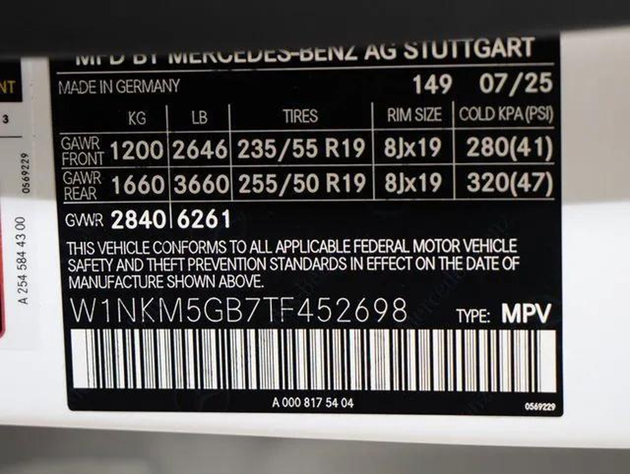 VIN W1NKM5GB7TF452698