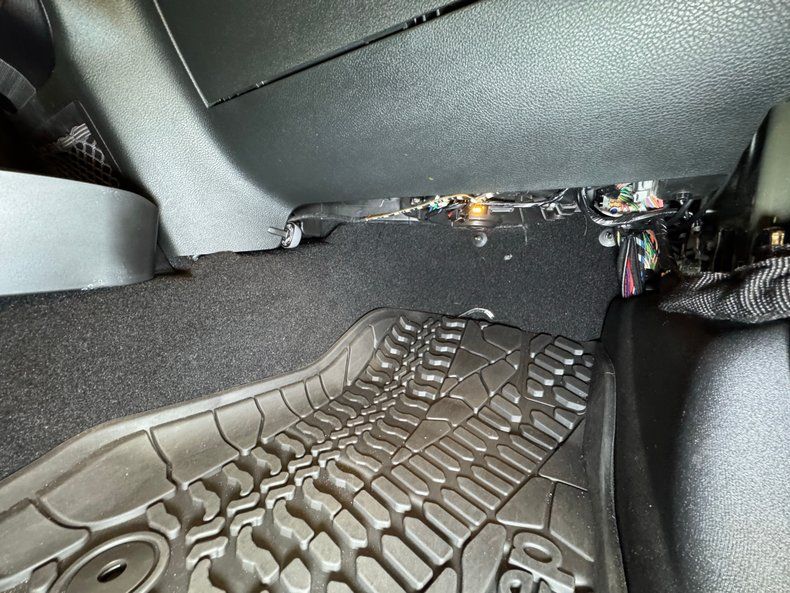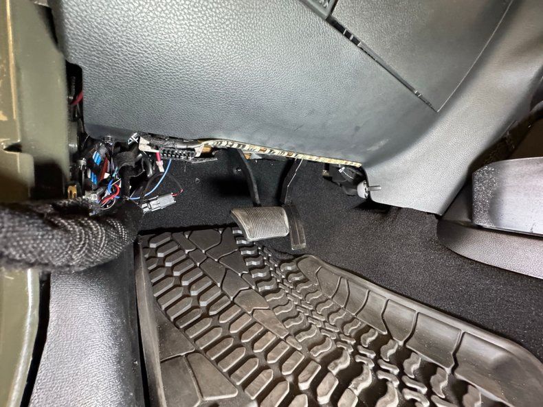 With respect to the many flags adorning the Jeep, we briefly remove our hat before entering this show rig, then a side step drop to help you up to the cabin. The V6 cranks to life eagerly and the supercharger provides a sweet whine on its way around the loop, providing a booster bit of power to move this wide load, and does so without fail. There are lots of bells and whistles here in addition to the standard features, and they all operate as intended although the accessory lighting did not illuminate when prompted. While Classic Auto Mall represents that these functions were working at the time of our test drive, we cannot guarantee these functions will be working at the time of your purchase.