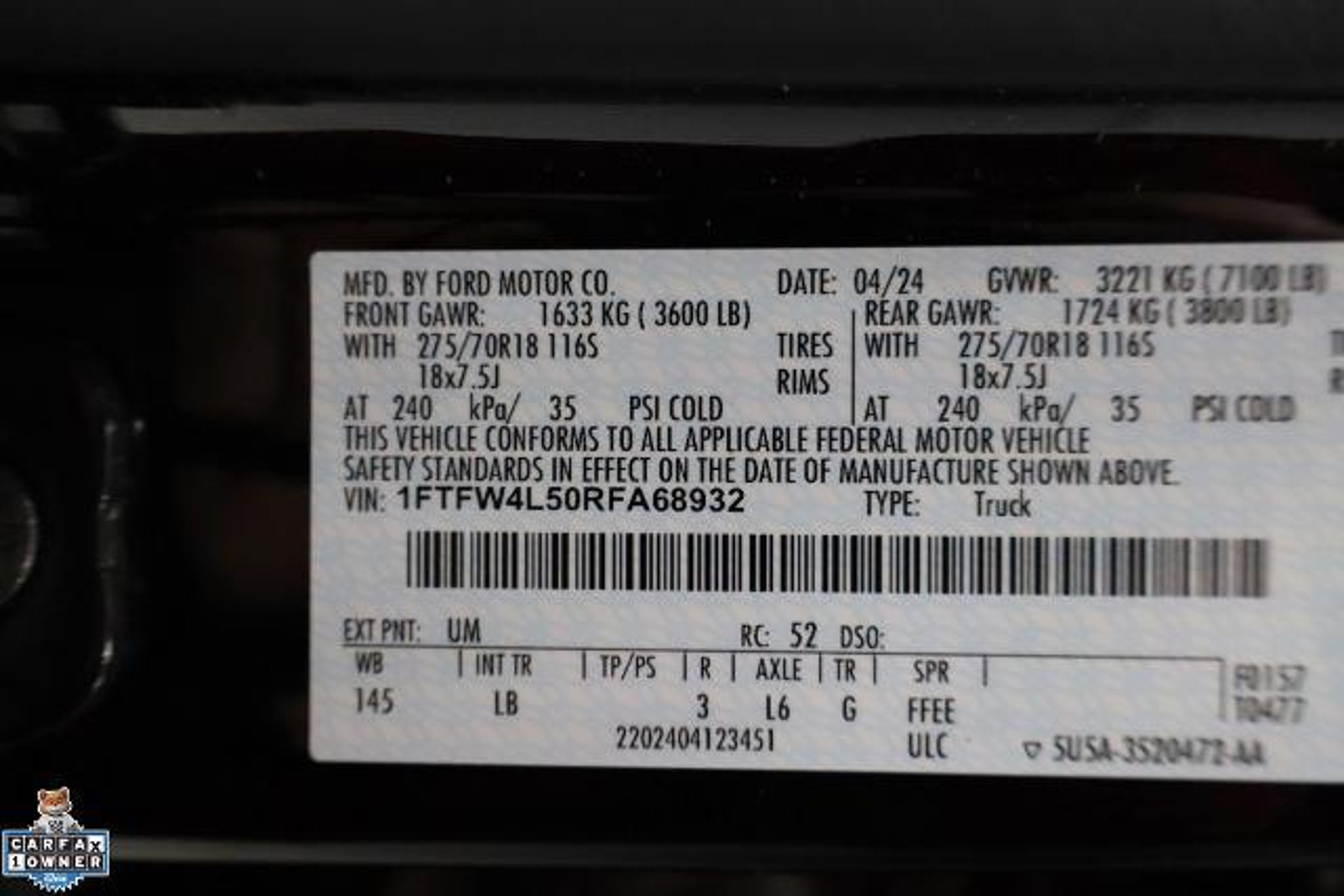 Certified. CARFAX One-Owner. Clean CARFAX. 2024 Ford F-150 4D SuperCrew Tremor Agate Black Metallic 4WD 5.0L V8 10-Speed Automatic 5 Stars Safety Rating, Made in the USA, 4WD, Electronic Locking w/3.73 Axle Ratio, Equipment Group 401A Standard, GVWR: 7,100 lbs Payload Package. Equipment Group 401A Standard, GVWR: 7,100 lbs Payload Package, Ford Blue Certified Certified, 4WD, Electronic Locking w/3.73 Axle Ratio, 4-Wheel Disc Brakes, 8 Speakers, ABS brakes, Adjustable pedals, Air Conditioning, Alloy wheels, AM/FM radio: SiriusXM with 360L, Auto High-beam Headlights, Auto-dimming door mirrors, Auto-dimming Rear-View mirror, Automatic temperature control, Brake assist, Bumpers: body-color, Compass, Delay-off headlights, Driver door bin, Driver vanity mirror, Dual fro'nt side impact airbags, Dual front impact airbags, Electronic Stability Control, Emergency communication system: SYNC 4 911 Assist, Front anti-roll bar, Front Bucket Seats, Front Center Armrest, Front dual zone A/C, Front fog lights, Front reading lights, Front wheel independent suspension, Fully automatic headlights, Heated door mirrors, Heated front seats, Illuminated entry, Low tire pressure warning, Navigation system: Connected Navigation, Occupant sensing airbag, Outside temperature display, Overhead airbag, Overhead console, Panic alarm, Passenger door bin, Passenger vanity mirror, Power door mirrors, Power driver seat, Power passenger seat, Power steering, Power windows, Radio data system, Radio: B&O Sound System by Bang & Olufsen, Rear reading lights, Rear step bumper, Rear window defroster, Remote keyless entry, Security system, Speed control, Steering wheel mounted audio controls, SYNC 4 w/Enhanced Voice Recognition, Tachometer, Telescoping steering wheel, Telescoping steering wheel, Tilt steering wheel, Traction control, Trip computer, Turn signal indicator mirrors, Unique Sport Cloth 40/Console/40 Power Front Seat, Variably intermittent wipers, Voltmeter, and Wheels: 18 Alloy w/Dark Matte Finish. Ford cars and trucks cost less in McKinney. Take that short drive up 75 to Bob Tomes Ford. Thank you for making your way to Bob Tomes Ford, your certified Ford dealer serving drivers throughout McKinney, Prosper, Frisco, Plano, Anna, Garland, Melissa, Fairview, Van Alstyne, Sherman, Celina, Denton, Lucas, Dennison, Bonham, Dallas, Blue Ridge, Richardson, Howe, Princeton, Gunter, Farmersville, Trenton, Murphy, Sachse, Wylie, Parker, Lavon and the surrounding areas. At our dealership, youâll find a solid selection of new Fords for sale, as