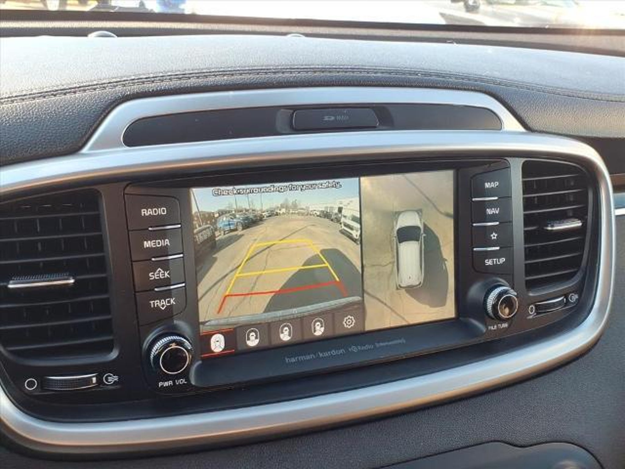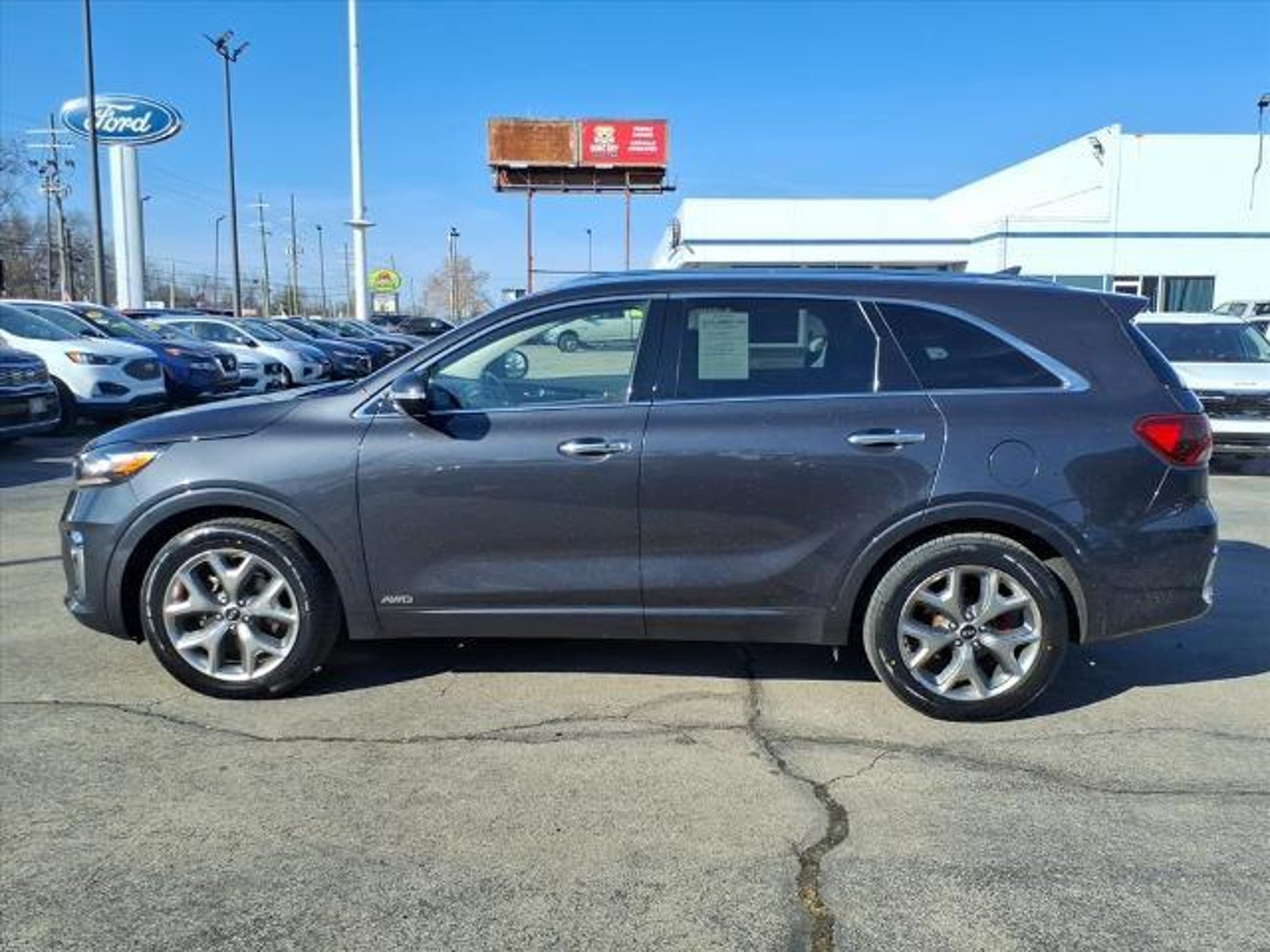 This 2019 Kia Sorento SX V6 is a reliable and efficient motorcar that has been driven 89,254 miles. It is equipped with an all wheel drive system, 3.3 liter 6 cylinder engine, and fuel injected engine, making it an efficient and powerful motorcar. The exterior of the car is gray and it has a crash test rating of 5 out of 5 stars. The interior of the car is luxurious and comfortable with black leather-trimmed seats and features such as touch screen display, Bluetooth audio connection, blind spot sensor, hill start assist, full time four wheel drive, Apple Carplay ready, navigation system with voice recognition, and navigation with touch screen display. This car has a full carfax report available for inspection. With its fuel economy in city 19 mpg and fuel economy on highway 24 mpg, this car is sure to be a great investment for anyone looking for a reliable and efficient motorcar. Contact Details: Town and Country Ford - Louisville, 6015 Preston Hwy, Louisville, KY, 40219, tbradley@tacford.com, (502) 964-8131.