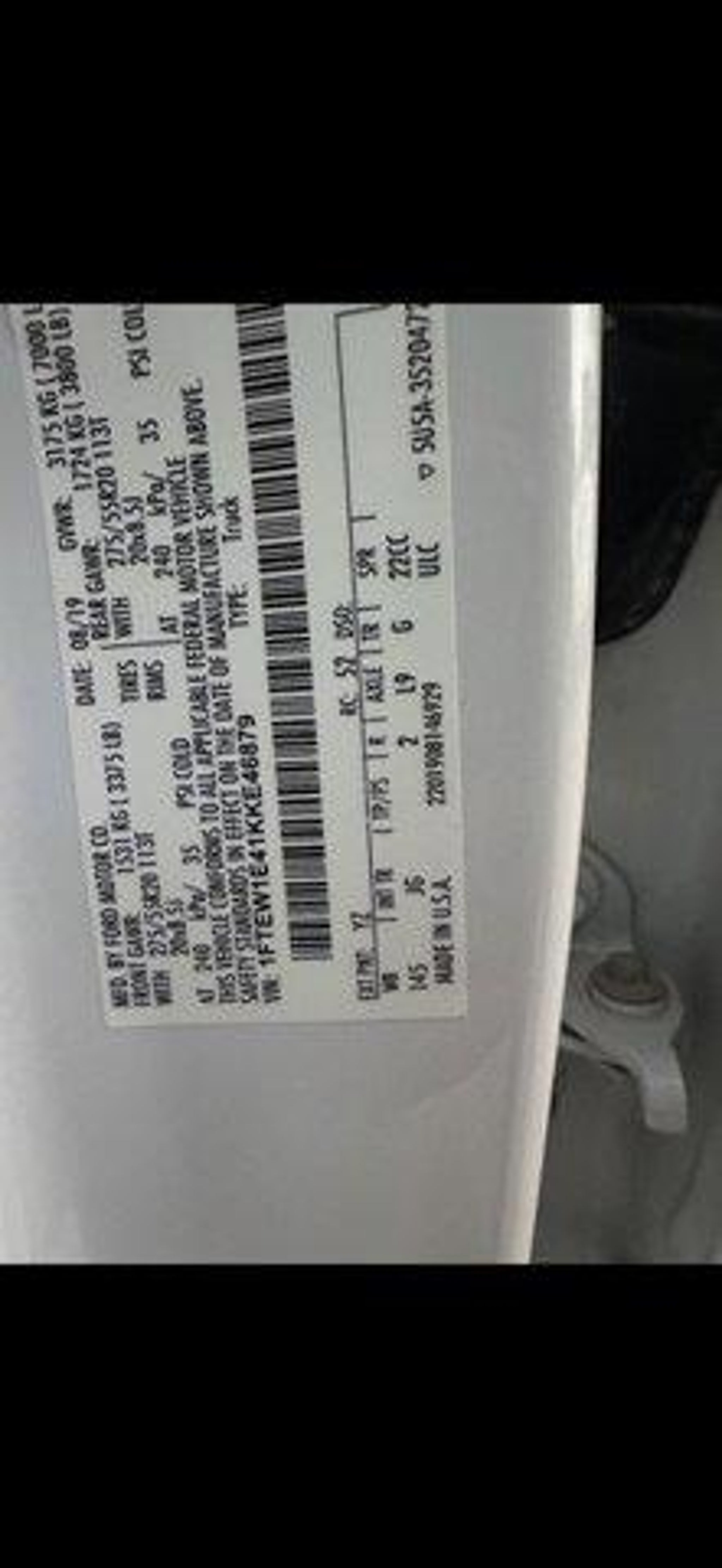 Certified. CARFAX One-Owner. Clean CARFAX. Ford Blue Certified Details: * Transferable Warranty * Vehicle History * Warranty Deductible: $100 * 139 Point Inspection * and 11000 FordPass Rewards Points to use toward first maintenance visit * Limited Warranty: 3 Month/4000 Mile (whichever comes first) after new car warranty expires or from certified purchase date * Roadside Assistance CALL TO SCHEDULE YOUR TEST DRIVE TODAY! This 2019 Ford F-150 XL in Oxford White comes with the following features: 3.5L V6 EcoBoost 10-Speed Automatic 4WD Equipment Group 101A Mid (4.2 Productivity Screen in Instrument Cluster Cruise Control and SYNC) FX4 Off-Road Package (4x4 FX4 Off-Road Bodyside Decal Hill Descent Control and Off-Road Tuned Front Shock Absorbers) STX Appearance Package (20 Machined-Aluminum Wheels Body-Color Front & Rear Bumpers Body-Color Surround w/Black Mesh Insert Grille Box Side Decals Driver/Passenger Seat Back Pocket Fog Lamps Manual Driver/Passenger Lumbar Rear Window Defroster Rear Window Fixed Privacy Glass SYNC 3 and Unique Sport Cloth 40/20/40 Front-Seats) Trailer Tow Package XL Power Equipment Group (Illuminated Entry MyKey Perimeter Alarm Power Door Locks Power Front & Rear Windows Power Glass Sideview Mirrors w/Black Skull Caps and Power Tailgate Lock) XL Sport Appearance Package (Wheels: 17 Silver Painted Aluminum) 4-Wheel Disc Brakes 6 Speakers ABS brakes Air Conditioning AM/FM radio Auto High-beam Headlights Brake assist Cloth 40/20/40 Front Seat Color-Coordinated Carpet w/Carpeted Floor Mats Compass Delay-off headlights Driver door bin Dual front impact airbags Dual front side impact airbags Electronic Stability Control Exterior Parking Camera Rear Front anti-roll bar Front Center Armrest Front License Plate Bracket Front wheel independent suspension Fully automatic headlights Low tire pressure warning Occupant sensing airbag Outside temperature display Overhead airbag Passenger door bin Passenger vanity mirror Power steering Pro Trailer Backup Assist Radio: AM/FM Stereo w/6 Speakers Rear step bumper Reverse Sensing System SiriusXM Radio Speed-sensing steering Split folding rear seat Tachometer Telescoping steering wheel Tilt steering wheel Traction control Tray Style Floor Liner Variably intermittent wipers Voltmeter and Wheels: 17 Silver Steel.