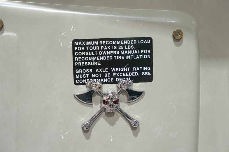 Finished in a striking red metallic paint with custom painted layers over top as well as chrome accents including the forks, wheels, headlight guards (with custom Harley badging), rider floorboards, engine covers/casing, mirrors, front fender, and engine guard, this Electric Glide is hard to miss.