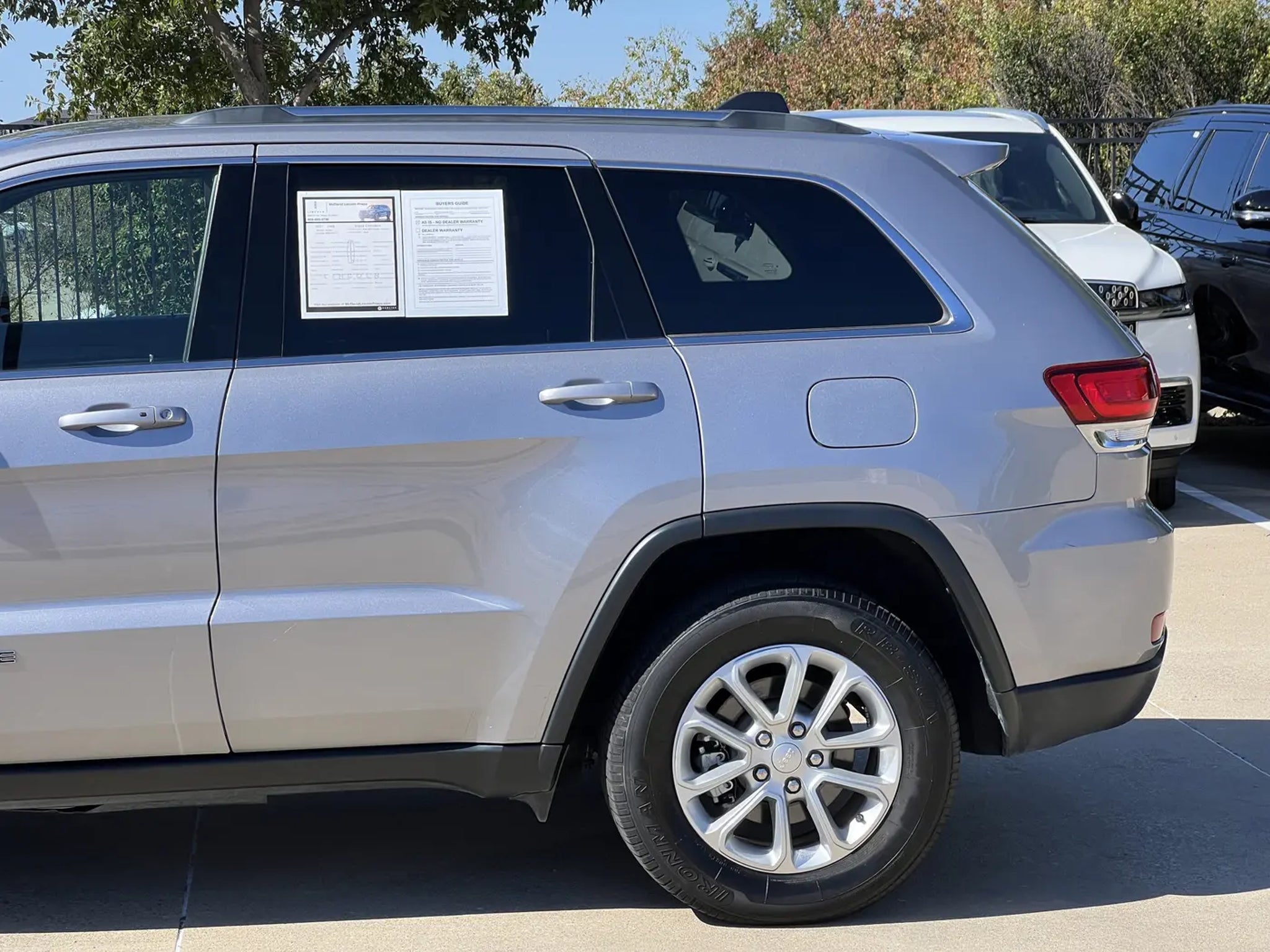 RECALL NOTICE: Some vehicles offered for sale may be subject to unrepaired manufacturer safety recalls. To determine the recall status of a vehicle, visit https://www.nhtsa.gov/recalls.Billet Silver Metallic Clearcoat 2021 Jeep Grand Cherokee Laredo E RWD 8-Speed Automatic 3.6L V6 24V VVT Grand Cherokee Laredo E, 4D Sport Utility, 3.6L V6 24V VVT, 8-Speed Automatic, RWD, Billet Silver Metallic Clearcoat, Black Cloth, 3.27 Rear Axle Ratio, 4-Wheel Disc Brakes, 6 Speakers, ABS brakes, Air Conditioning, Alloy wheels, AM/FM radio: SiriusXM, Anti-whiplash front head restraints, Apple CarPlay, Apple CarPlay/Android Auto, Automatic temperature control, Brake assist, Bumpers: body-color, Cloth Bucket Seats, Compass, Delay-off headlights, Driver door bin, Driver vanity mirror, Dual front impact airbags, Dual front side impact airbags, Eco Suspension I, Electronic Stability Control, Four wheel independent suspension, Front anti-roll bar, Front Bucket Seats, Front Center Armrest w/Storage, Front dual zone A/C, Front fog lights, Front reading lights, Fully automatic headlights, Google Android Auto, GPS Antenna Input, Heated door mirrors, Illuminated entry, Integrated Voice Command w/Bluetooth, Knee airbag, Leather Shift Knob, Low tire pressure warning, Occupant sensing airbag, Outside temperature display, Overhead airbag, Overhead console, Panic alarm, ParkView Rear Back-Up Camera, Passenger door bin, Passenger vanity mirror, Power door mirrors, Power driver seat, Power steering, Power windows, Quick Order Package 2BE Laredo E, Radio data system, Radio: Uconnect 4 w/7 Display, Rear anti-roll bar, Rear reading lights, Rear seat center armrest, Rear window defroster, Rear window wiper, Remote keyless entry, Roof rack: rails only, Speed control, Speed-sensing steering, Speed-Sensitive Wipers, Split folding rear seat, Spoiler, Steering Wheel Mounted Audio Controls, Steering wheel mounted audio controls, Tachometer, Telescoping steering wheel, Tilt steering wheel, Traction control, Trip computer, Variably intermittent wipers, Wheels: 18 x 8.0 Fine Silver Aluminum.Odometer is 8787 miles below market average! 19/26 City/Highway MPG