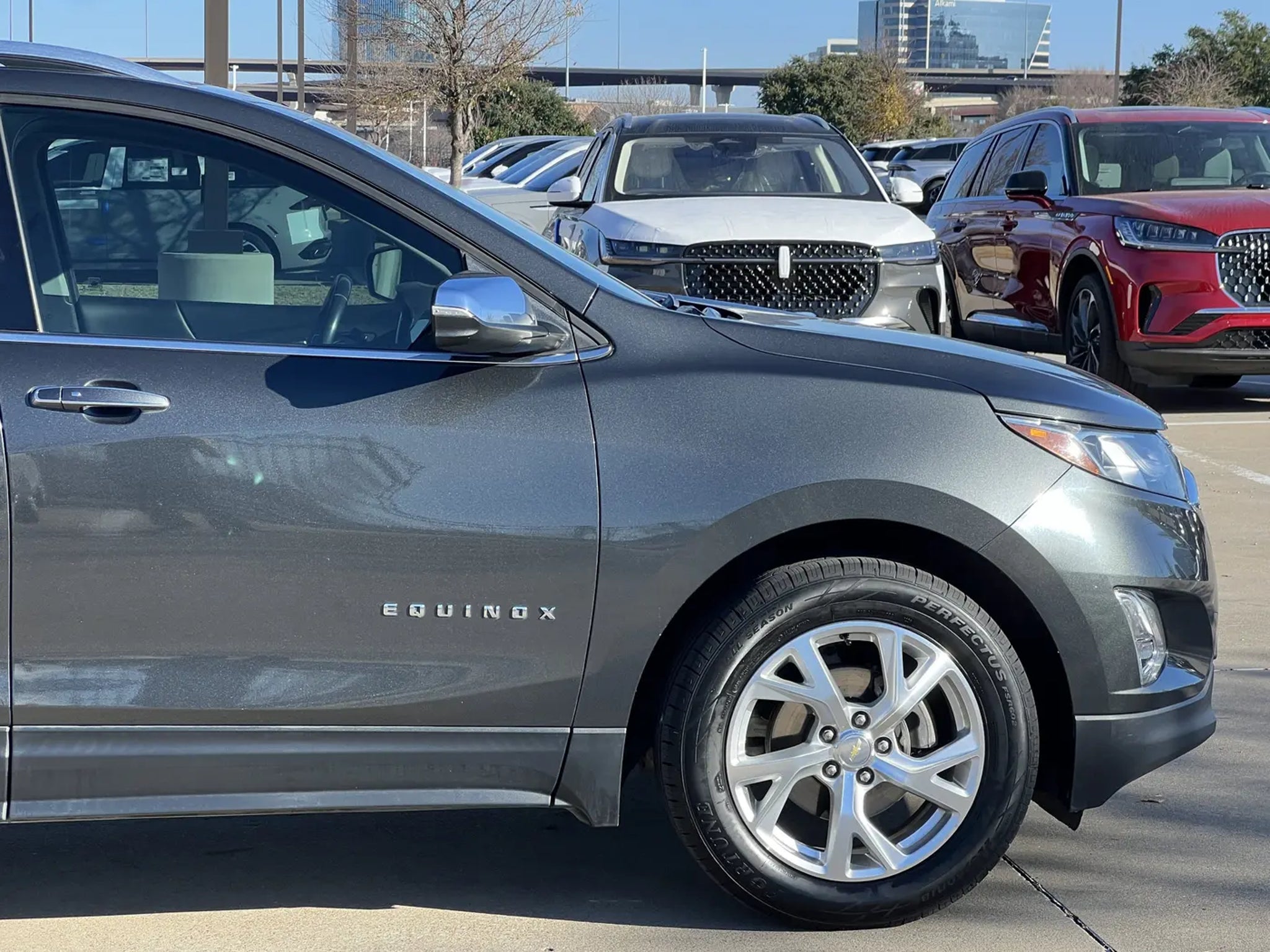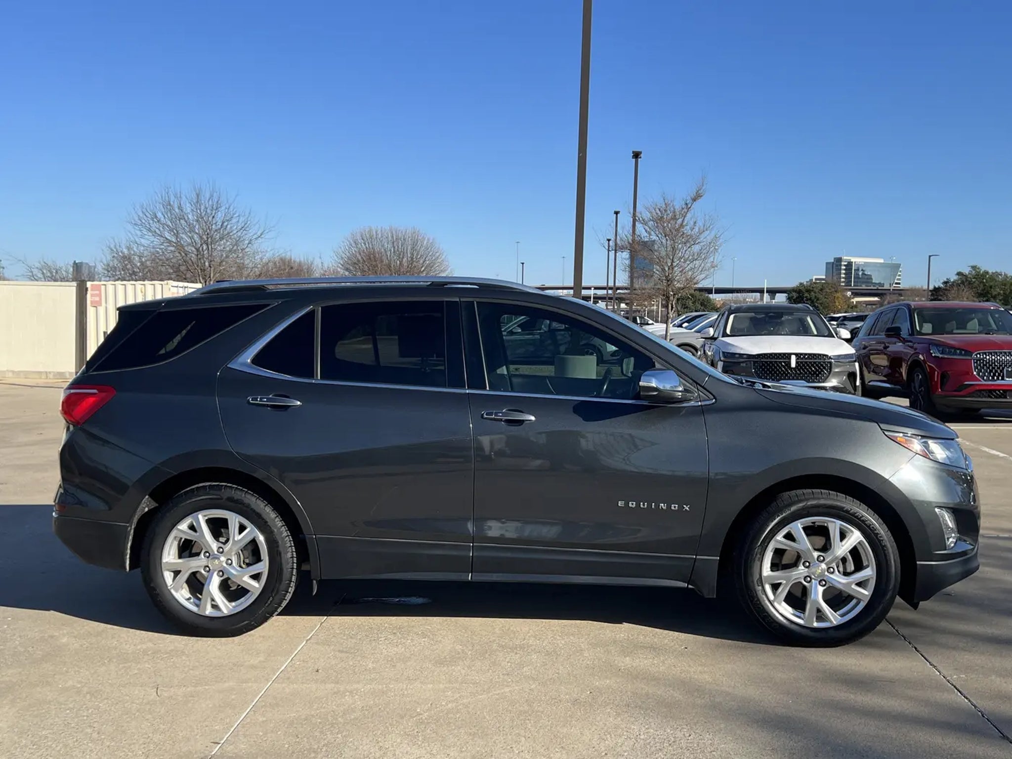 RECALL NOTICE: Some vehicles offered for sale may be subject to unrepaired manufacturer safety recalls. To determine the recall status of a vehicle, visit https://www.nhtsa.gov/recalls.CARFAX One-Owner. Clean CARFAX. Nightfall Gray Metallic 2018 Chevrolet Equinox Premier FWD 6-Speed Automatic Electronic with Overdrive 1.5L DOHC Equinox Premier, 4D Sport Utility, 1.5L DOHC, 6-Speed Automatic Electronic with Overdrive, FWD, Nightfall Gray Metallic, Jet Black Leather, 18 Aluminum Wheels, 2 Rear USB Charging-Only Ports, 2 USB Data Ports, 2 USB Ports & Auxiliary Input Jack, 3.50 Final Drive Axle Ratio, 4-Wheel Disc Brakes, 6 Speaker Audio System Feature, 6 Speakers, 8-Way Power Driver Seat Adjuster, ABS brakes, Air Conditioning, Alloy wheels, AM/FM radio: SiriusXM, Apple CarPlay/Android Auto, Auto-dimming door mirrors, Auto-dimming Rear-View mirror, Automatic temperature control, Bluetooth? For Phone, Brake assist, Bumpers: body-color, Compass, Delay-off headlights, Driver door bin, Driver vanity mirror, Dual front impact airbags, Dual front side impact airbags, Electronic Stability Control, Emergency communication system: OnStar and Chevrolet connected services capable, Exterior Parking Camera Rear, Four wheel independent suspension, Front anti-roll bar, Front Bucket Seats, Front Center Armrest, Front dual zone A/C, Front fog lights, Front Passenger 4-Way Manual Seat Adjuster, Front reading lights, Fully automatic headlights, Garage door transmitter, Heated door mirrors, Heated Driver & Front Passenger Seats, Heated front seats, Illuminated entry, Leather Shift Knob, Low tire pressure warning, Memory seat, Occupant sensing airbag, Outside temperature display, Overhead airbag, Overhead console, Panic alarm, Passenger door bin, Passenger vanity mirror, Perforated Leather-Appointed Seat Trim, Power door mirrors, Power driver seat, Power Liftgate, Power steering, Power windows, Preferred Equipment Group 1LZ, Premium audio system: Chevrolet MyLink, Radio data system, Radio: 8 Chevrolet MyLink AM/FM Stereo, Rear anti-roll bar, Rear reading lights, Rear seat center armrest, Rear window defroster, Rear window wiper, Remote keyless entry, Roof rack: rails only, Security system, SiriusXM Satellite Radio, Speed control, Speed-sensing steering, Split folding rear seat, Spoiler, Steering wheel mounted audio controls, Tachometer, Telescoping steering wheel, Tilt steering wheel, Traction control, Trip computer, Turn signal indicator mirrors, Variably intermittent wipers.Odometer is 4505 miles below market average! 26/32 Ci
