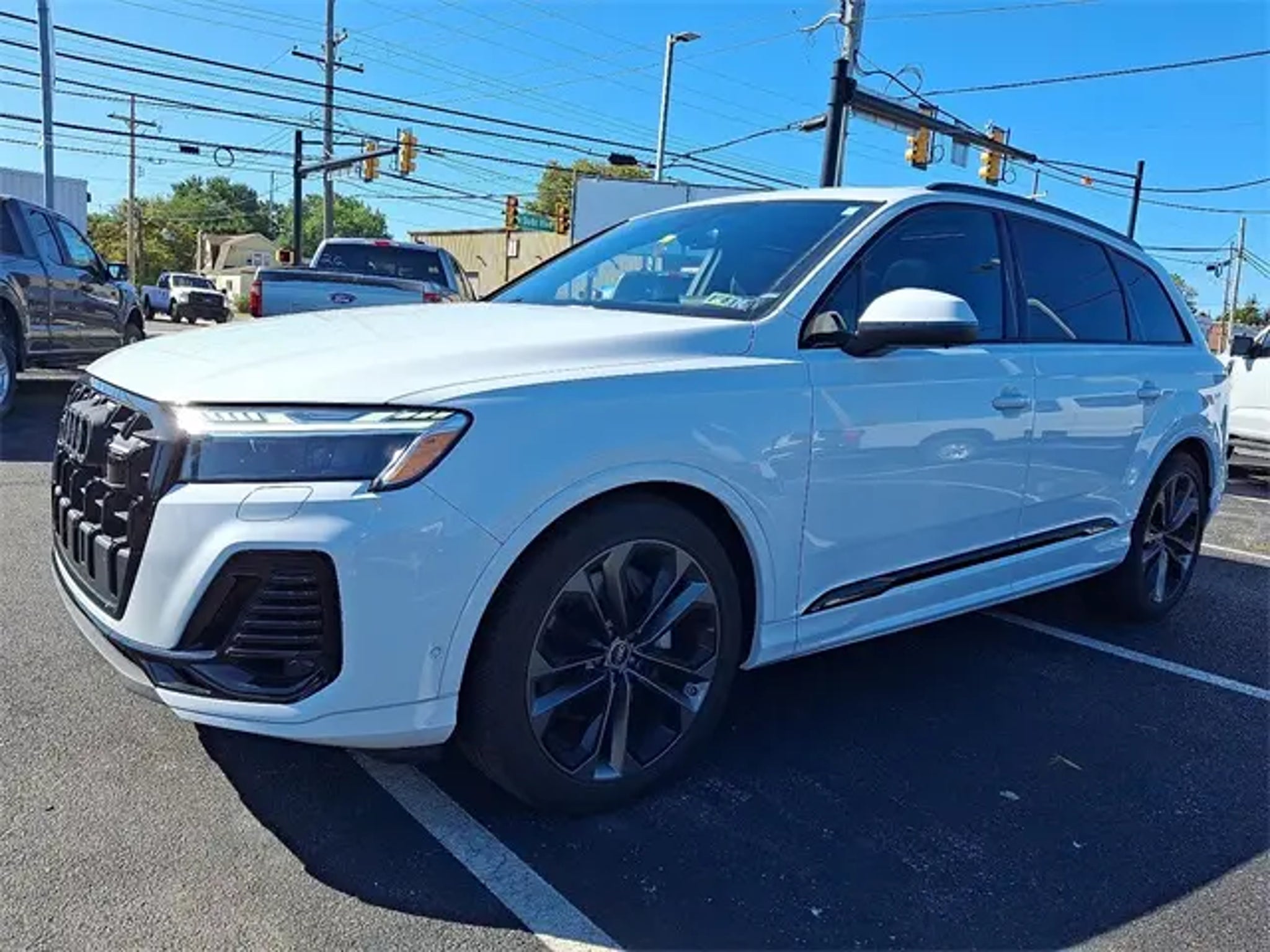 Certified. Glacier White Metallic 2025 Audi Q7 55 Prestige quattro quattro 8-Speed Automatic with Tiptronic 3.0L TFSI Oil Change, Vehicle Detailed, Dealer Inspected, PA State Inspection and Emissions, Clean CarFax, One Owner, 7-Pin Adapter, Animation for Headlights & Taillights, Anthracite Gray Audi Rings, Audi Beam Rings, Audi Guard All-Weather Mats, Bang & Olufsen Premium Sound System w/3D Sound, Black Door Blades, Black Exterior Trim, Black Grille, Black Optic Package, Black Roof Rails, Black Window Surrounds, Comfort Adaptive Air Suspension, Control Buttons in Gloss Black w/Haptic Feedback, Convenience Package, Dark Chrome Exhaust Tips, Dual-Pane Acoustic Glass for Side Windows, Executive Plus Package, Four-Zone Automatic Climate Control, Front Passenger Memory Seat Function, Front Seats w/Ventilation, HD Matrix-Design LED Headlights w/Audi Laser Light, Head-Up Display, Headlight Washer System, Heated Rear Seats, Heated Steering Wheel, Illuminated Door Sills, Individual Contour Front Seats, Intersection Assist, LED Interior Lighting Package Plus, Massage Function for Front Seats, Navigation system: Audi MMI Navigation plus with Touch Response, Power moonroof: Panoramic, Power Soft-Closing Doors, Prestige Package, Rear Door/Side Windows & Tailgate Sunshades, Remote Park Assist Plus, Top View Camera System, Traffic Sign Recognition, Trailer Hitch, Valcona/Cricket Leather Seat Trim, Wheels: 21 5-Double-Spoke-Design Matte Gray, Wireless Phone Charging Pad. Thank you for shopping Robin Ford. Delco's Truck & SUV Headquarters Since 1963. Visit us 24/7 at or call us at . Recent Arrival! Certification Program Details: Ford Blue Advantage: Blue Certified * 139 Point Inspection * Transferable Warranty * Vehicle History * Warranty Deductible: $100 * Roadside Assistance * Limited Warranty: 3 Month/4,000 Mile (whichever comes first) after new car warranty expires or from certified purchase date * and 11,000 FordPass Rewards Points to use toward first maintenance visit Serving the Philadelphia area since 1963, our teams are trained to address your needs from the moment you walk through the door, whether you're in the market for your next vehicle or tuning up your current one. Robin Ford is equipped to handle all your automotive needs! We encourage you to contact us today to see what we can do for you!