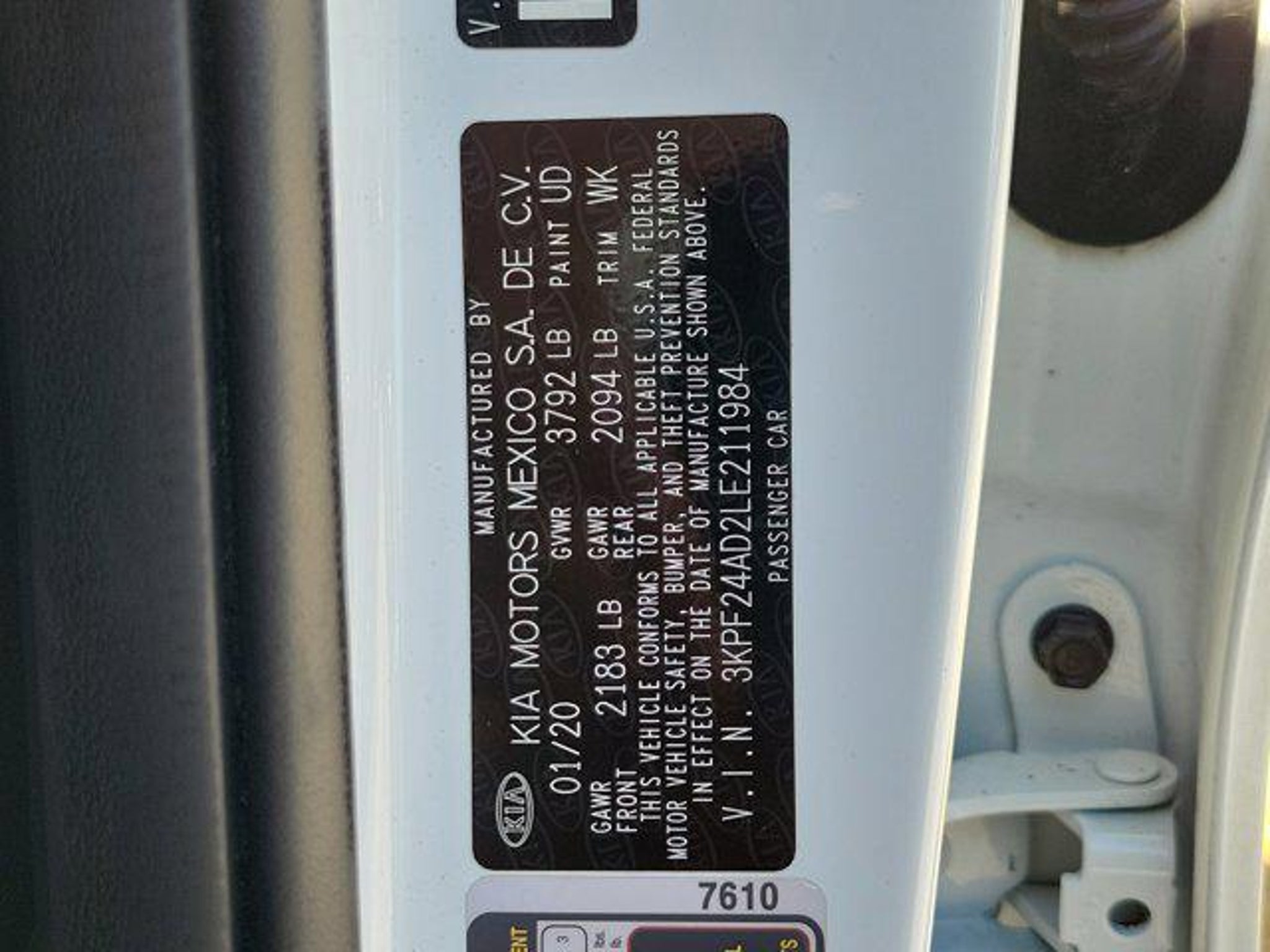 VIN 3KPF24AD2LE211984