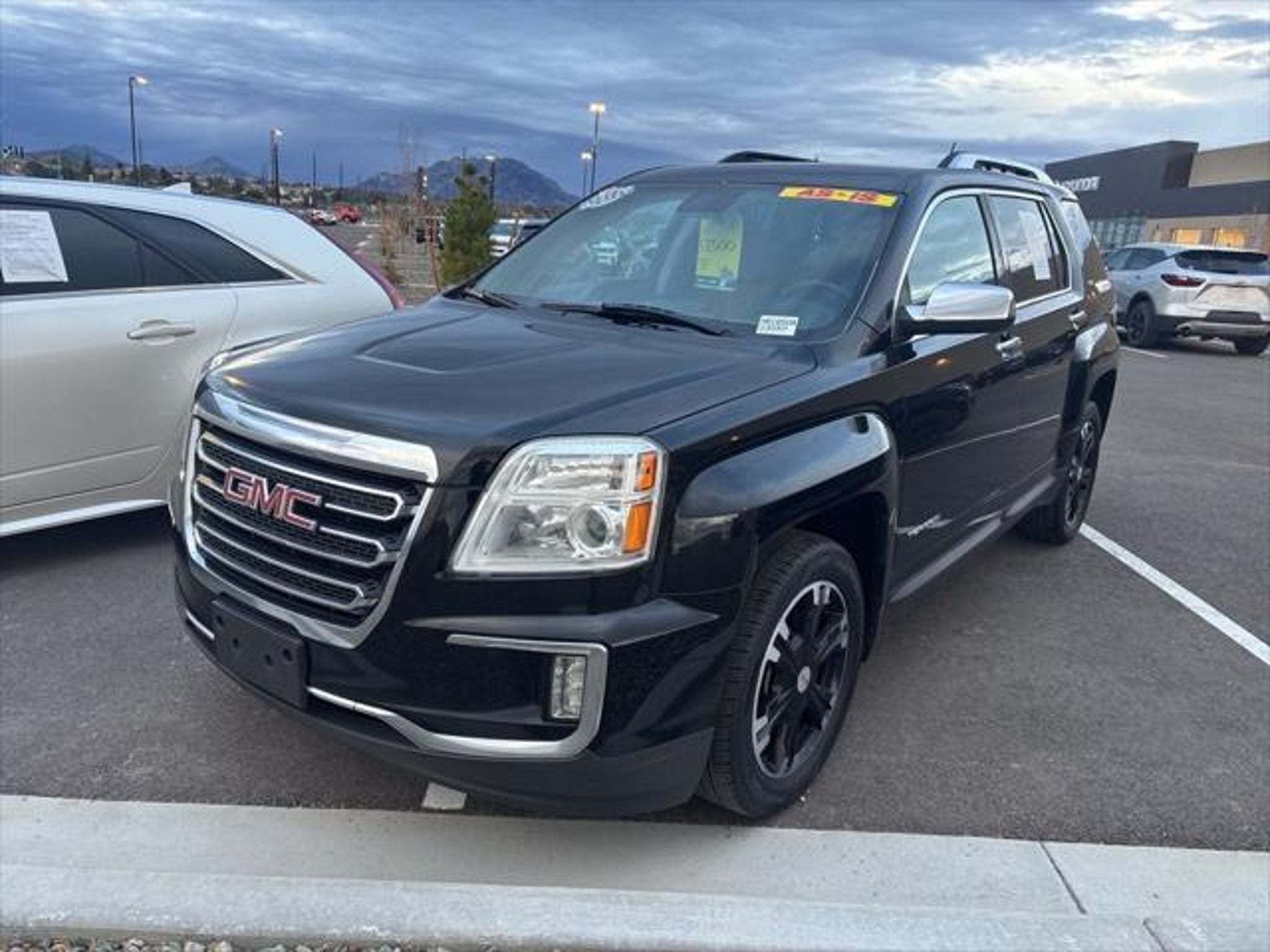 Discover the perfect blend of style, power, and versatility in this stunning 2017 GMC Terrain SLT. This exceptional SUV is equipped with a robust 3.6L V6 DGI DOHC VVT engine and a smooth-shifting 6-Speed Automatic transmission, delivering a commanding 301 horsepower and 272 lb-ft of torque. Dressed in a sleek Black exterior, this Terrain SLT exudes an elegant and sophisticated presence. "¢ 3.6L V6 Engine "¢ Driver Alert Package I (Side Blind Zone Alert, Rear Cross Traffic Alert, Rear Park Assist) "¢ 18 Aluminum Wheels with Black Gloss Accents "¢ Color Touch Navigation with IntelliLink "¢ Universal Home Remote "¢ Power Programmable Rear Liftgate "¢ Rear Camera "¢ Rear Park Assist "¢ Rear Cross-Traffic Alert "¢ Side Blind Zone Alert The interior of this Terrain SLT is equally impressive, with premium Perforated Leather-Appointed Seat Trim and heated front seats providing exceptional comfort. The advanced technology features, including the Color Touch Navigation system with IntelliLink, keep you connected and entertained on every journey. The Trailering Equipment Package, complete with a Class II 1-1/4 receiver hitch, ensures you can tow your gear with confidence. Whether you're commuting, running errands, or embarking on a weekend adventure, this 2017 GMC Terrain SLT is the perfect companion. With its impressive fuel efficiency, delivering 17 city and 24 highway MPG, and a wealth of advanced safety and convenience features, this SUV is a true standout in its class. We invite you to experience the exceptional quality and capability of this 2017 GMC Terrain SLT for yourself. Schedule a test drive today and discover the perfect balance of style, performance, and versatility that this SUV has to offer. We're confident you'll be impressed by its exceptional value and the seamless ownership experience it provides. *** VEHICLE SOLD AS IS. VEHICLE HAS PASSED SAFETY INSPECTION. ***