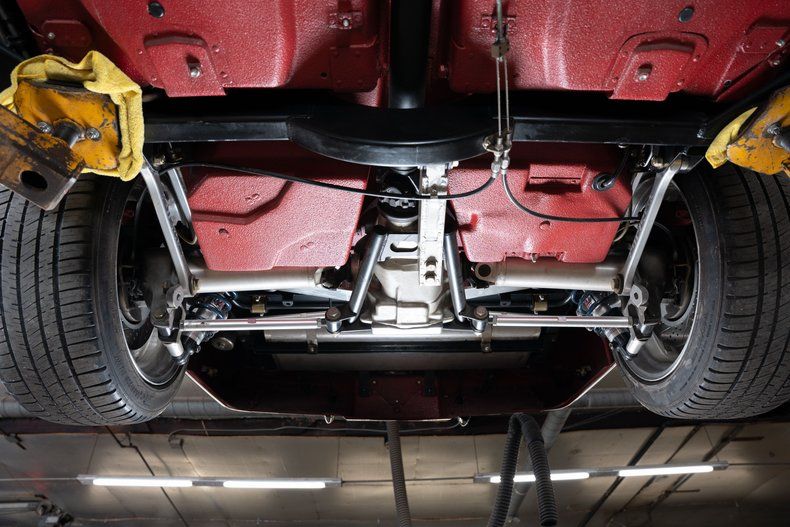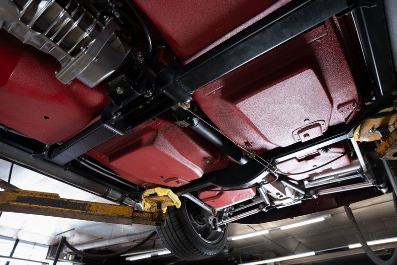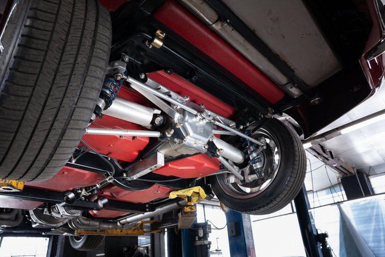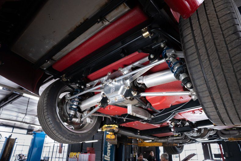 Beneath the body lies a Full Street Worxs chassis by Art Morrison, featuring independent front and rear suspension with adjustable coilovers at all four corners, dramatically improving handling, ride quality, and overall performance compared to the factory setup.