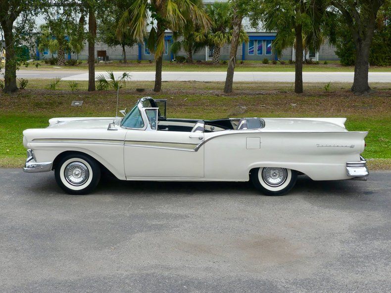 Please visit www.Survivor-Cars.com for additional photos, information, and a video. This vehicle is available for viewing in our Tampa Showroom by appointment only. Please call us to schedule an appointment. It doesn't get much better than a power retractable hardtop 1957 Ford! These are just cool and classy, and this one is priced to move! This 1957 Ford Fairlane Skyliner was way ahead of its time with a fully retractable hardtop that is a thrill to watch operate. The exterior of this example is in the correct E-code Colonial White, with the gold trim down the sides and fins these cars are known for. Coker Wide white wall tires look great on steel wheels with the correct hub caps. Fender mounted dual rear side mirrors, a hood ornament, and Fairlane 500 script help give this old Ford plenty of character and a new, exciting view from every angle. Open the door to reveal an interior that is comfortable and classy, and seats up to 6 people! The Charcoal and white interior in cloth and vinyl looks great and should hold up very well. Click on your seat belt and turn up the radio and you'll be whisked right back to 1957. Take your best girl to the diner or hit the local car show in style! With a 292 V8 under the hood paired with an automatic transmission, this car is an easy cruiser. Power steering makes it easy for anyone to handle as you cruise down the road in the lap of luxury. There were not a ton of these cars made and you surely don't see them very often now, 69 years later! Don't miss your chance to own a piece of automotive history in this 57 Fairlane 500 Skyliner at a fantastic price! This vehicle is available to view by appointment only. Please call the office to make an appointment. For additional information on this and our other classic and collectible cars for sale, please visit www.Survivor-Cars.com. For assistance, please call or text the office at 941-845-4461, or email us at info@Survivor-Cars.com. If you are unable to come view the vehicle for yourself, we highly recommend you send in a third-party inspector on your behalf. We are located between Tampa and Sarasota. We are 90 minutes from Orlando and Fort Myers. *Potential purchaser understands it is their responsibility to verify condition and accuracy of information when purchasing from Survivor Classic Cars. It is the sole responsibility of the potential purchaser to inspect the vehicle, or have a third-party inspection performed on the vehicle before purchasing. The potential purchaser is relying solely on their own knowledge and judgement about any vehicle purchased.
